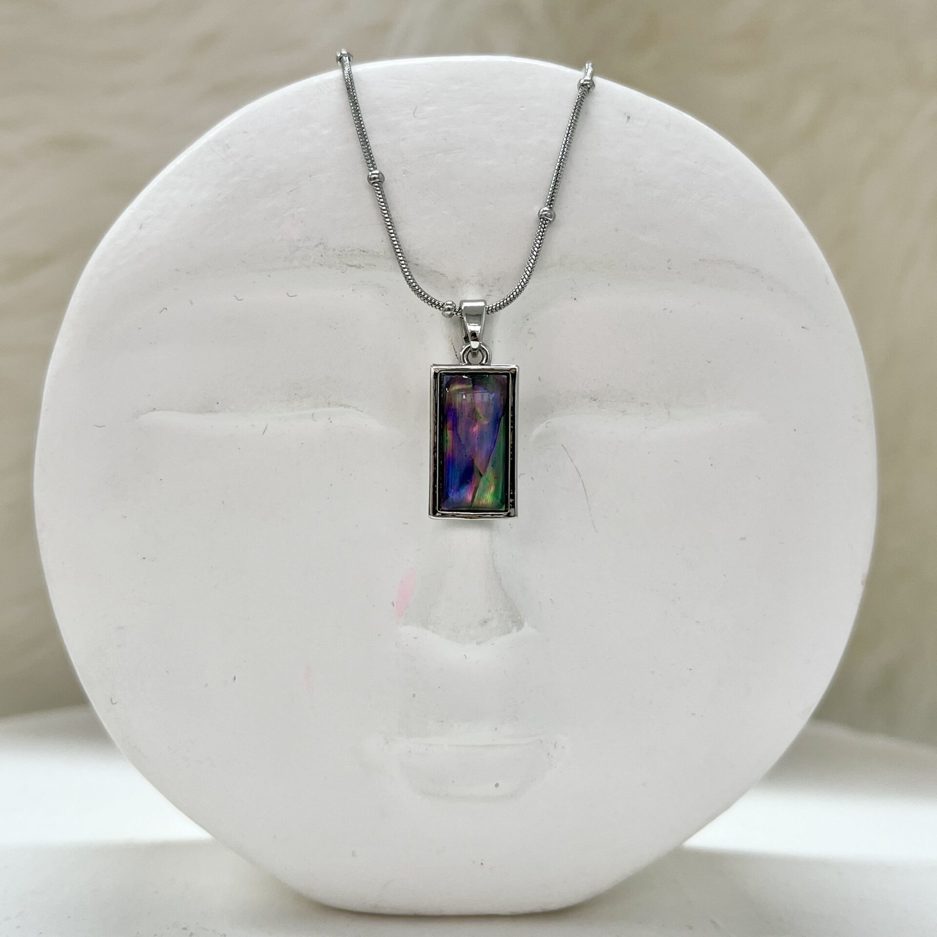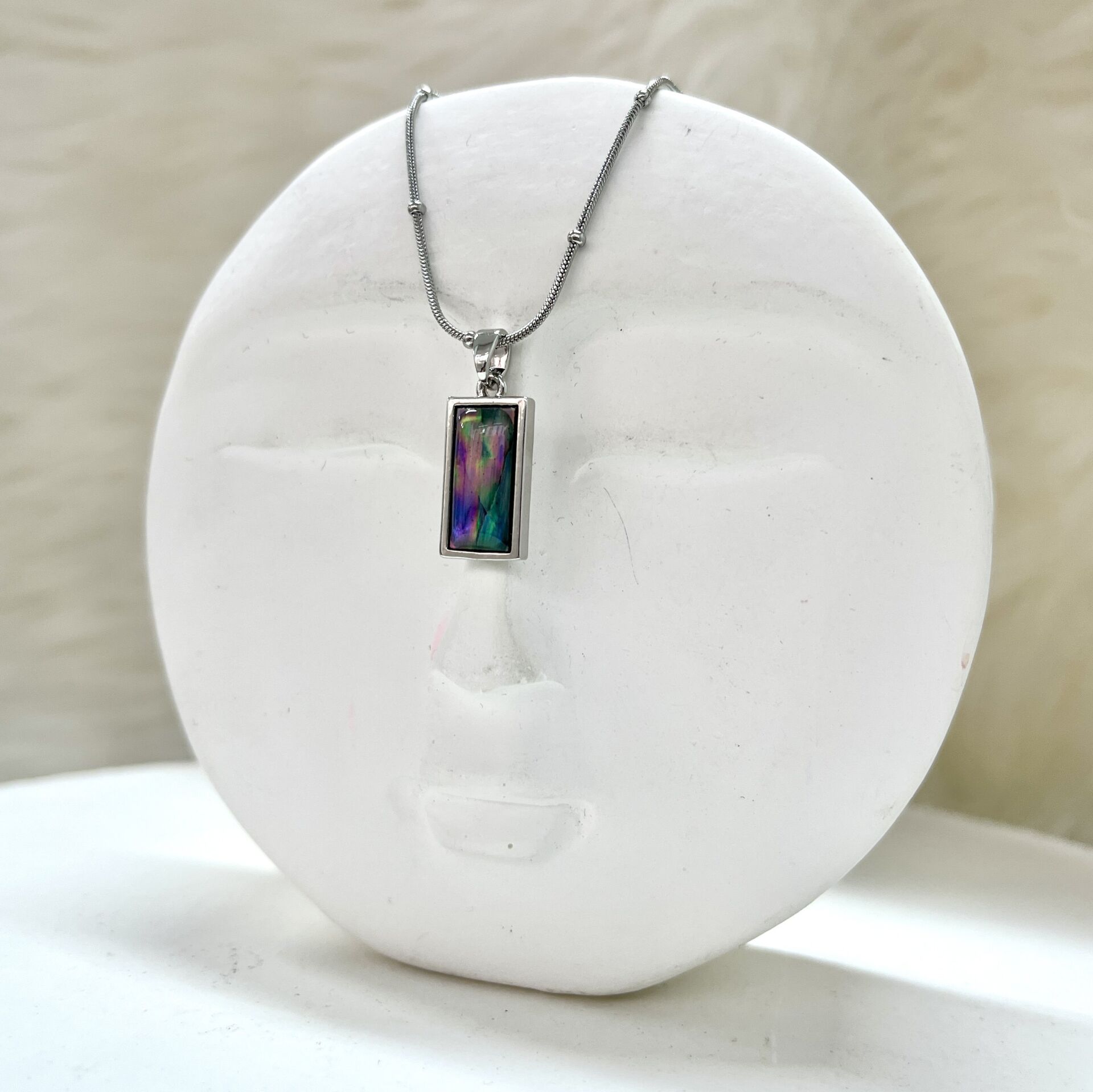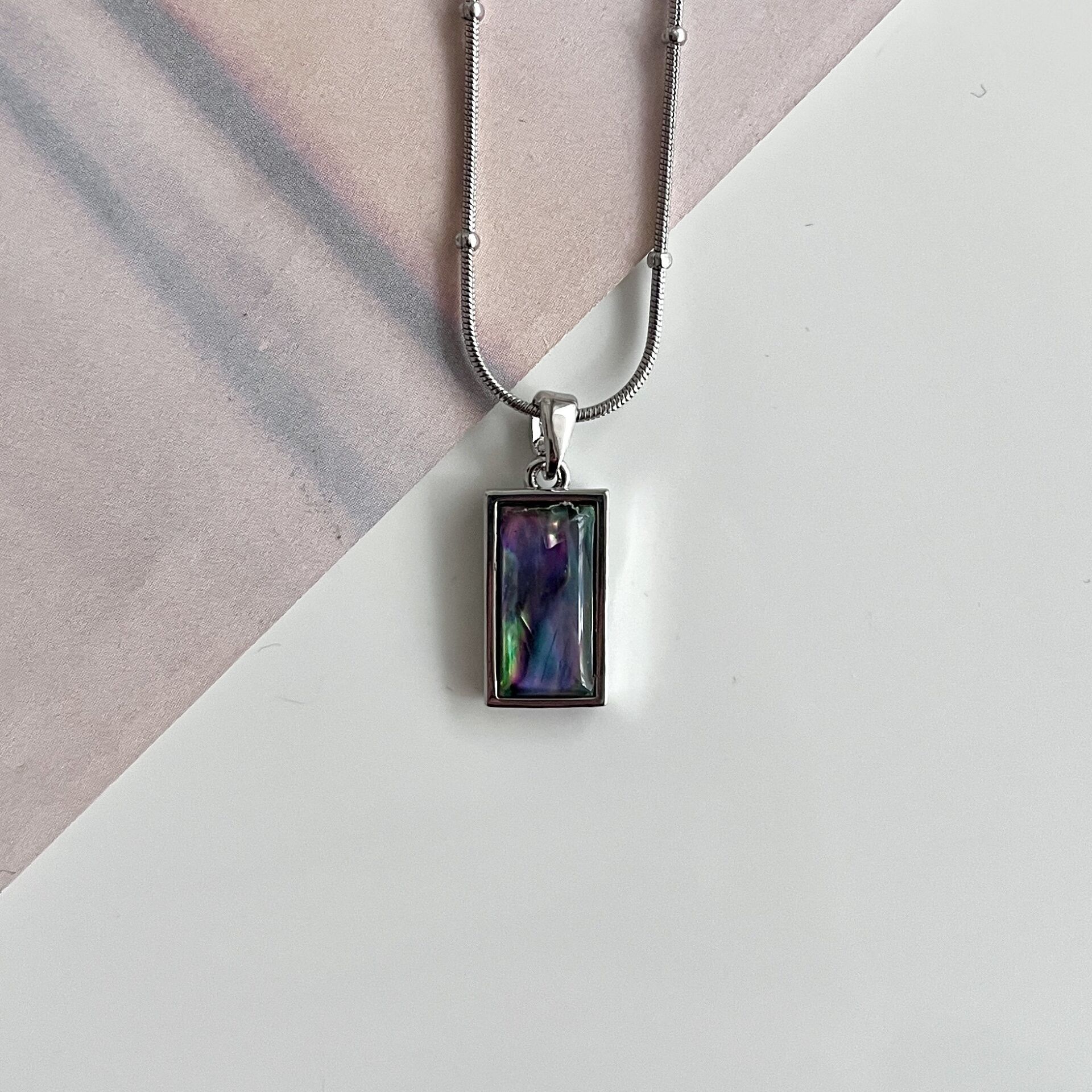 Çelik Abalone Kabuk Dikdörtgen Kolye