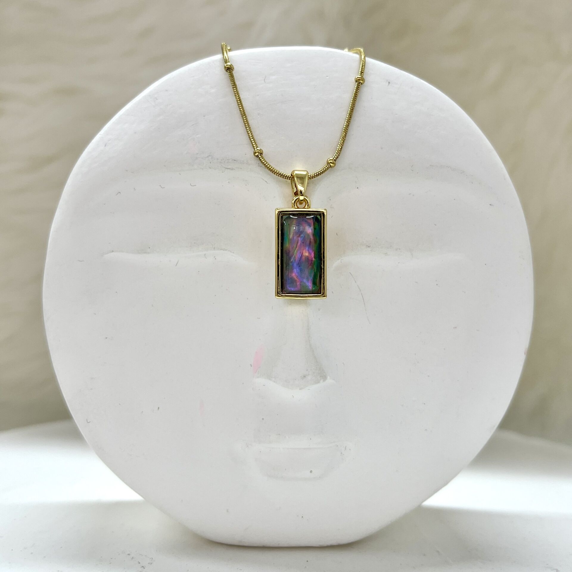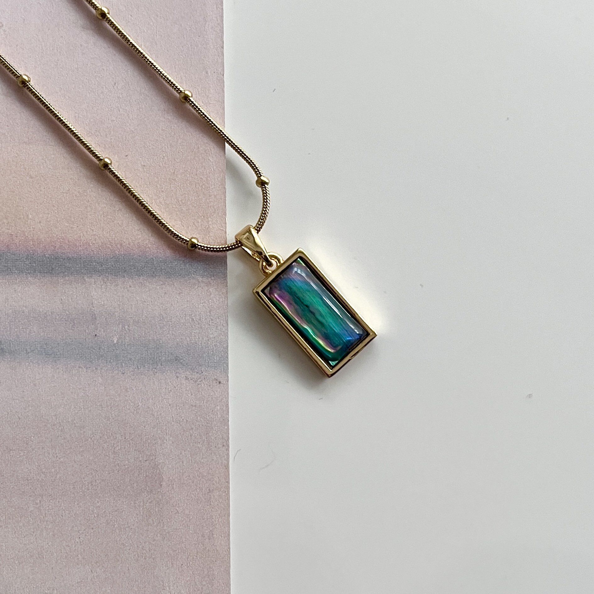 Çelik Abalone Kabuk Dikdörtgen Kolye