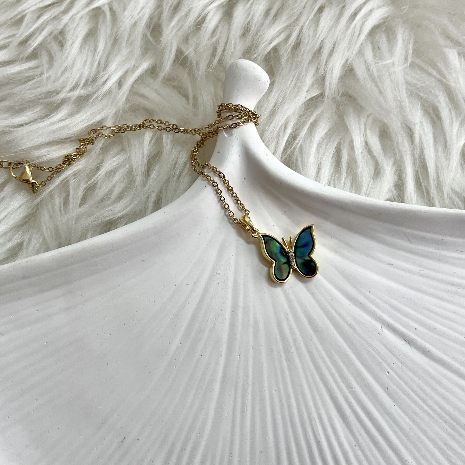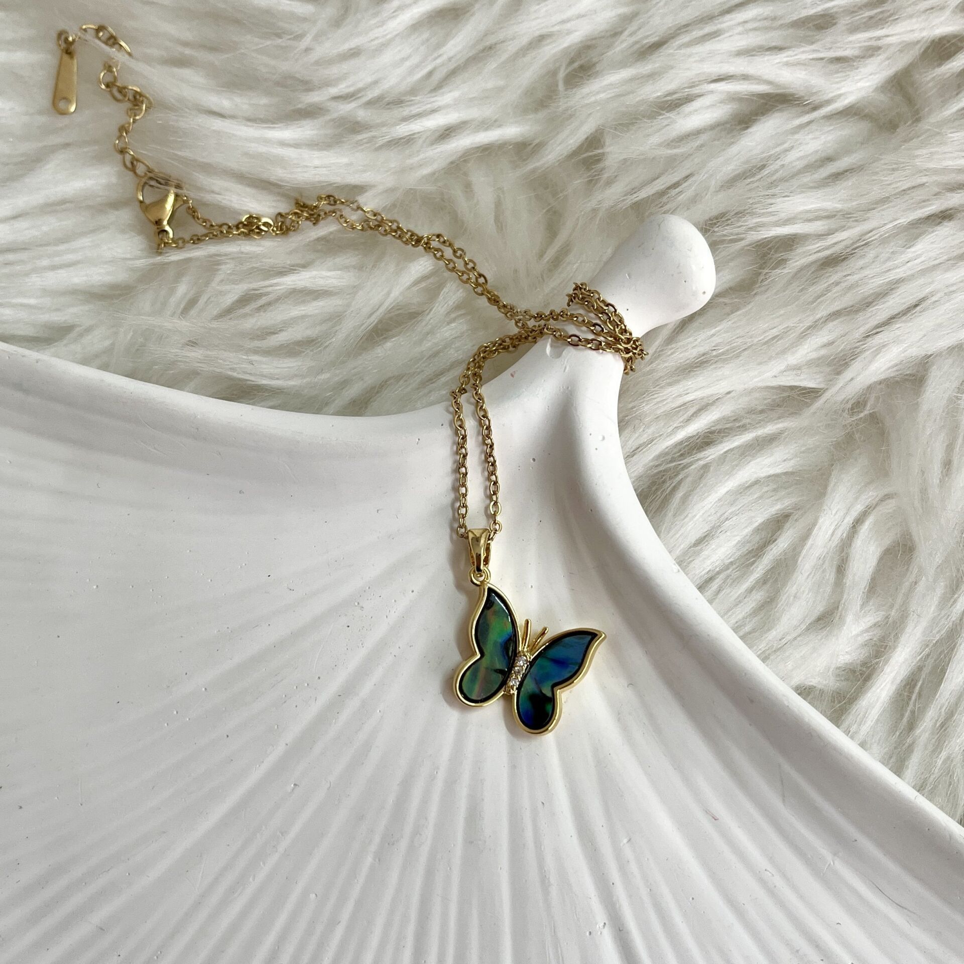 Çelik Abalone Kabuk Kelebek Kolye