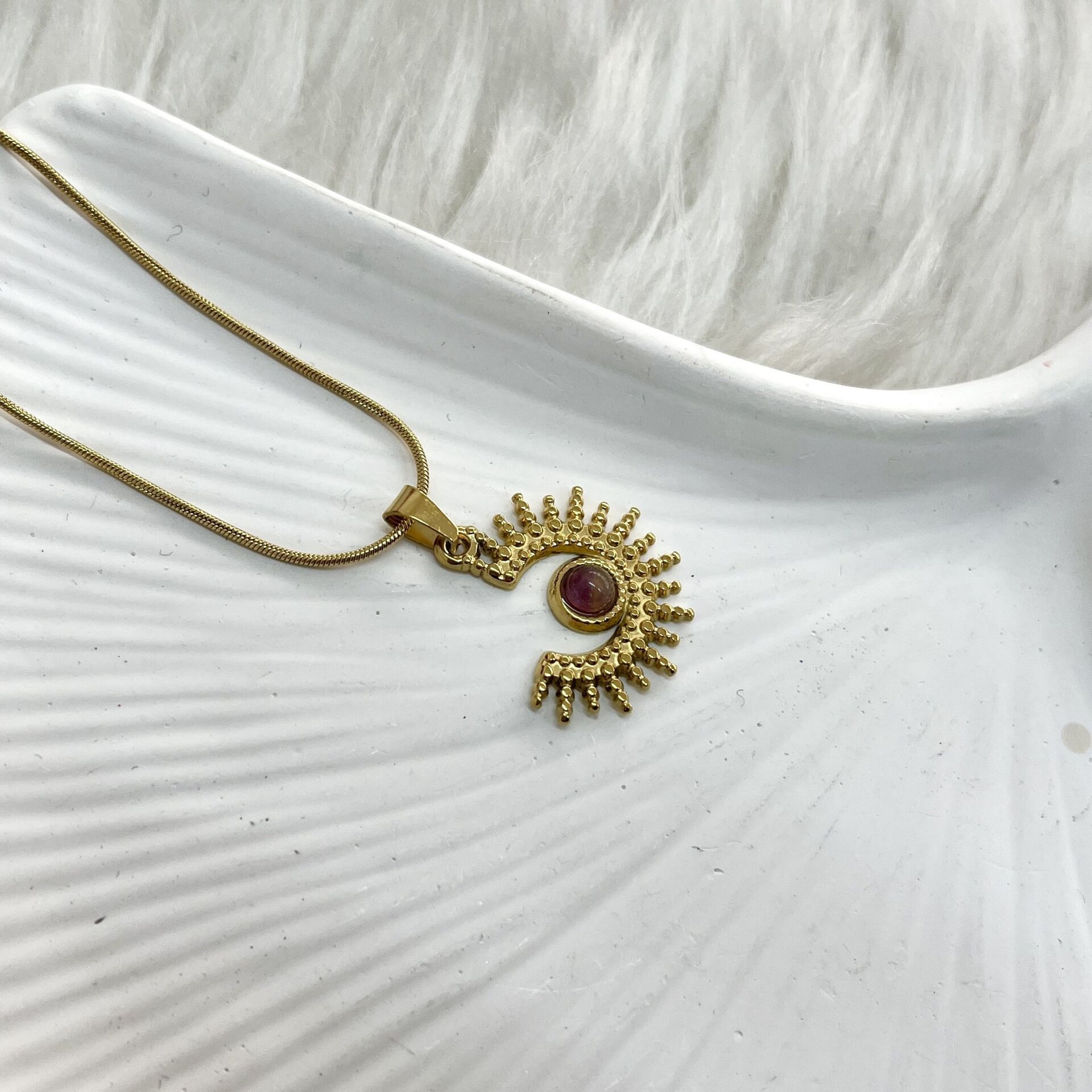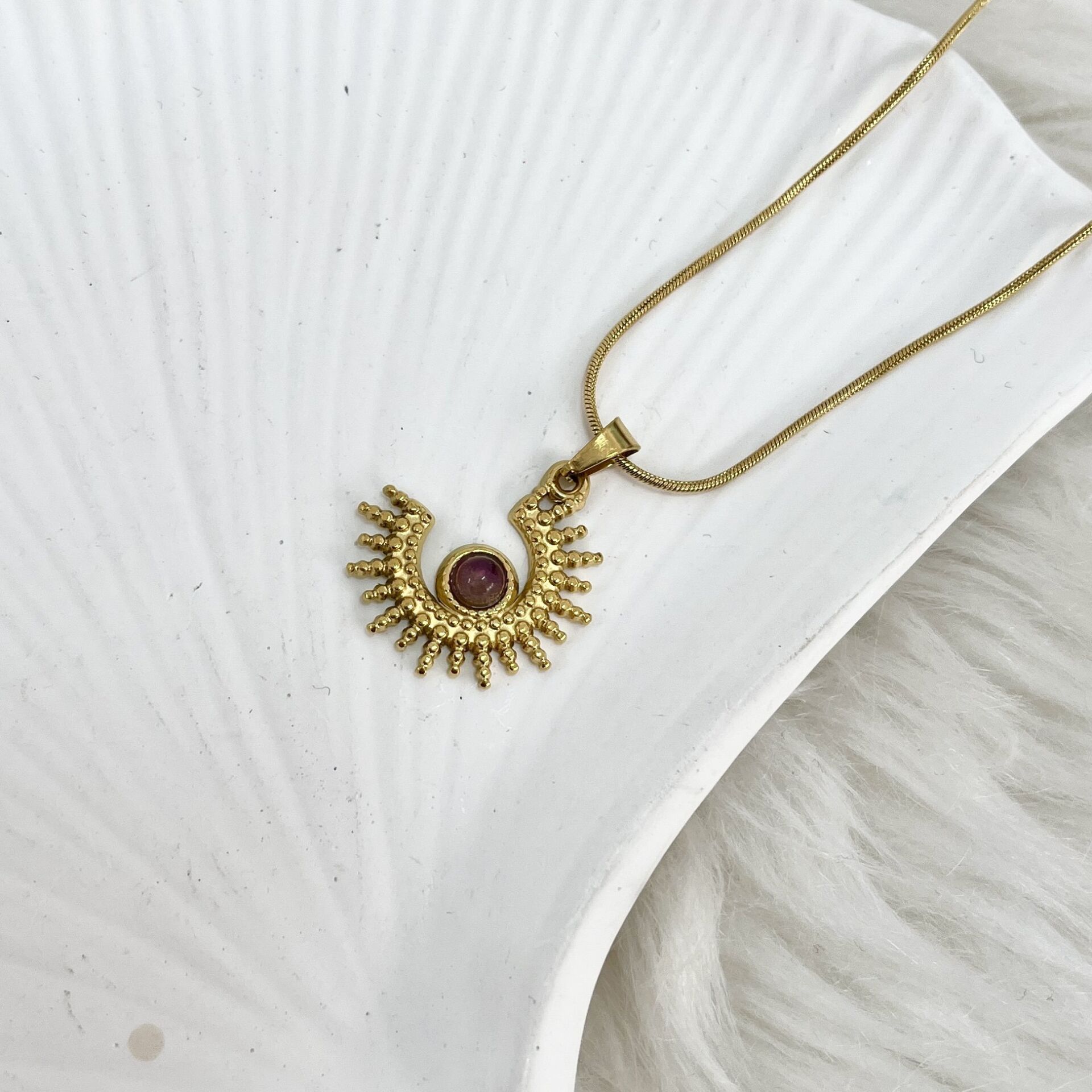 Çelik Ametist Taşı Kolye