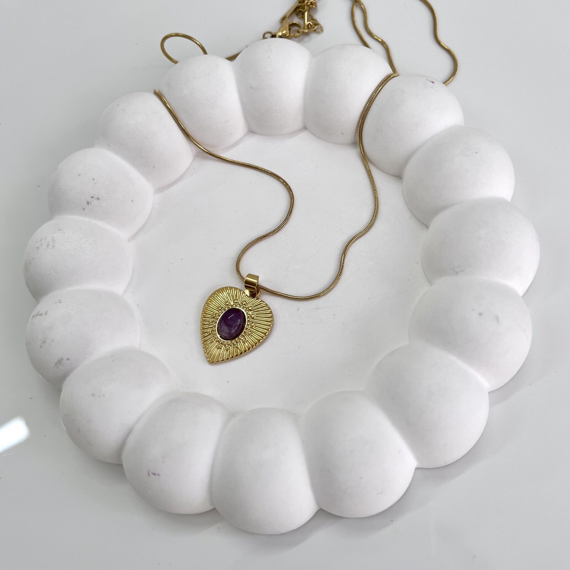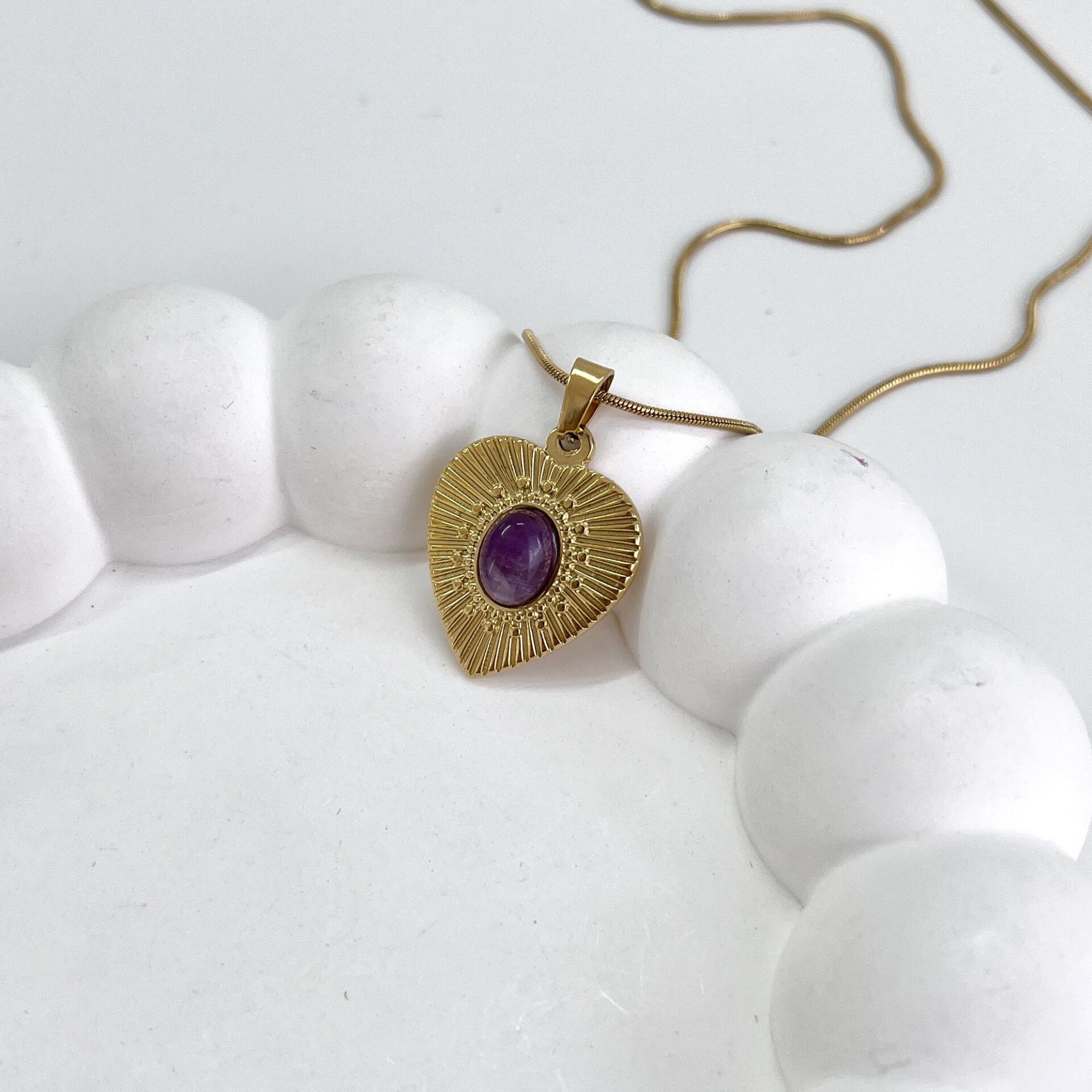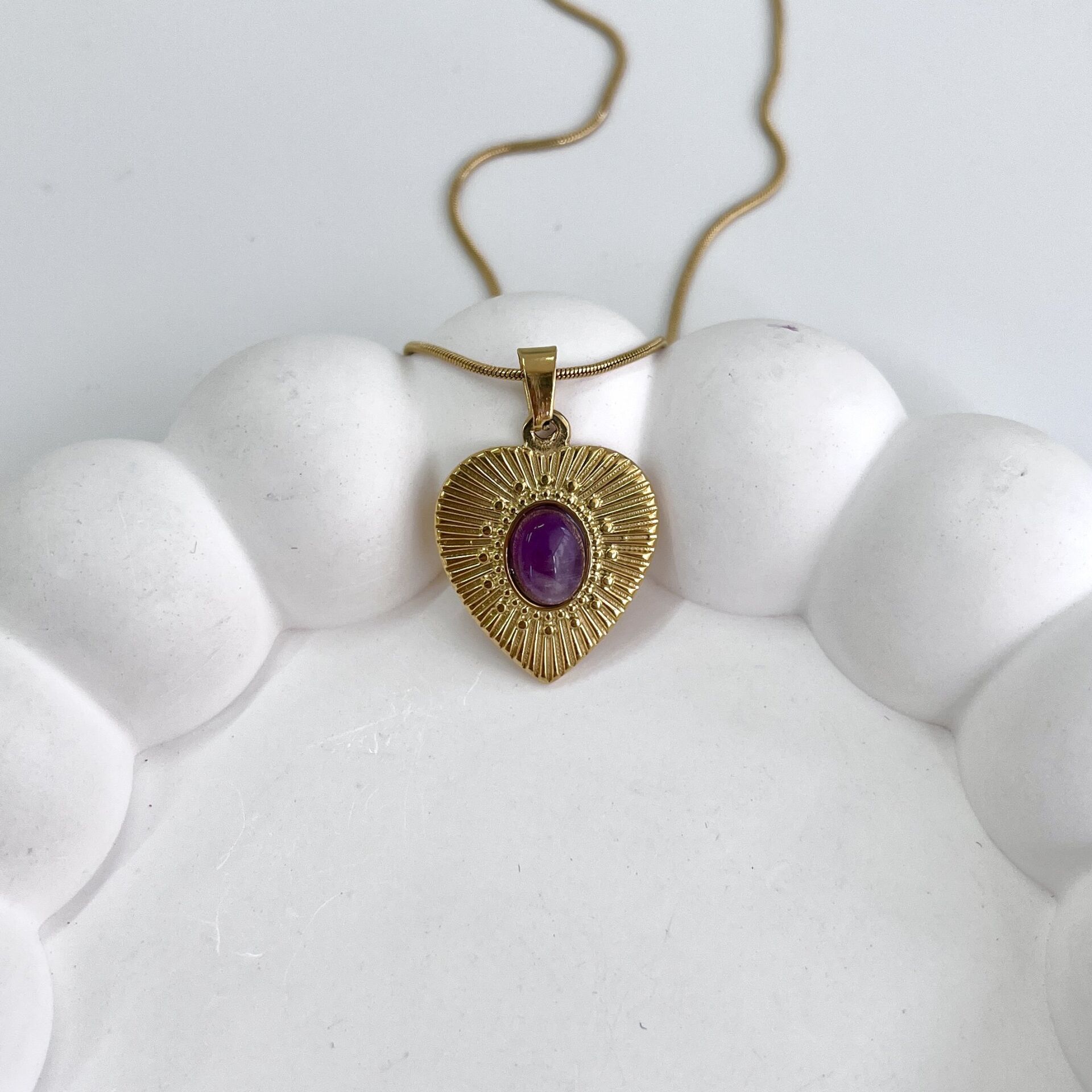 Çelik Ametist Taşı Kolye HBVFGGXV6Z Çelik Ametist Taşı Kolye