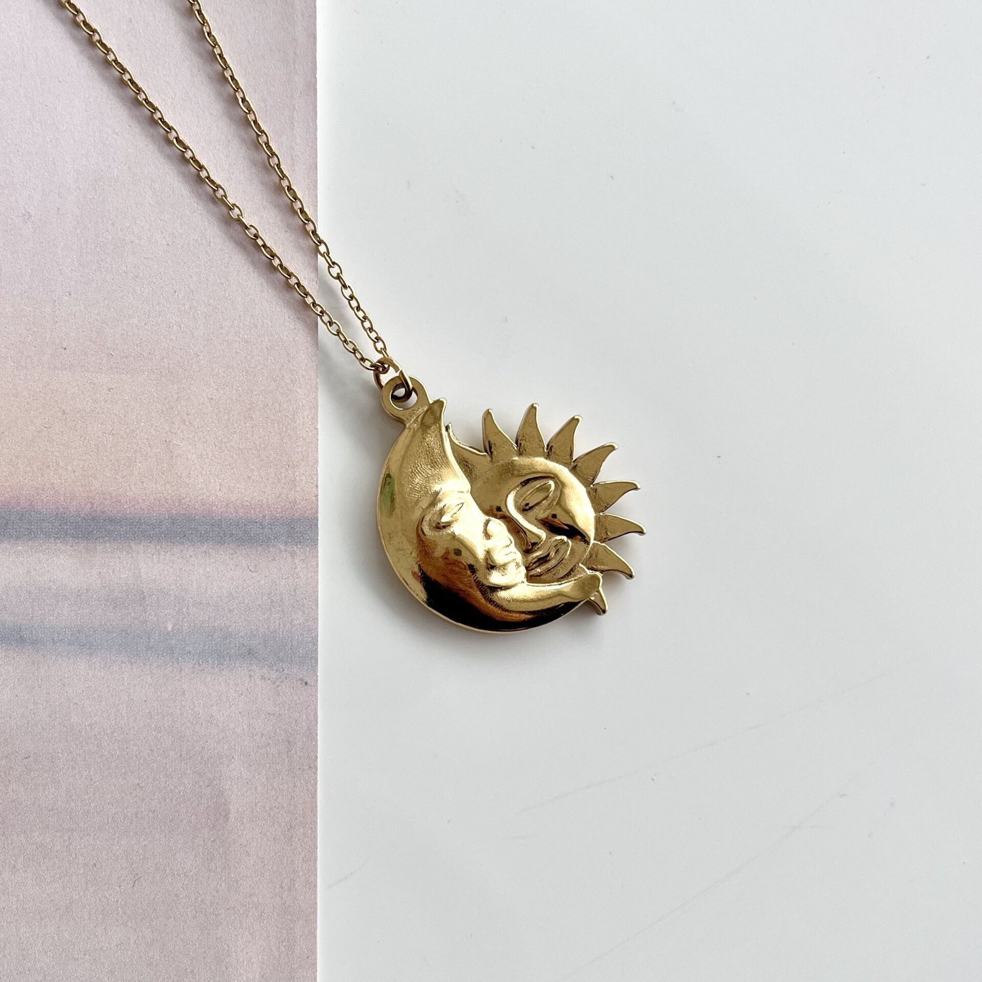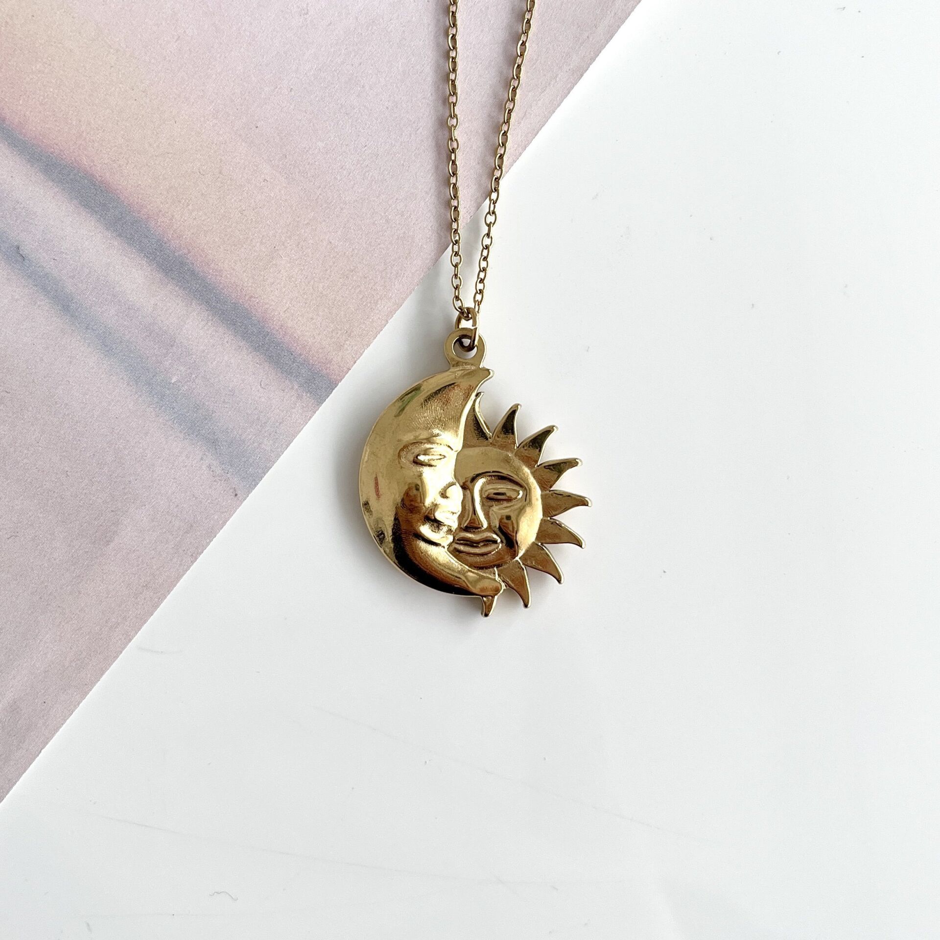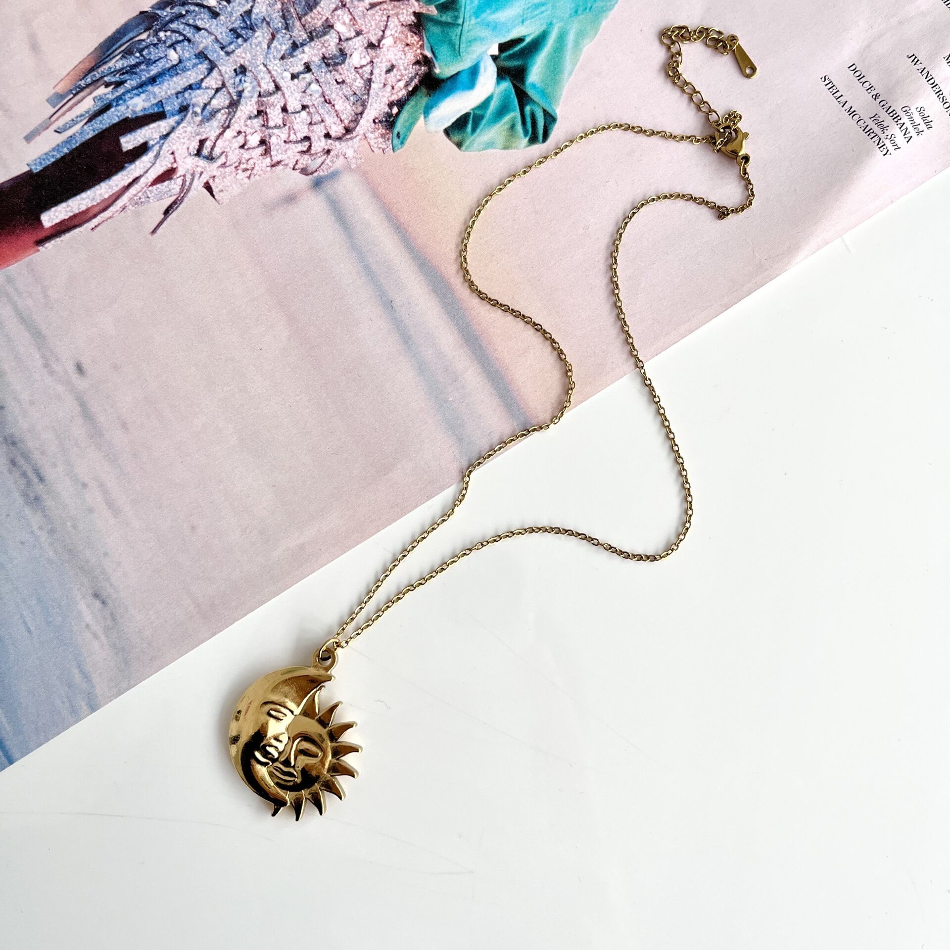 Çelik Ay Güneş Kolye