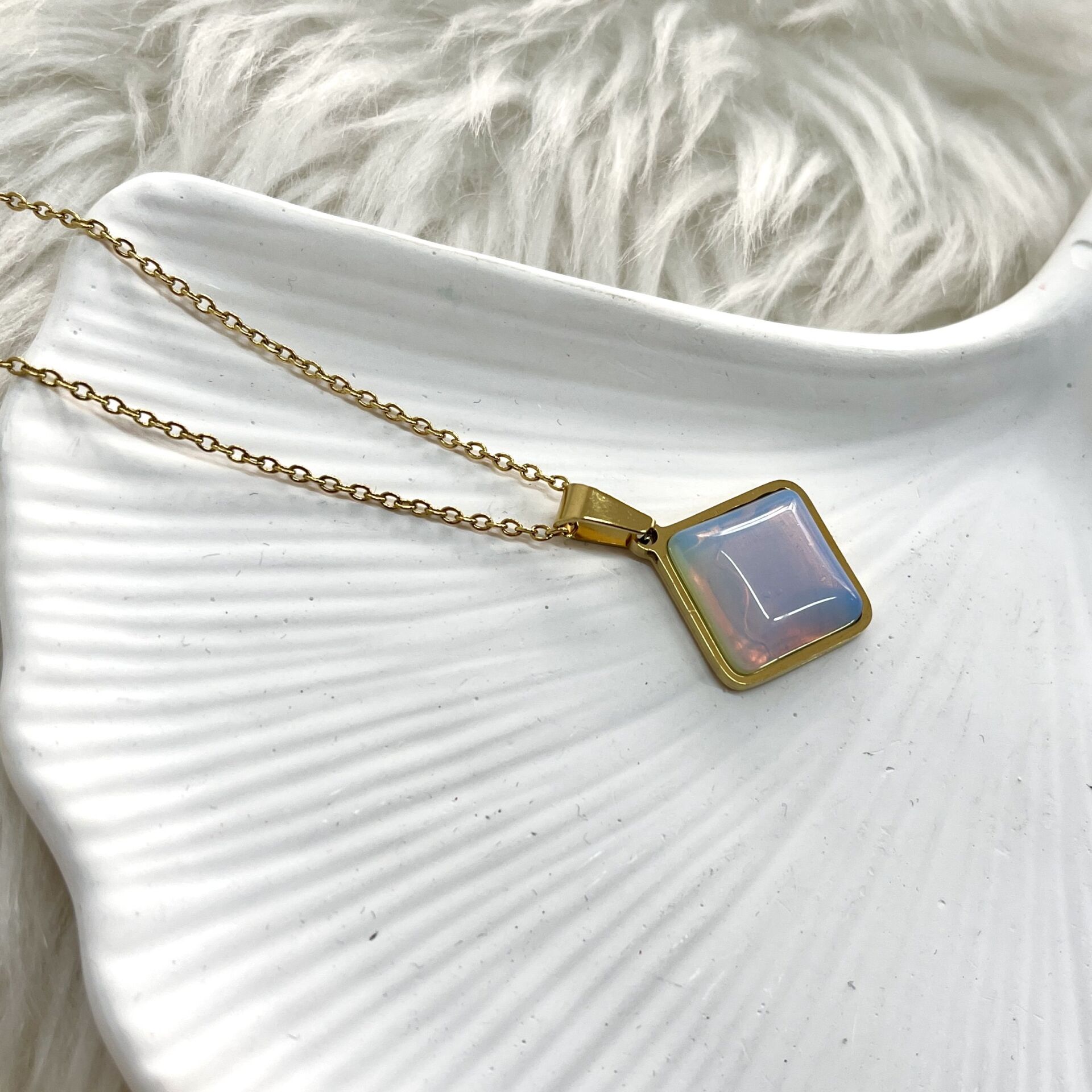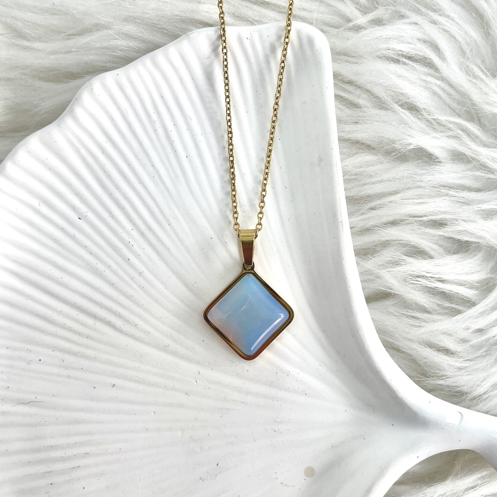 Çelik Ay Taşı Kolye