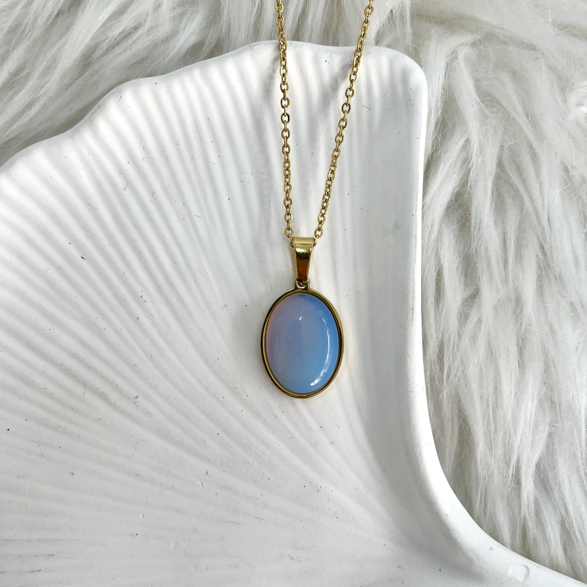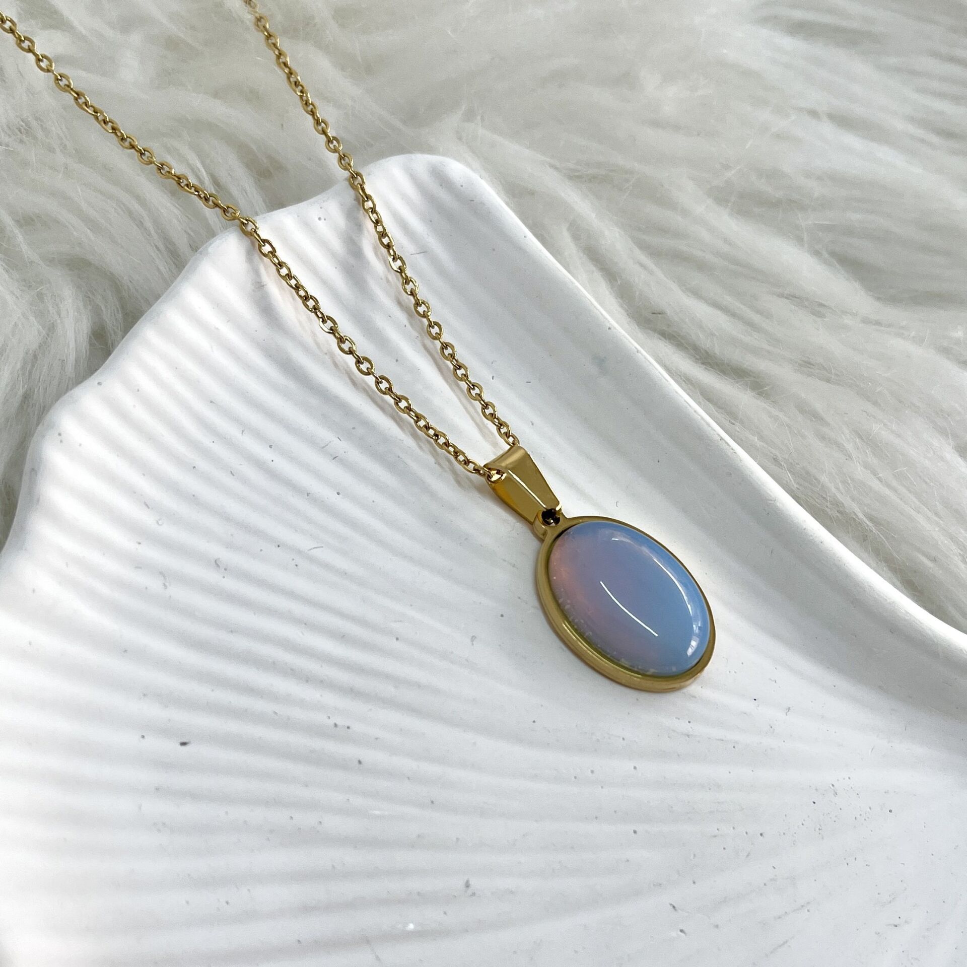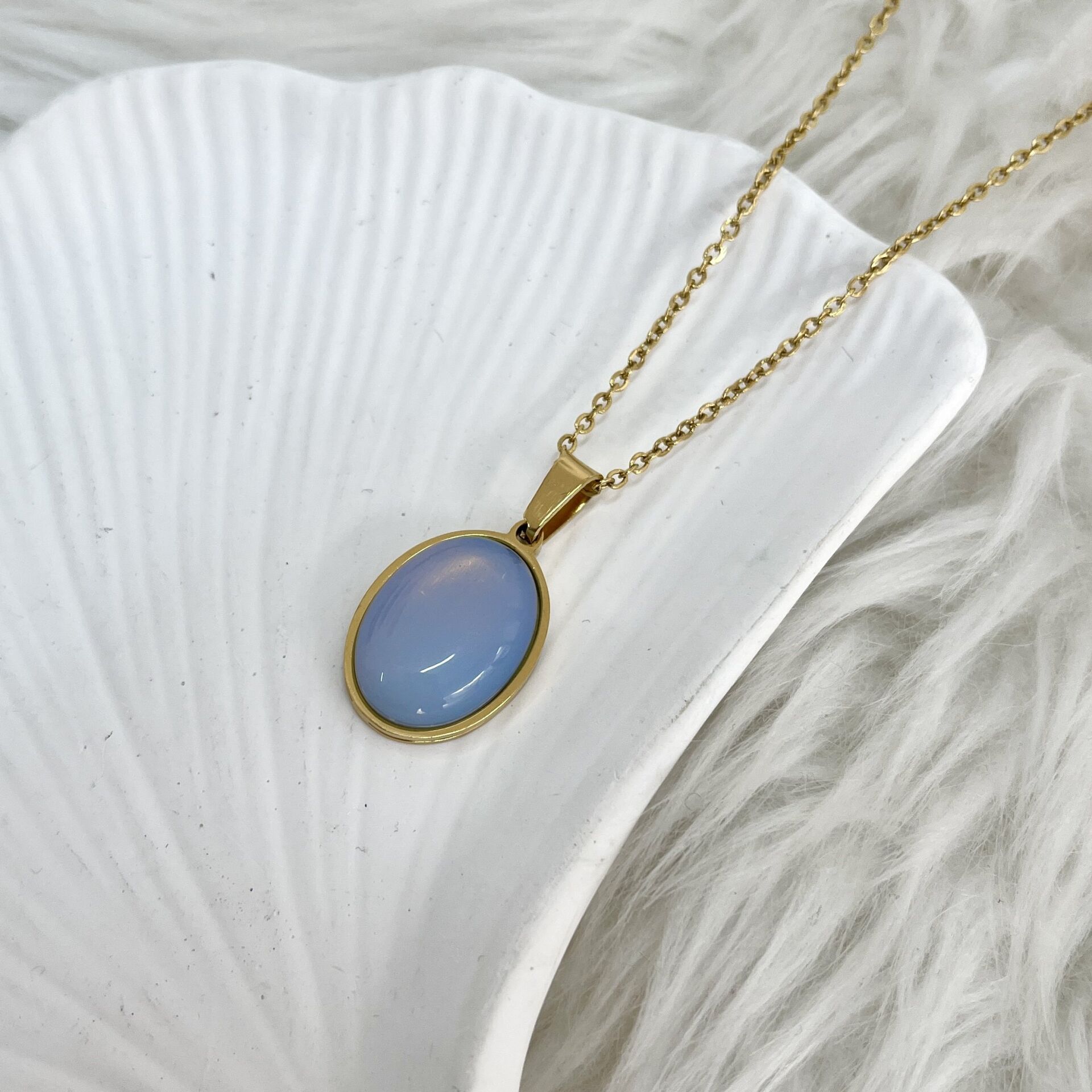 Çelik Ay Taşı Kolye