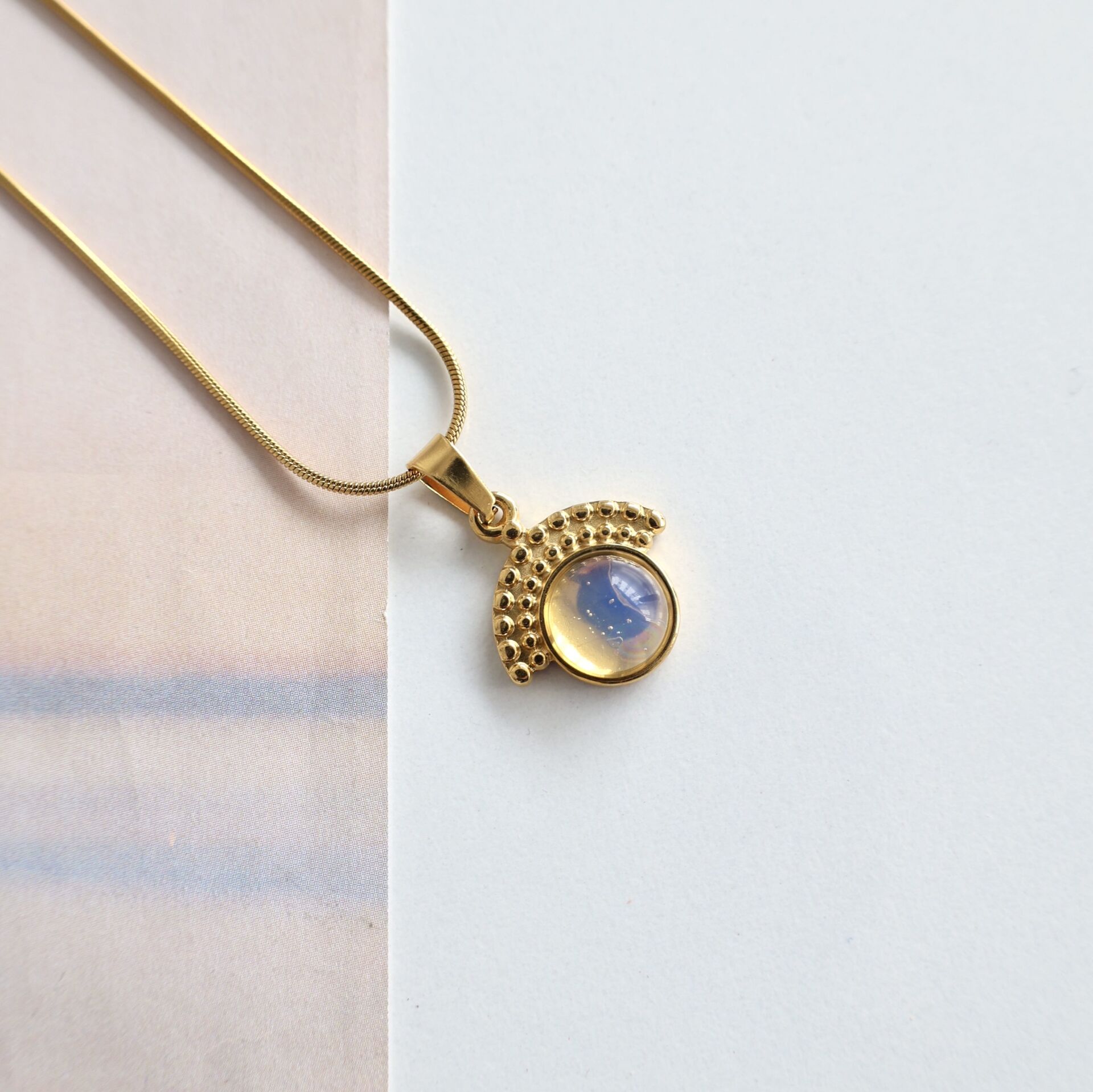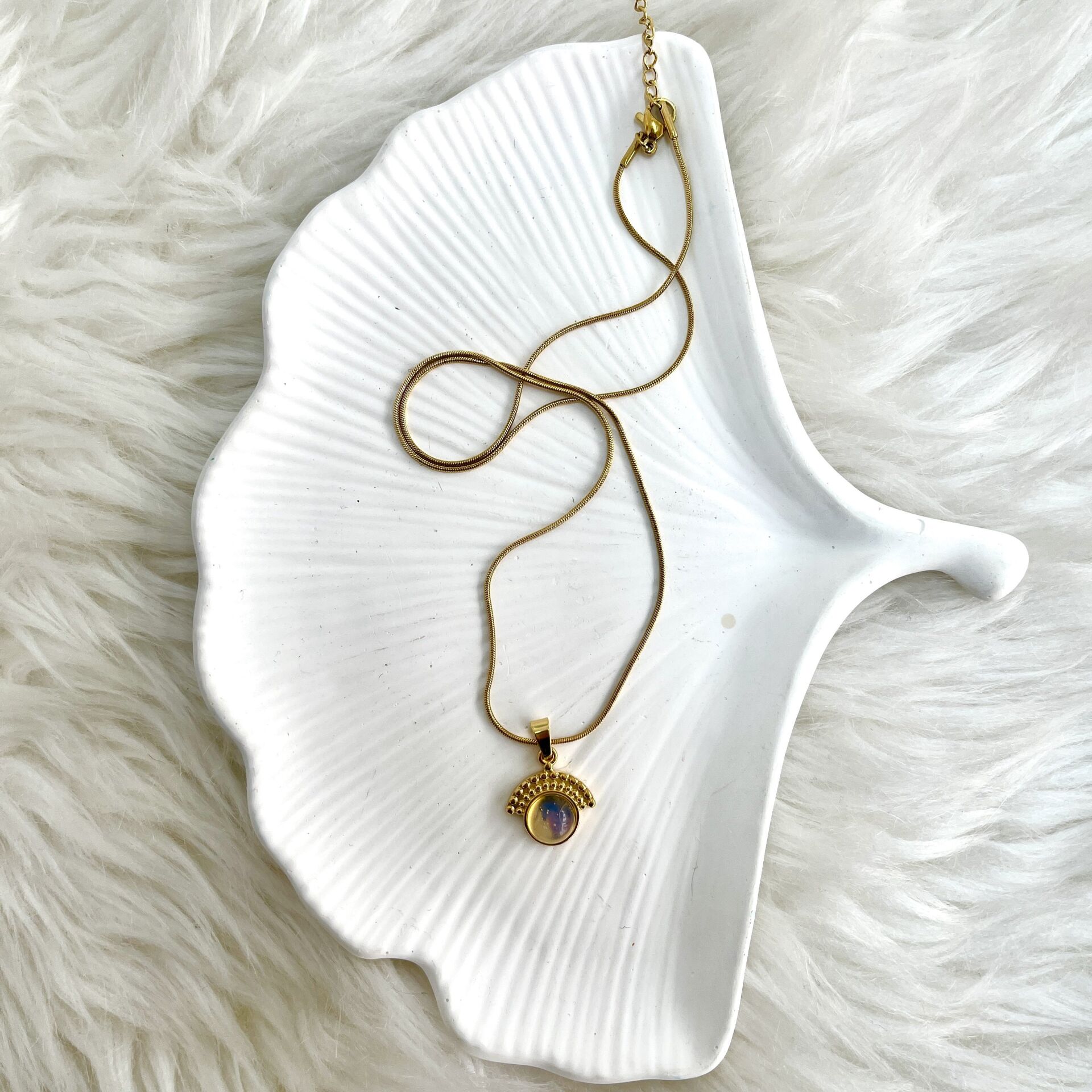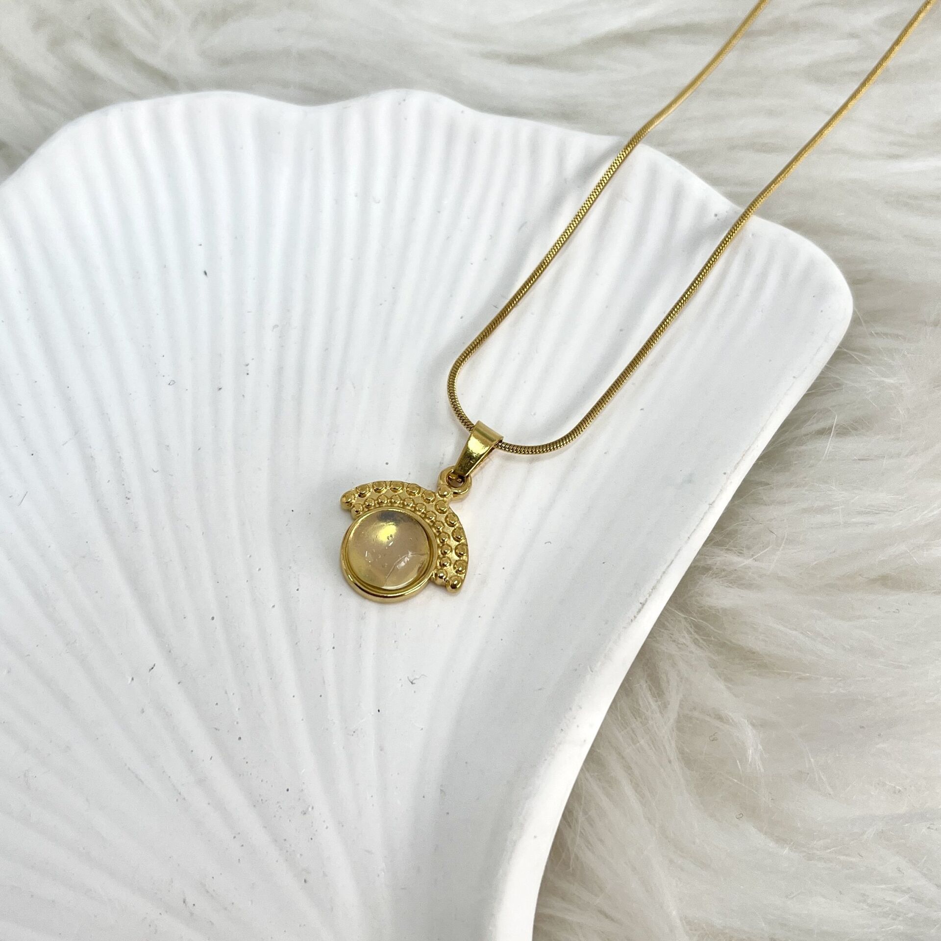 Çelik Ay Taşı Kolye