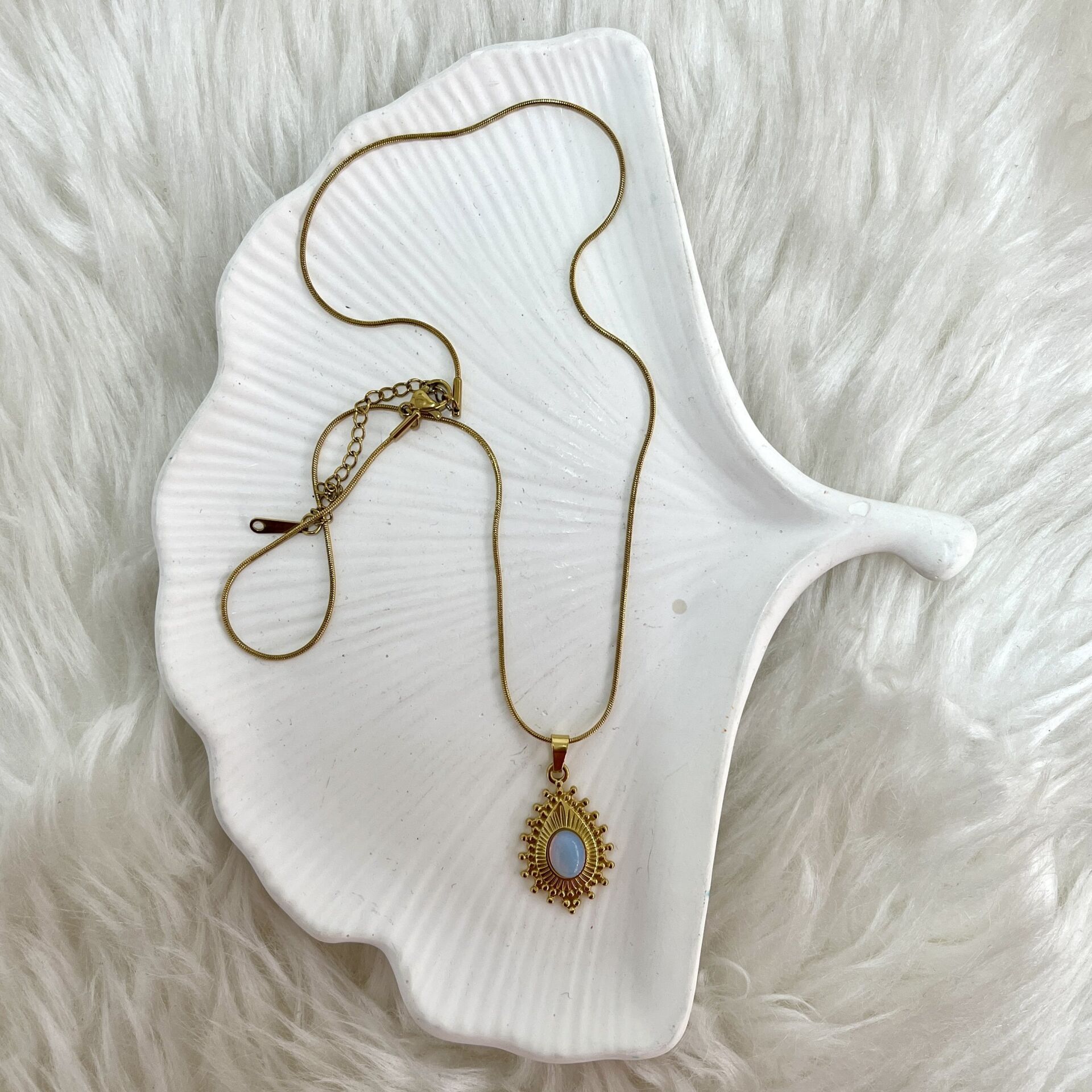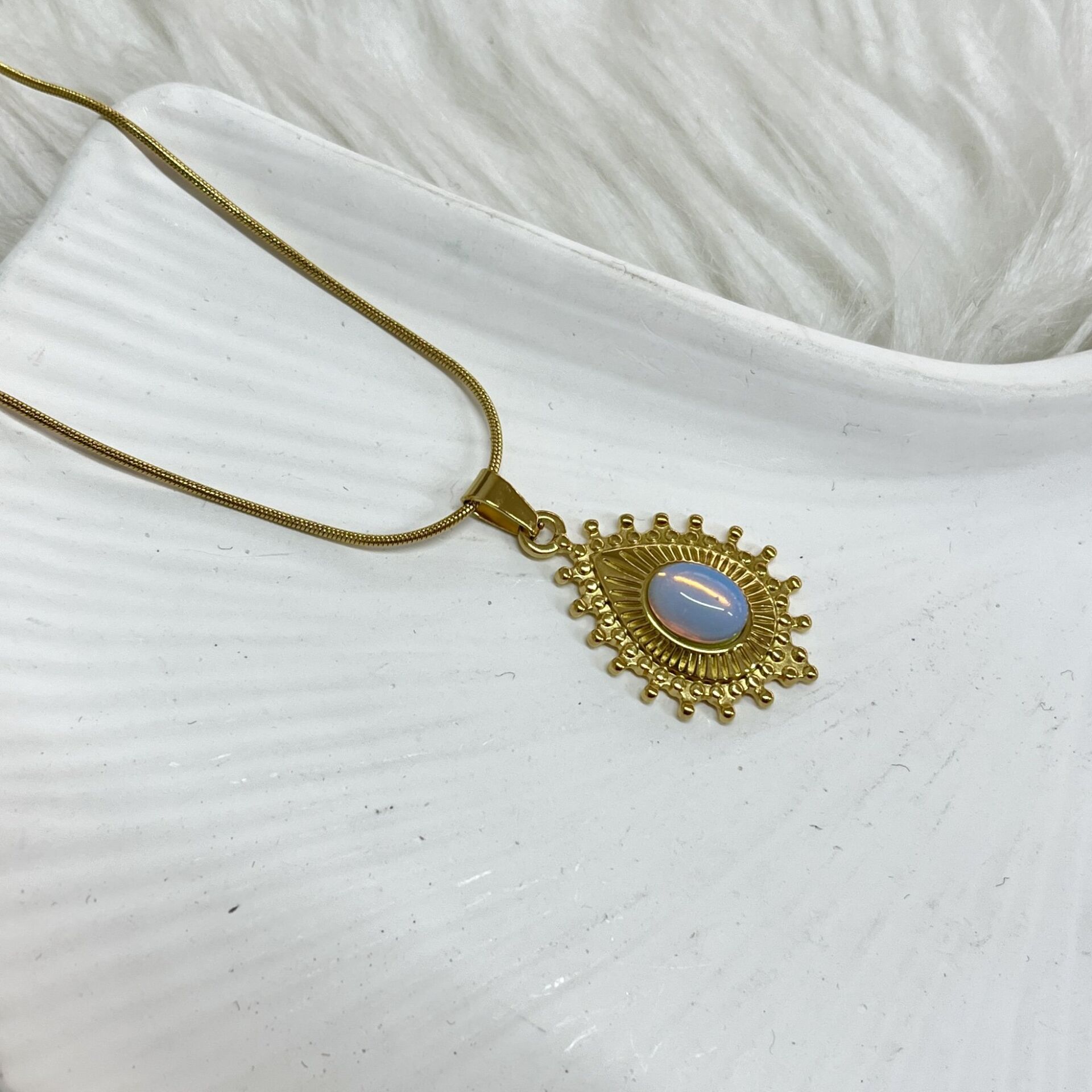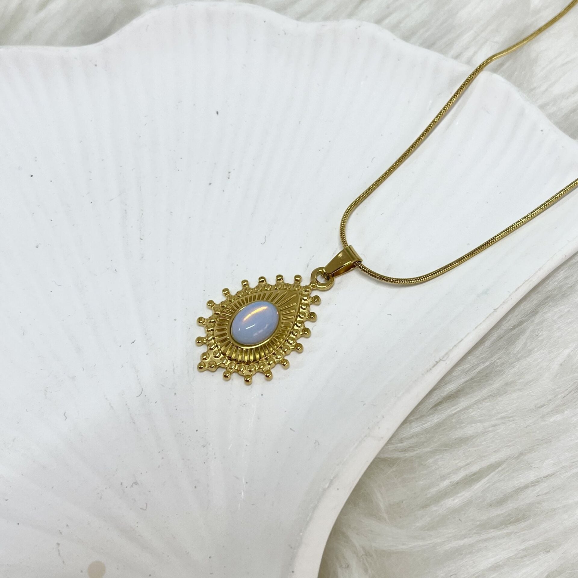 Çelik Ay Taşı Kolye