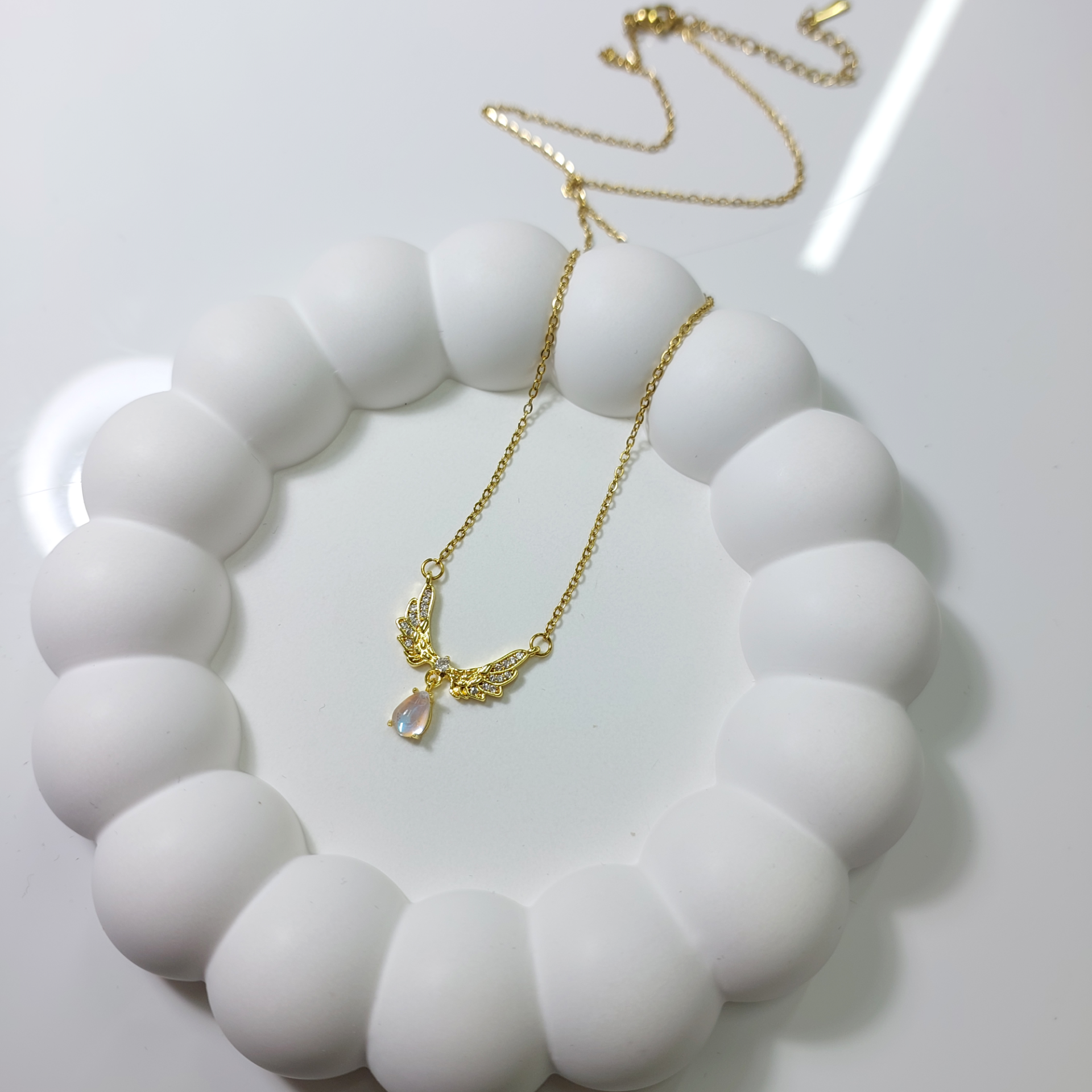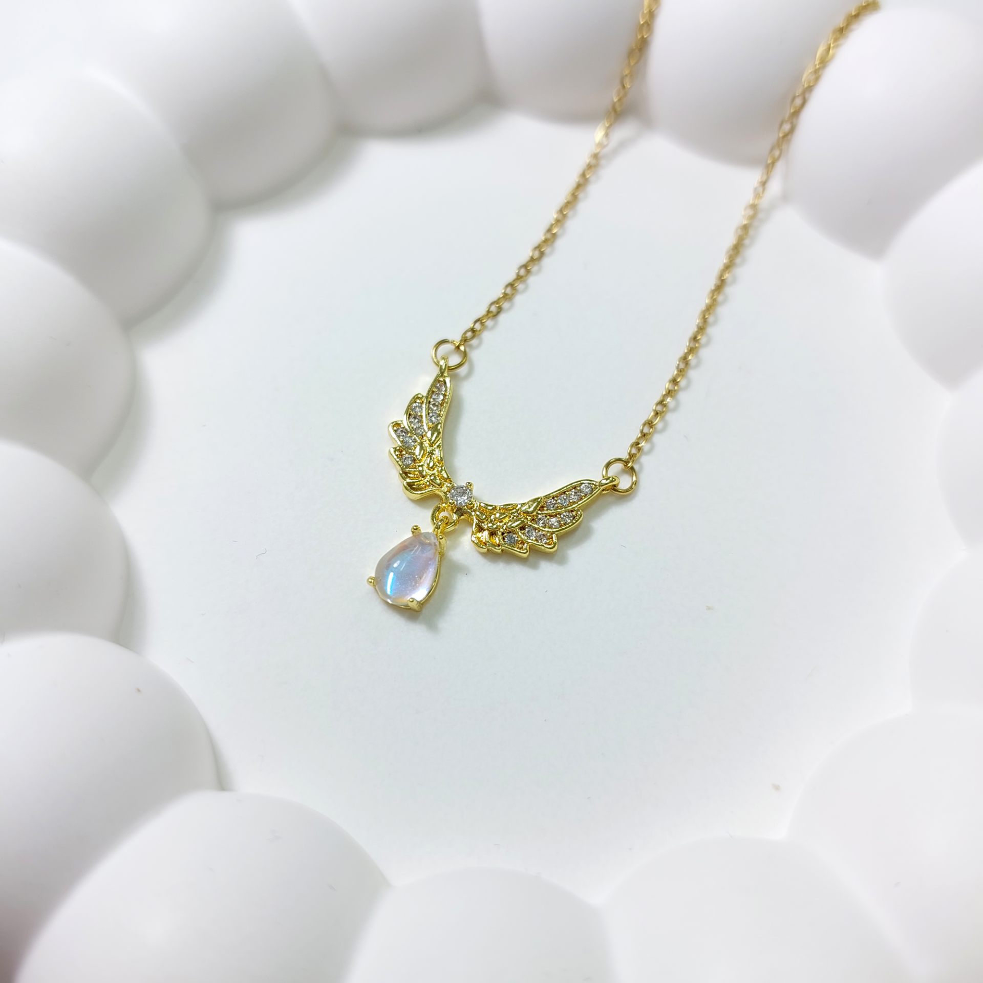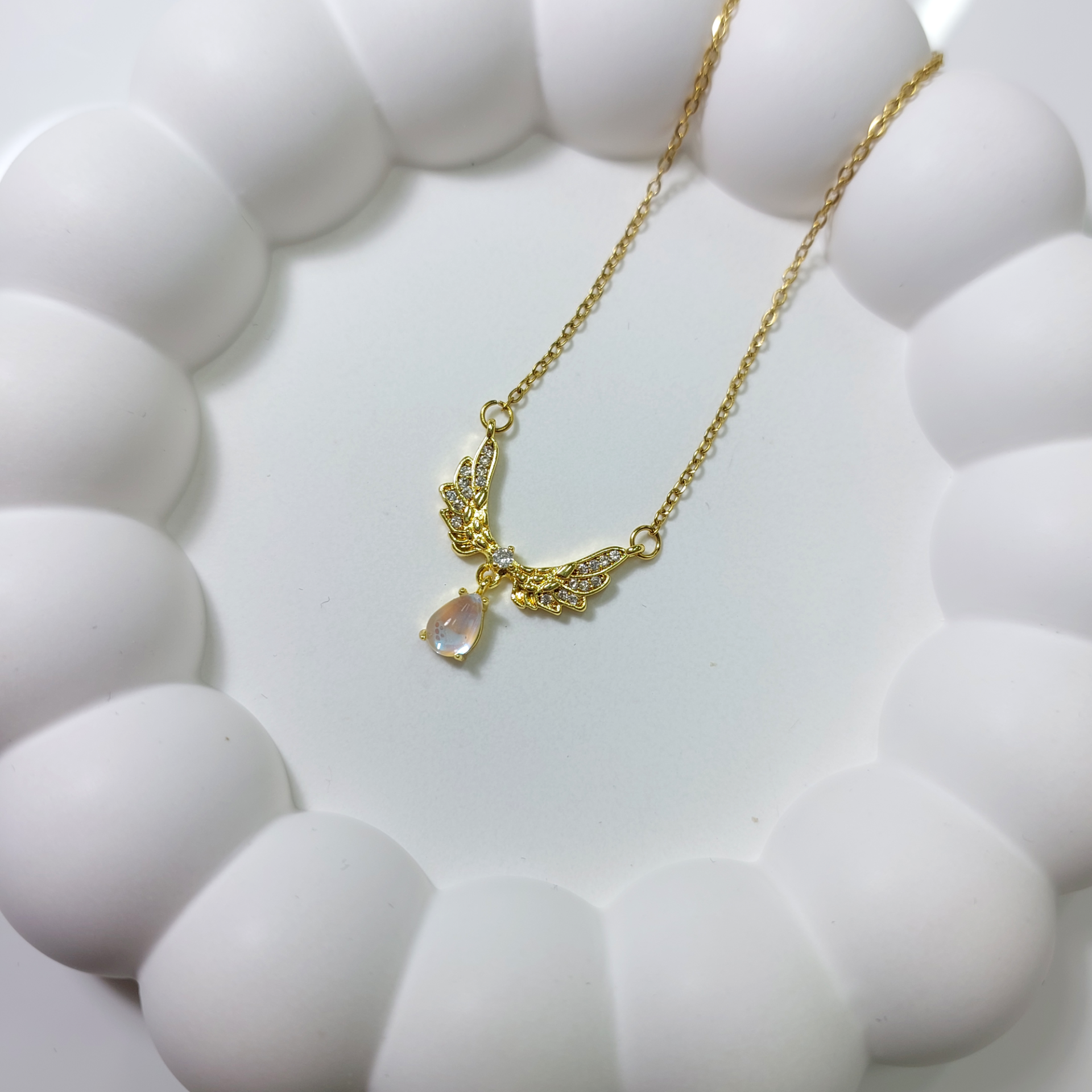 Çelik Damla Taş Detay Kanat Kolye