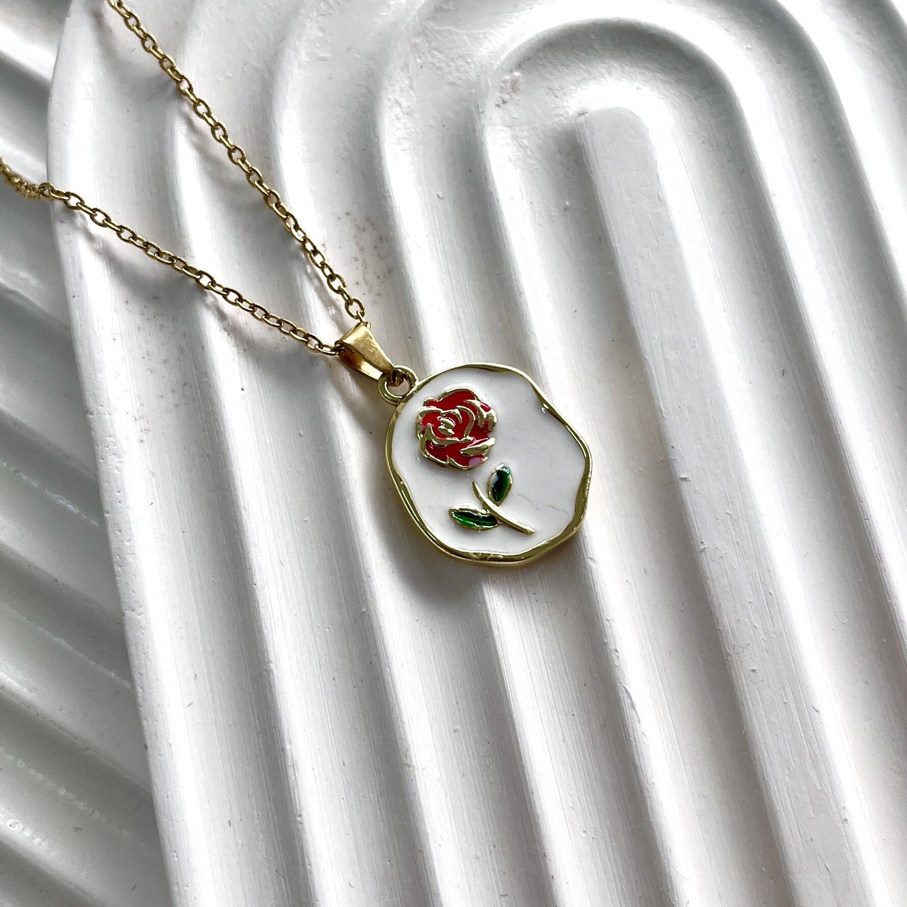 Çelik Gül Desenli Kolye