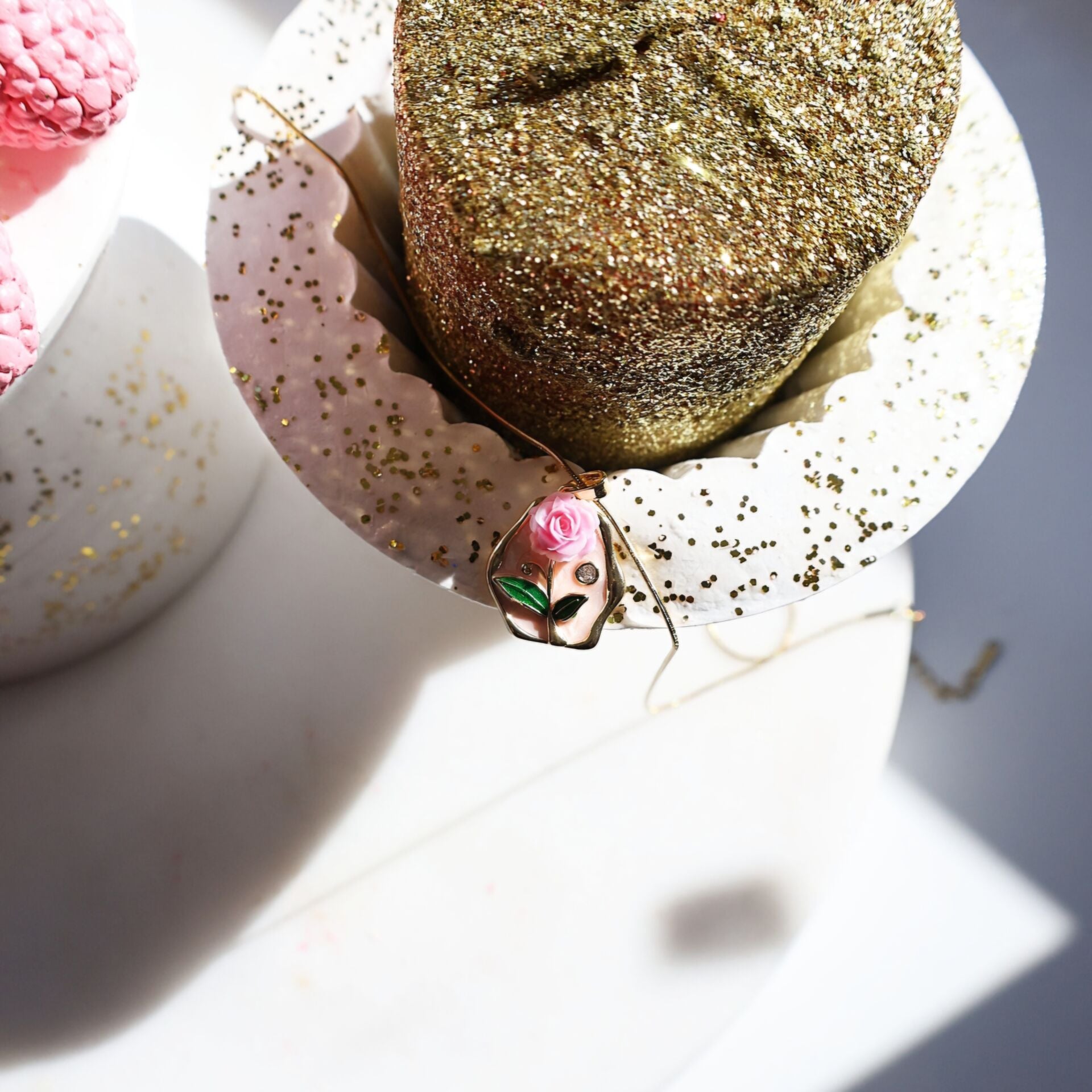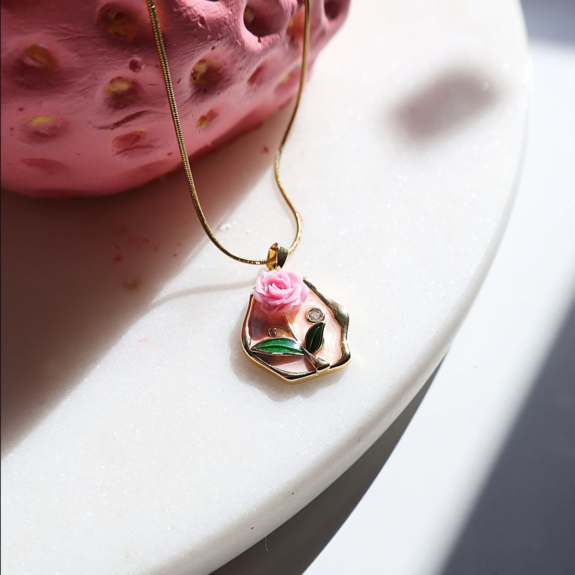 3 boyutlu mineli gül motifi kalıplanmıştır.