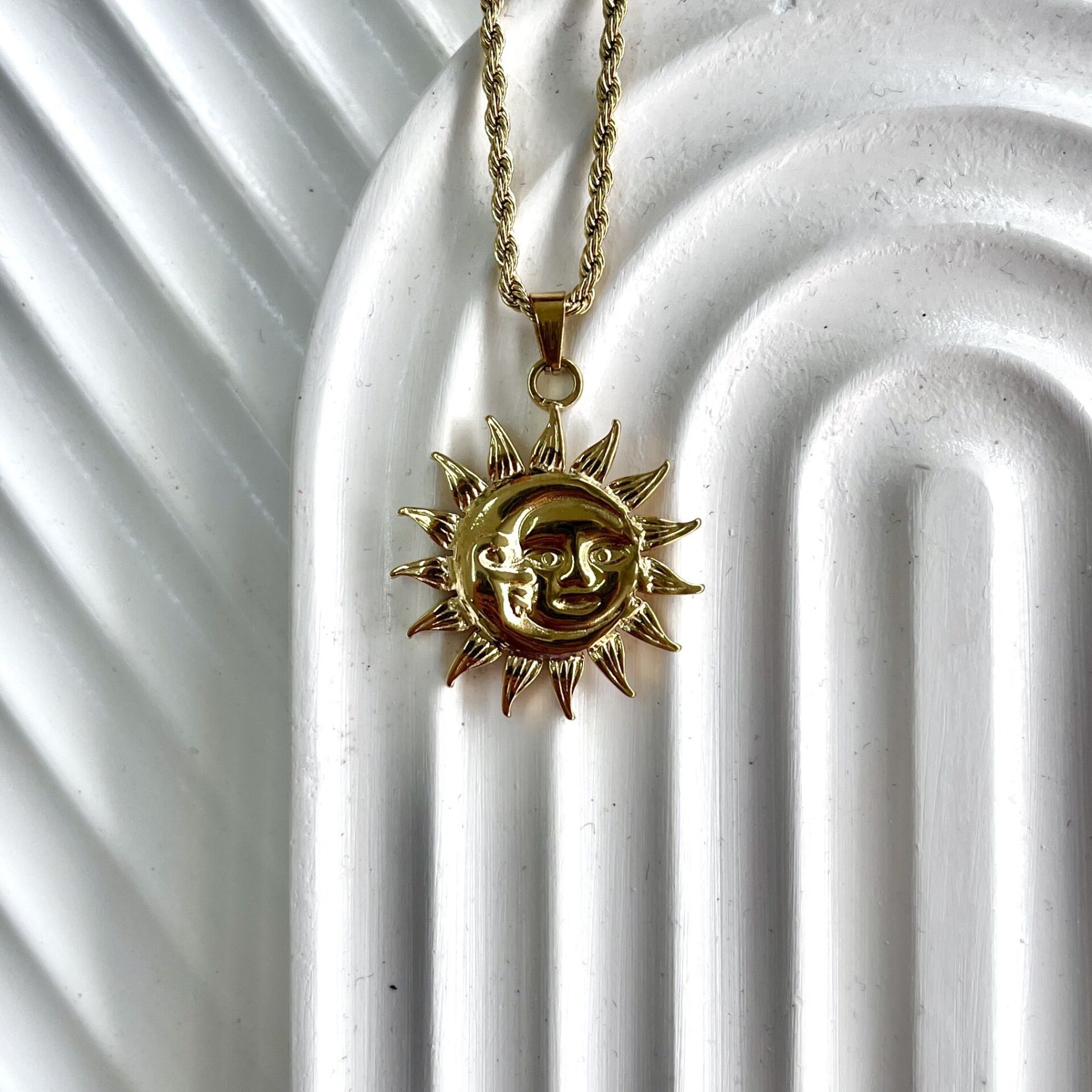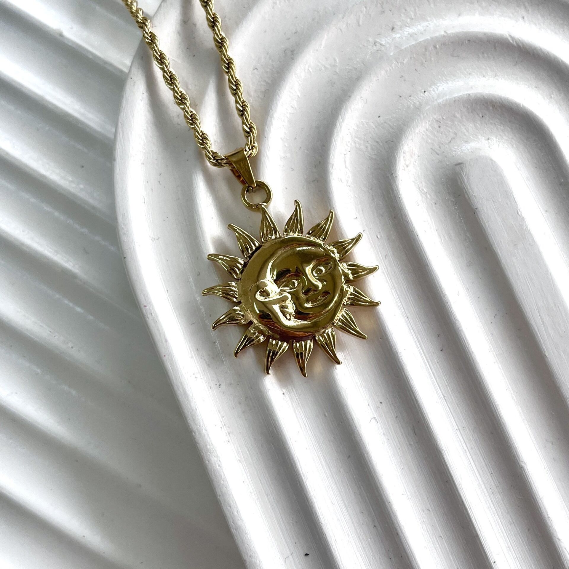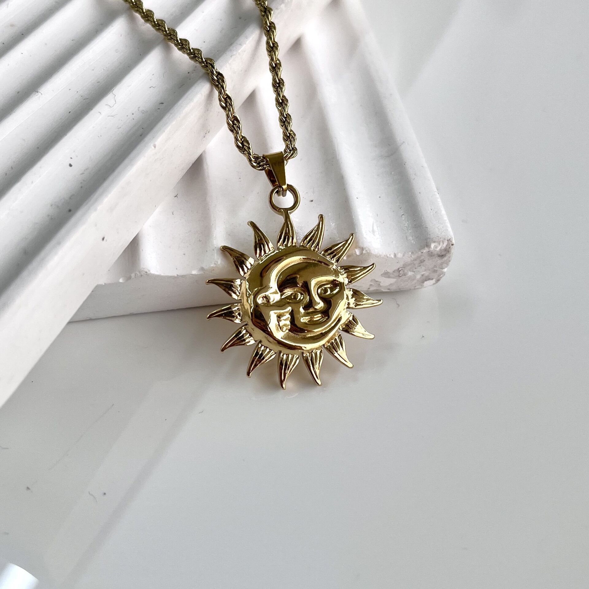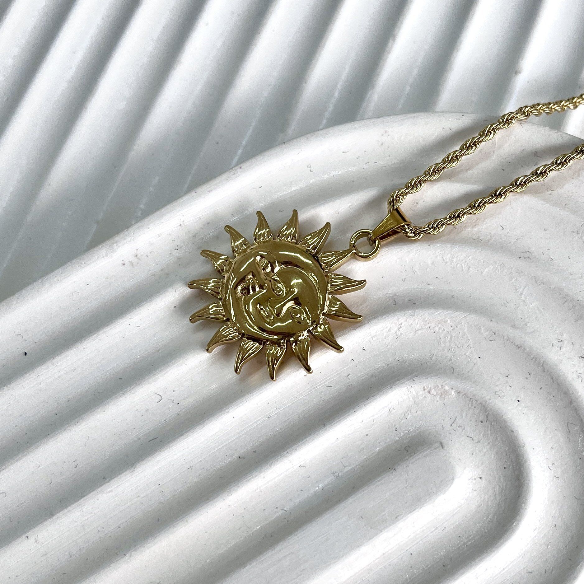 Çelik Güneş&Ay Burgu Kolye