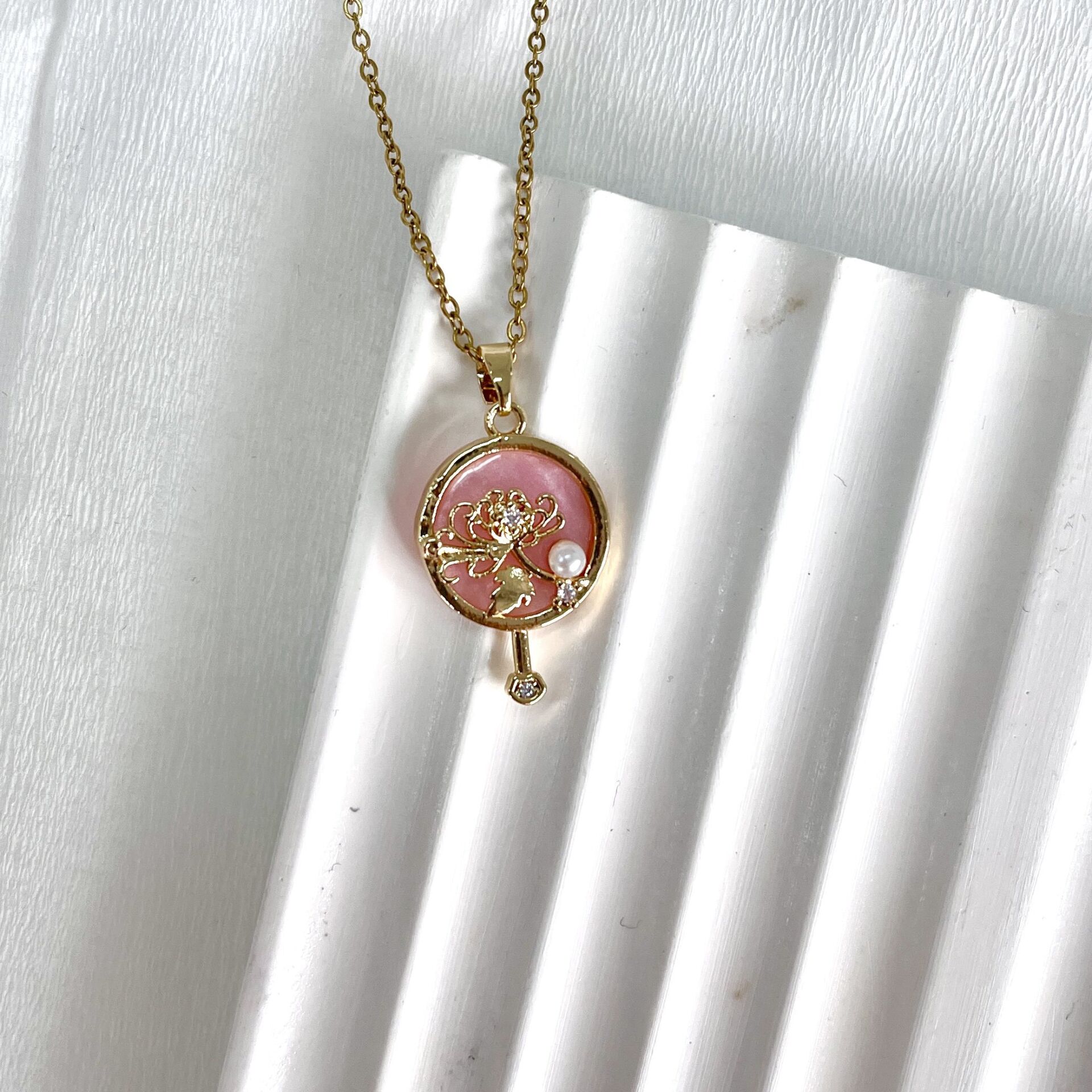 Çelik İnci Detay Çiçek Kolye