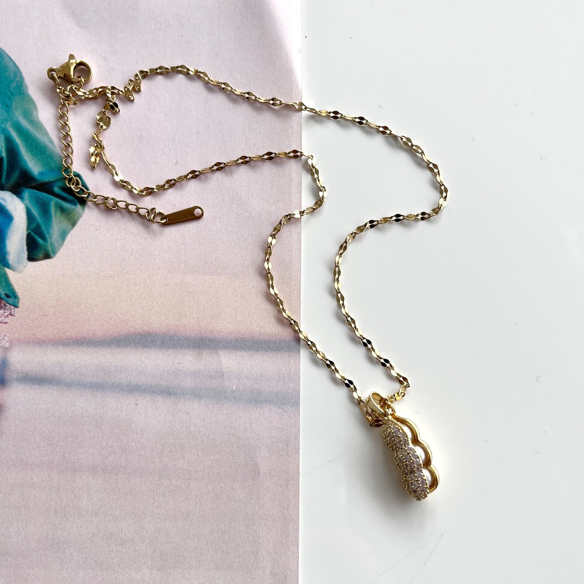 Çelik İnci Detay Taşlı Kolye