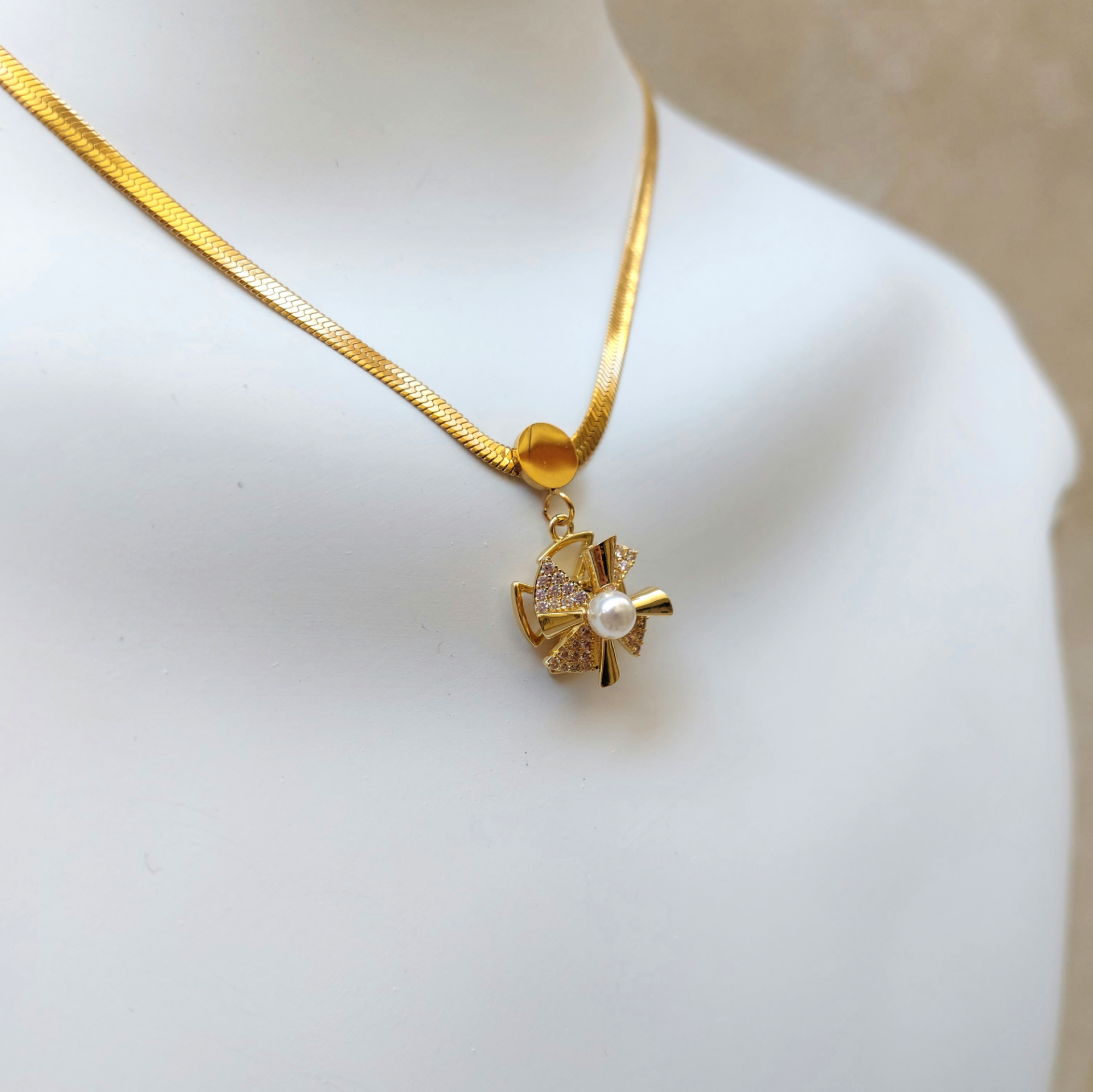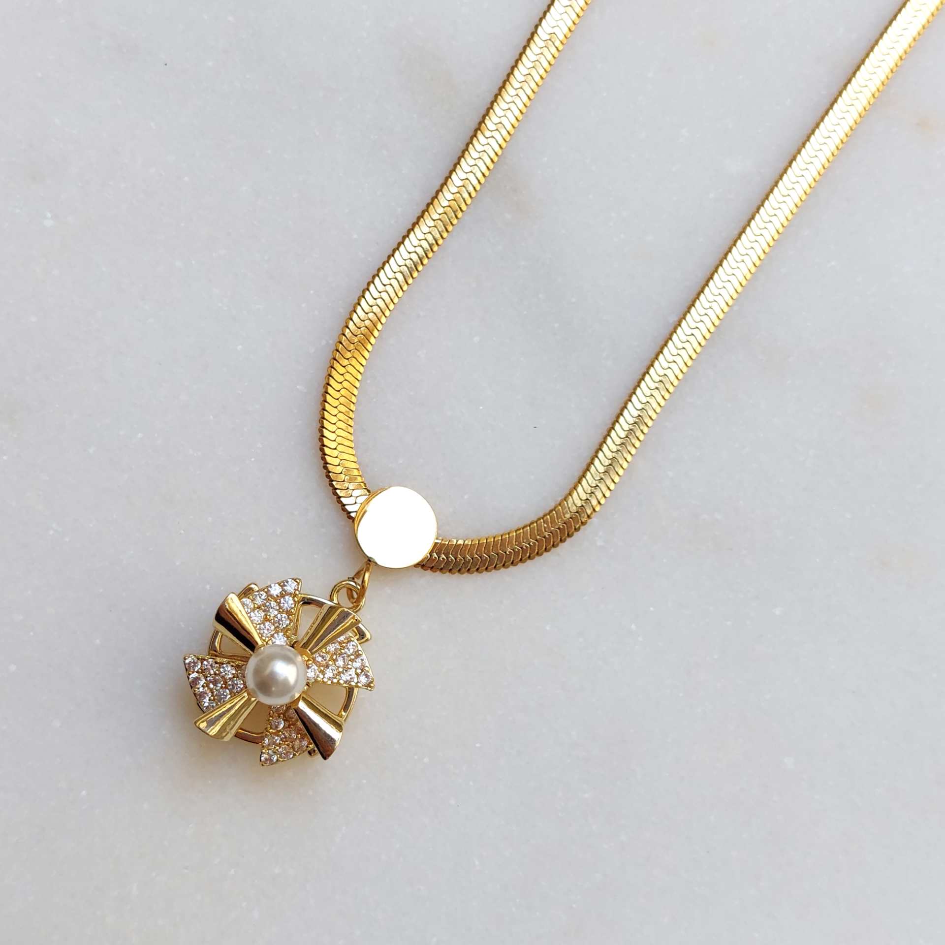 Çelik İnci Detay Zirkon Taş Kolye