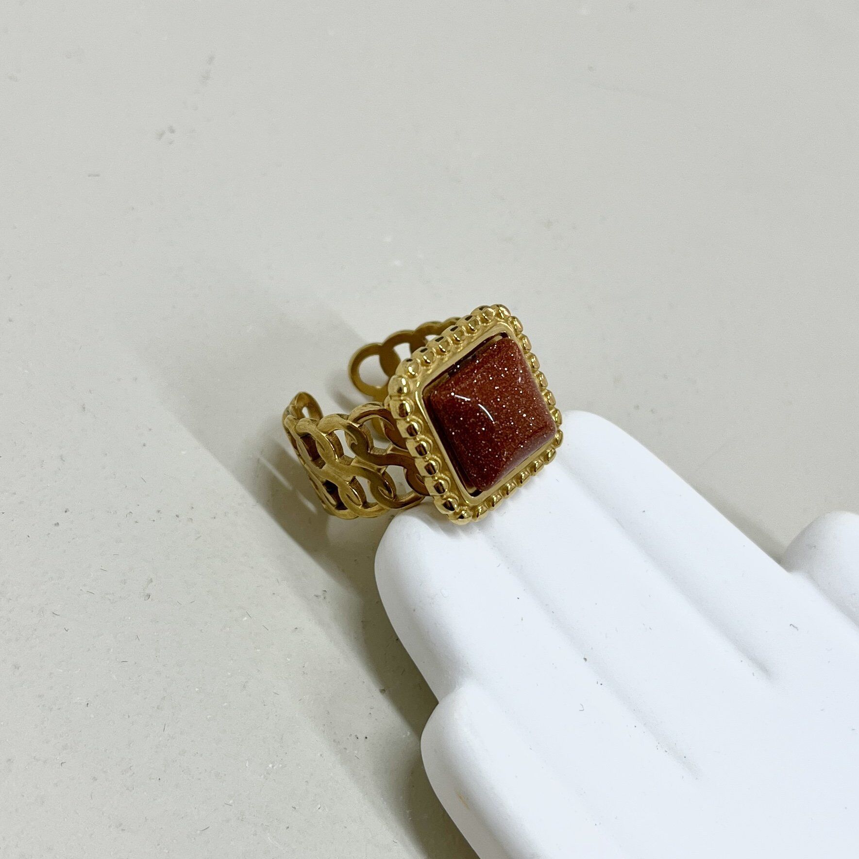 Çelik Kahverengi Yıldız Taşı Yüzük