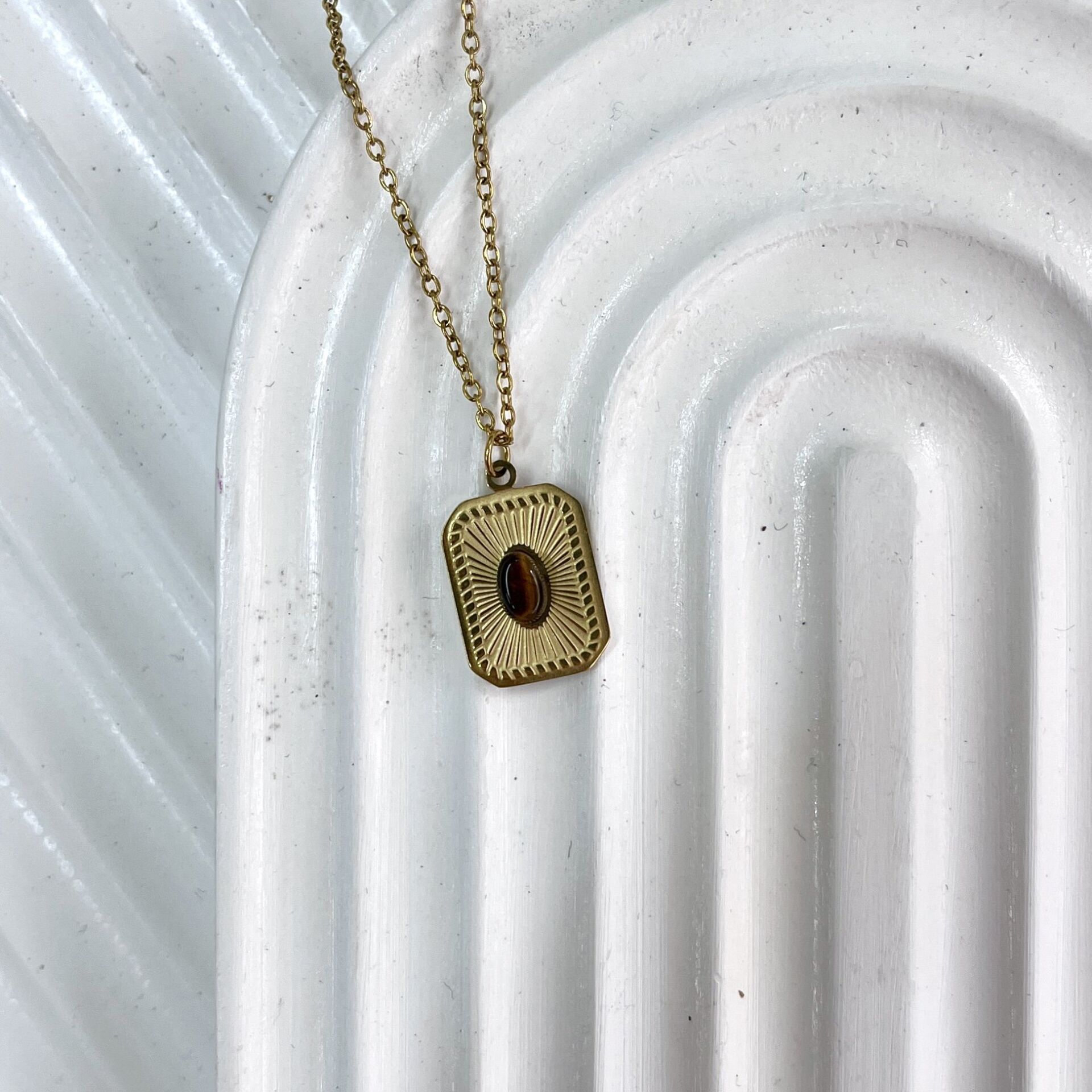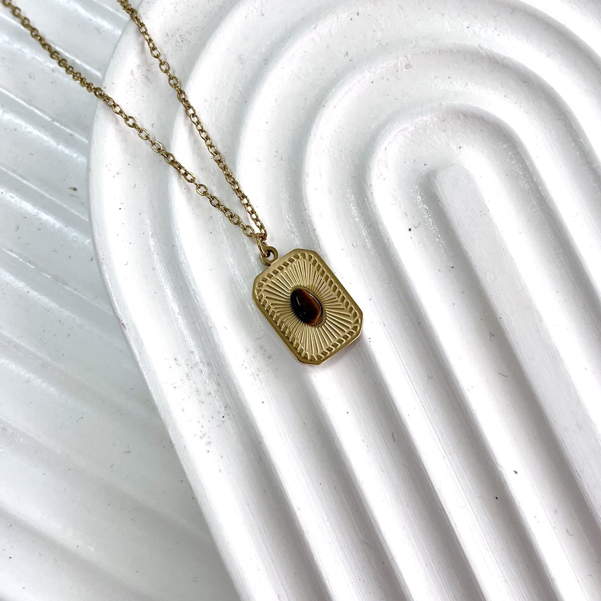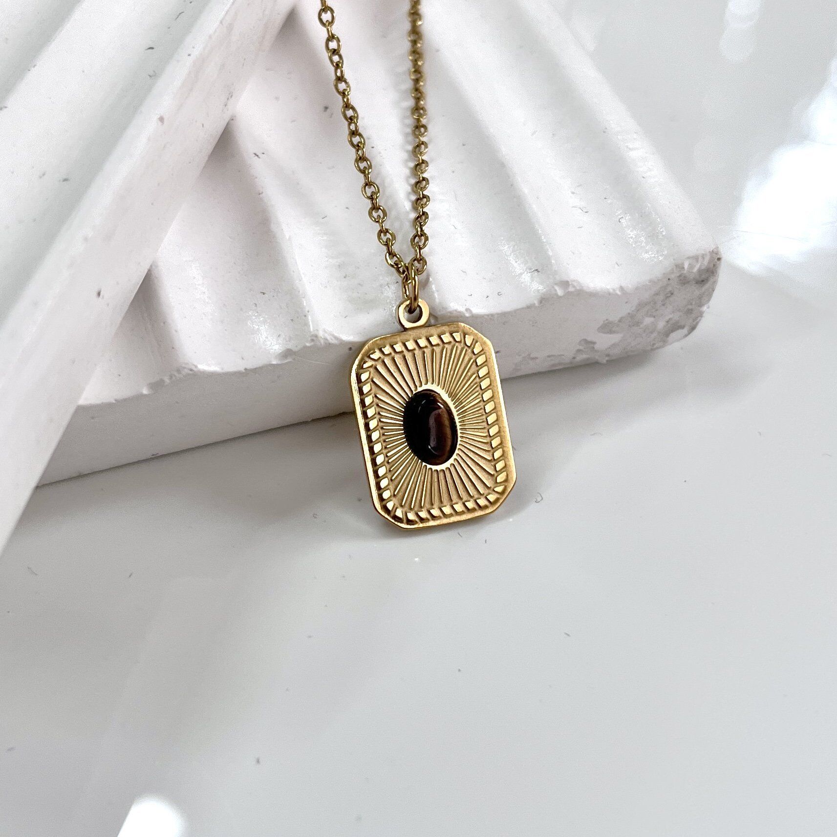 Çelik Kaplan Gözü Taşı Kolye
