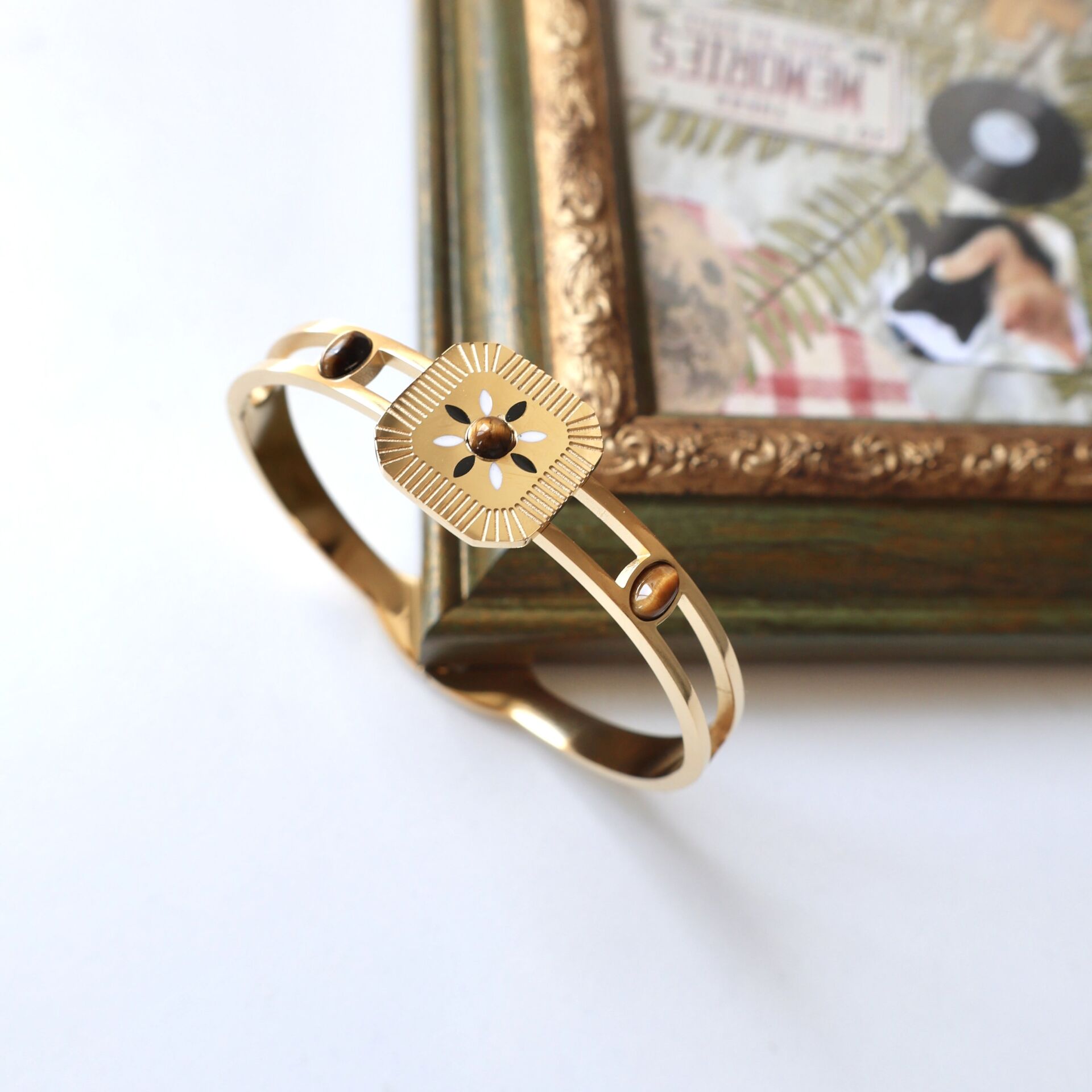 Doğal Kaplan Gözü taşı kullanılmıştır.