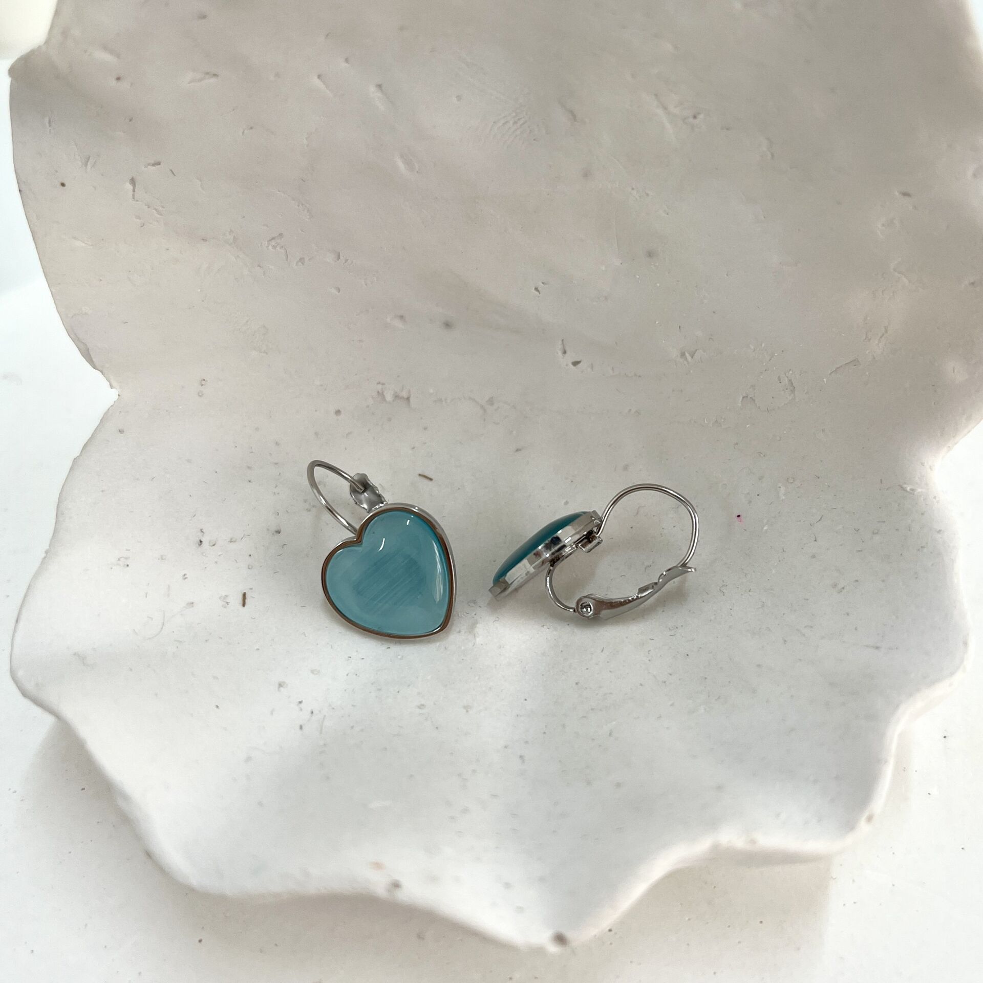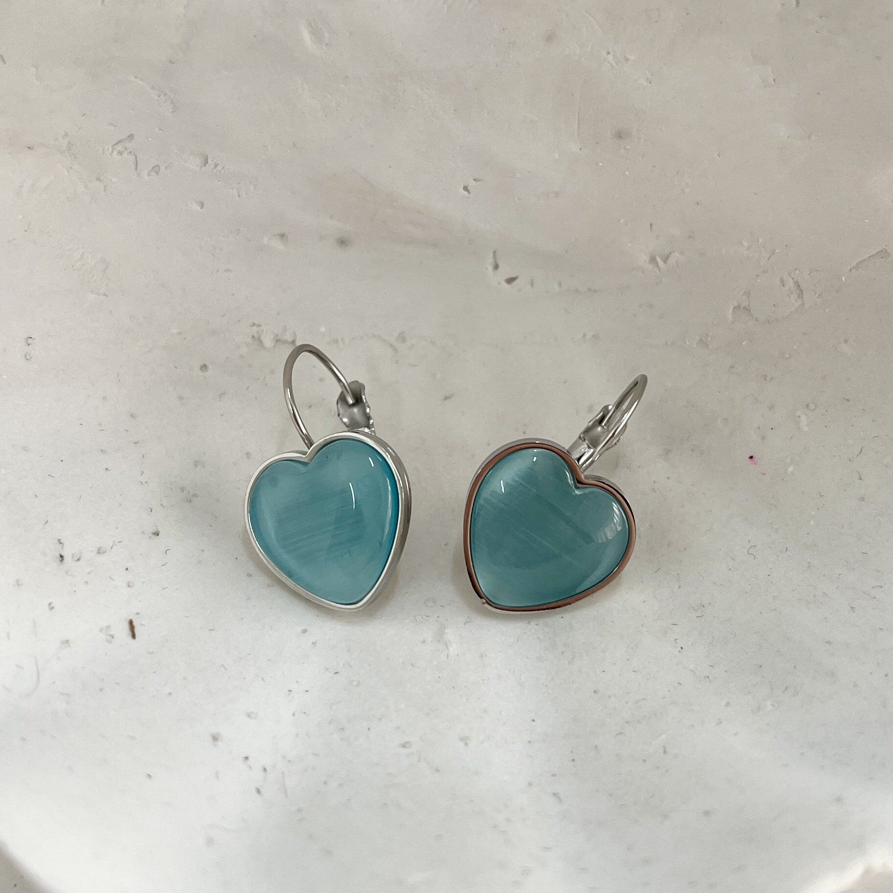 Çelik Kedi Gözü Mavi Kalp Küpe