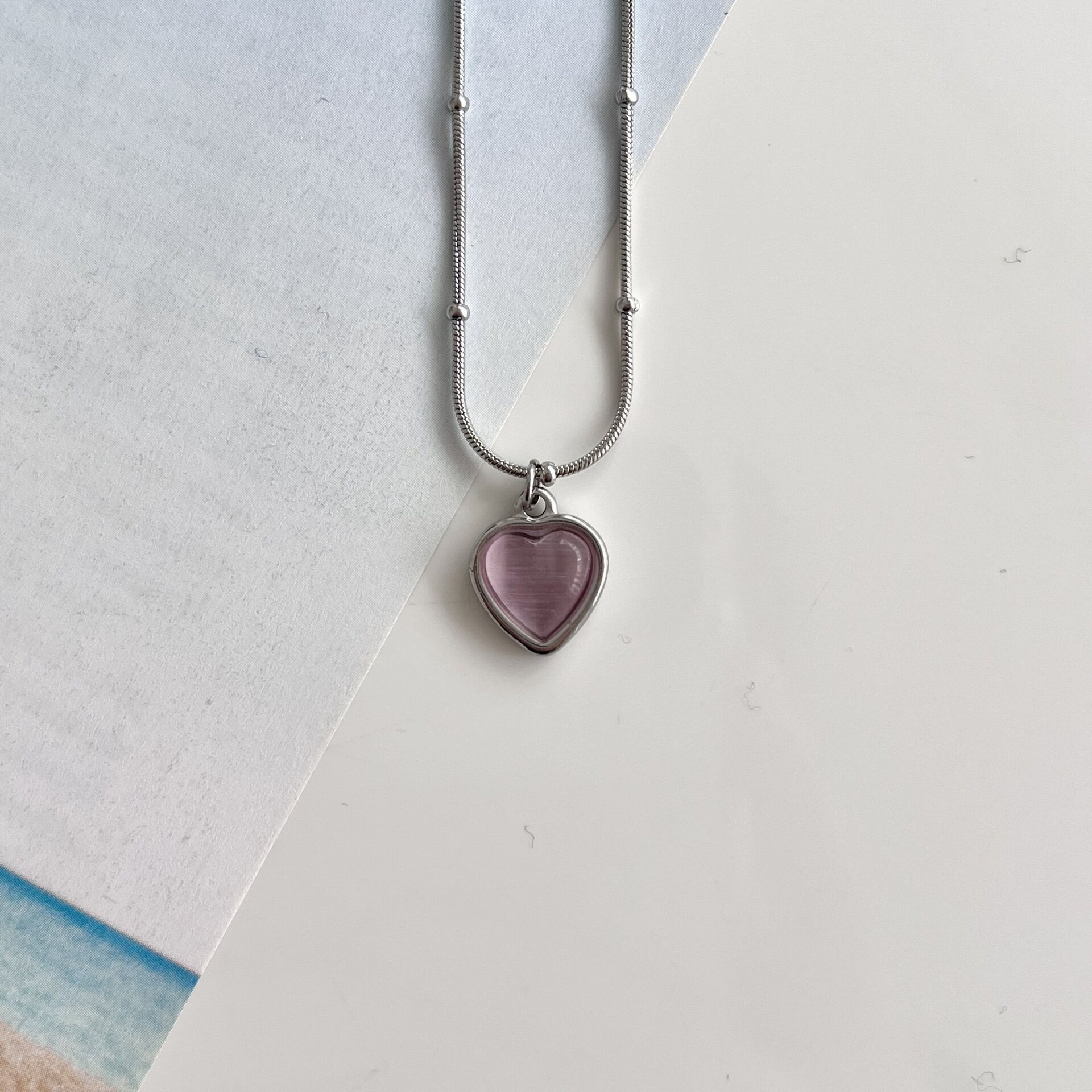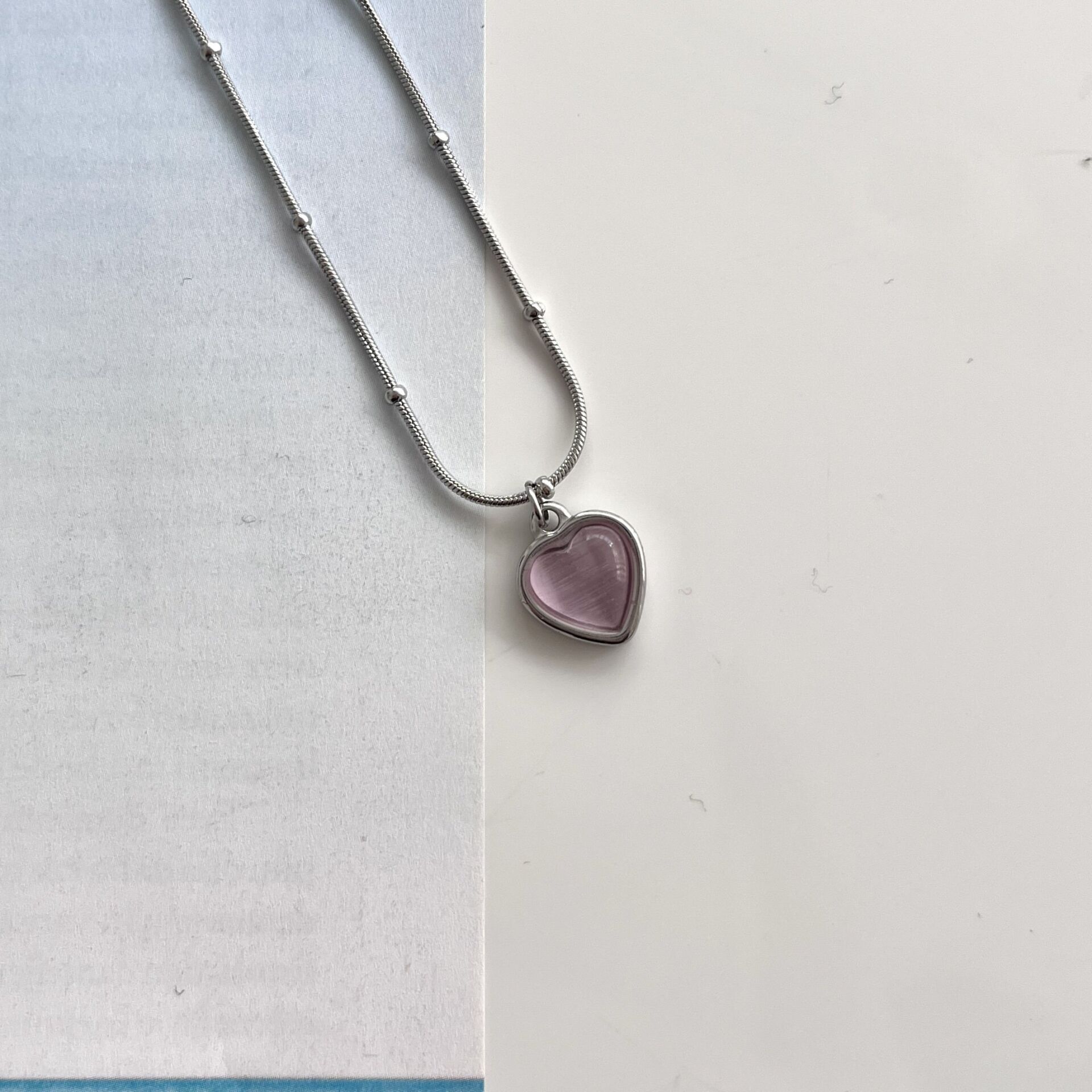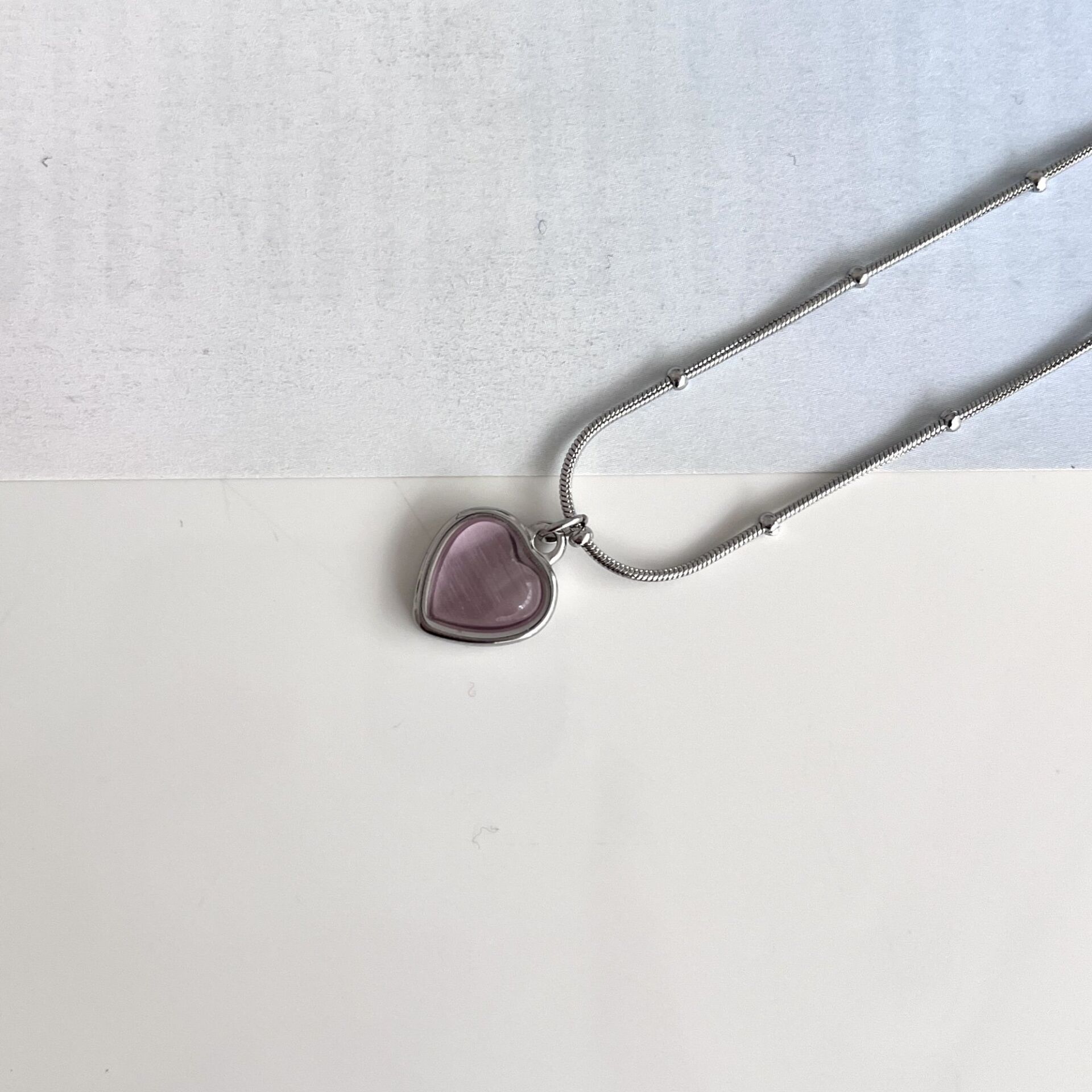 Çelik Kedi Gözü Pembe Kalp Kolye