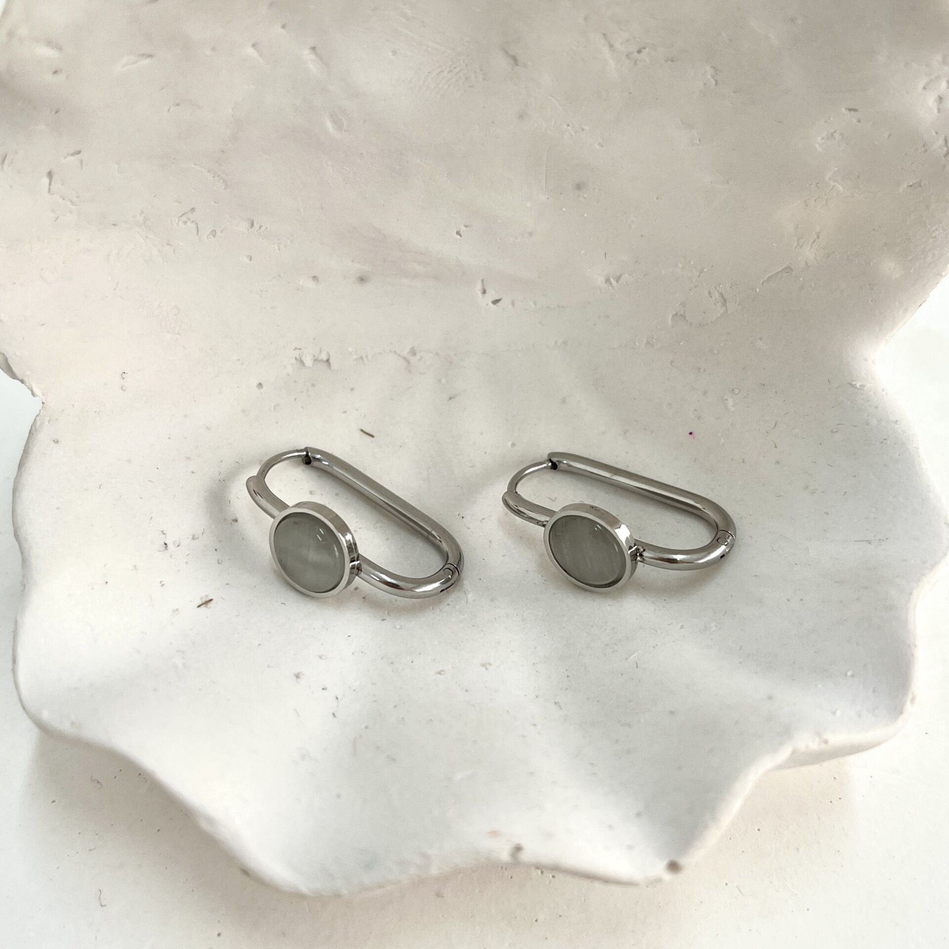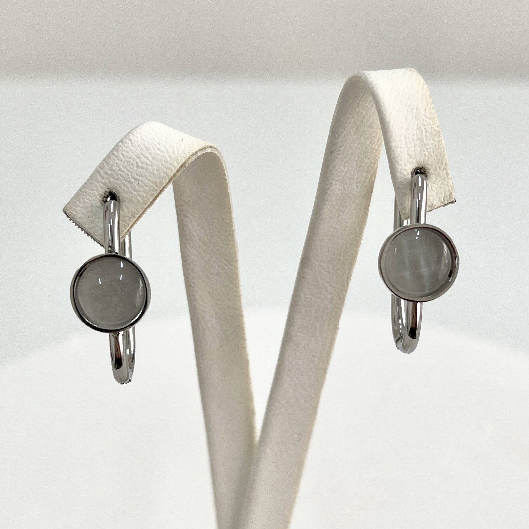 Çelik Kedi Gözü Taşı Gri Küpe