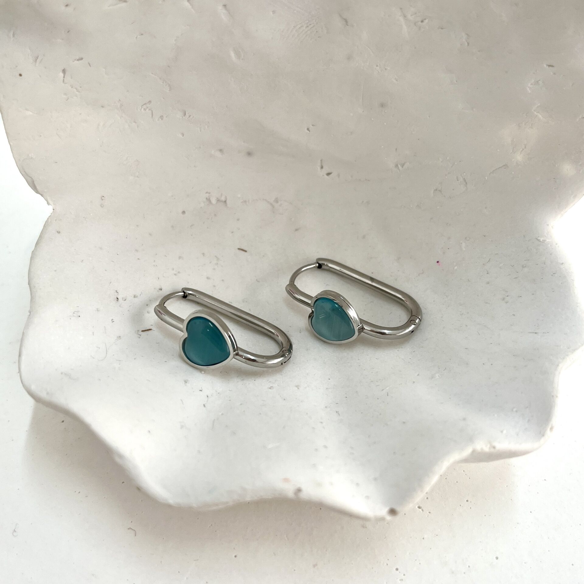 Çelik Kedi Gözü Taşı Kalp Küpe L93BSZ18EQ Çelik Kedi Gözü Taşı Kalp Küpe