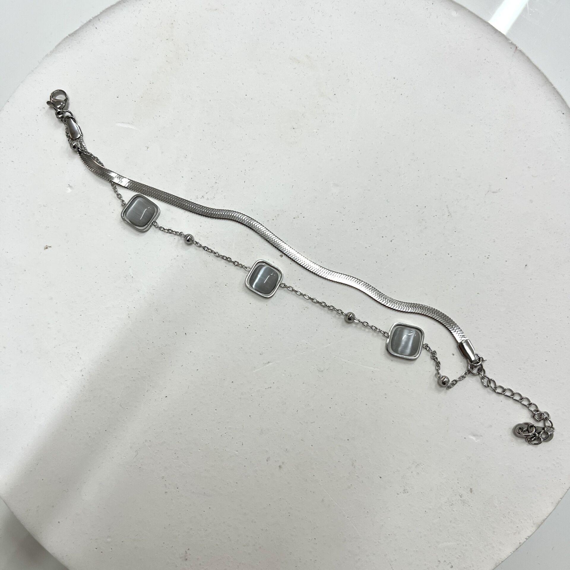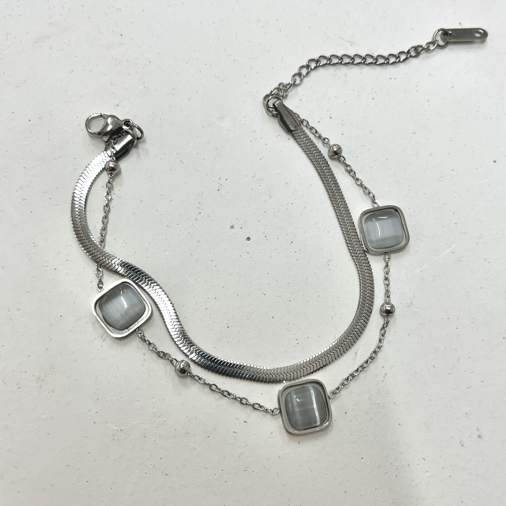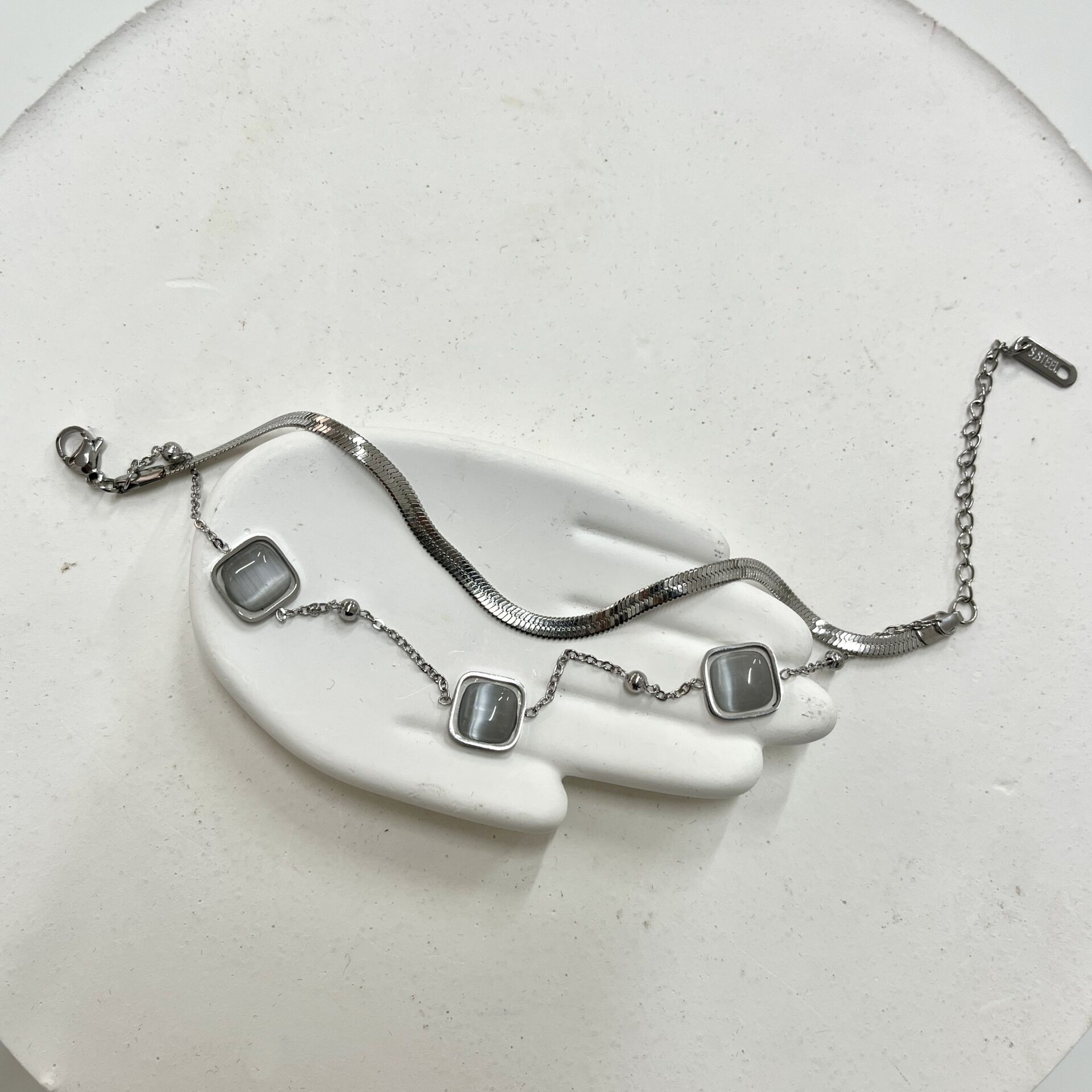 Çelik Kedi Gözü Taşı Kare Bileklik