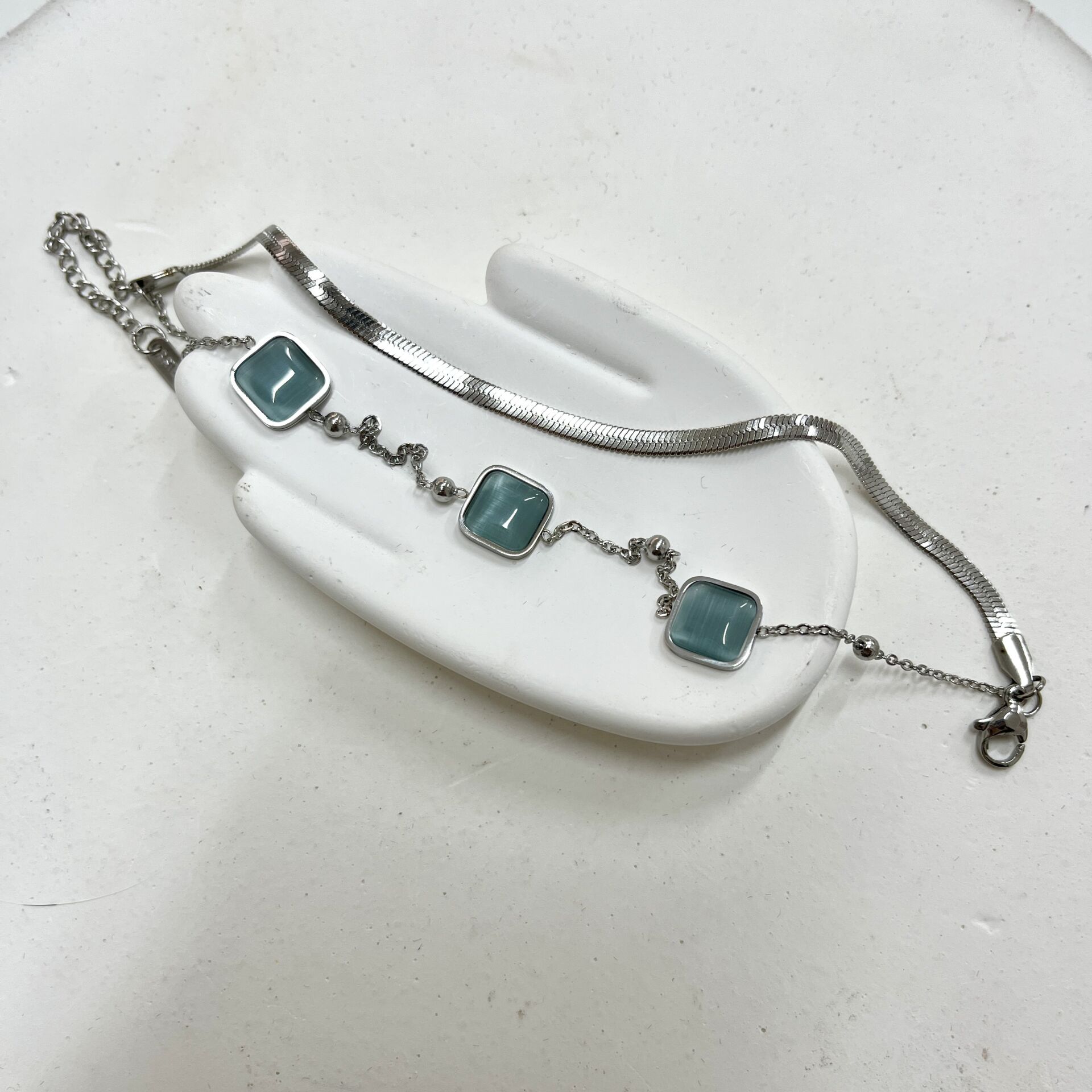 Çelik Kedi Gözü Taşı Kare Bileklik Q7FUGKXZ3V Çelik Kedi Gözü Taşı Kare Bileklik
