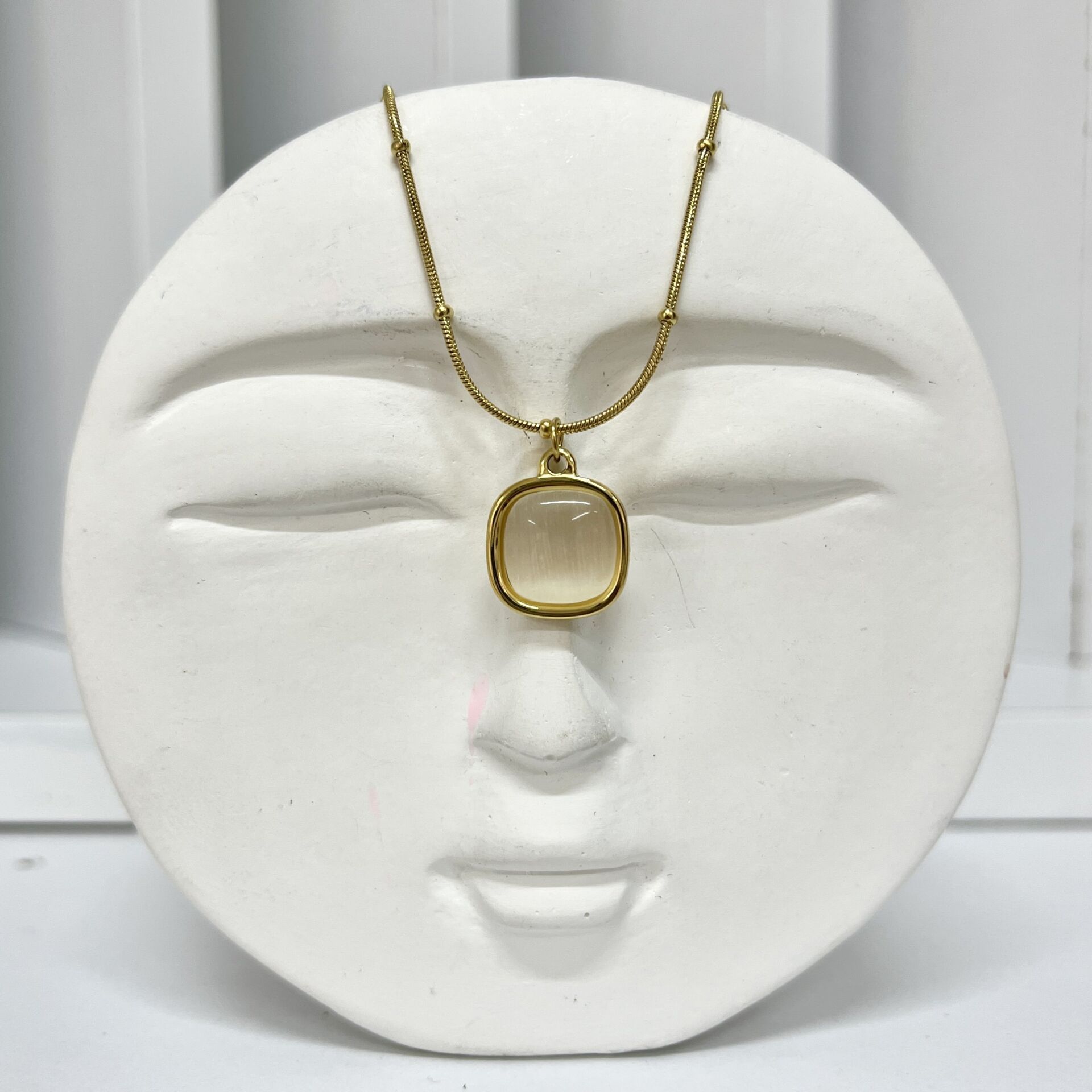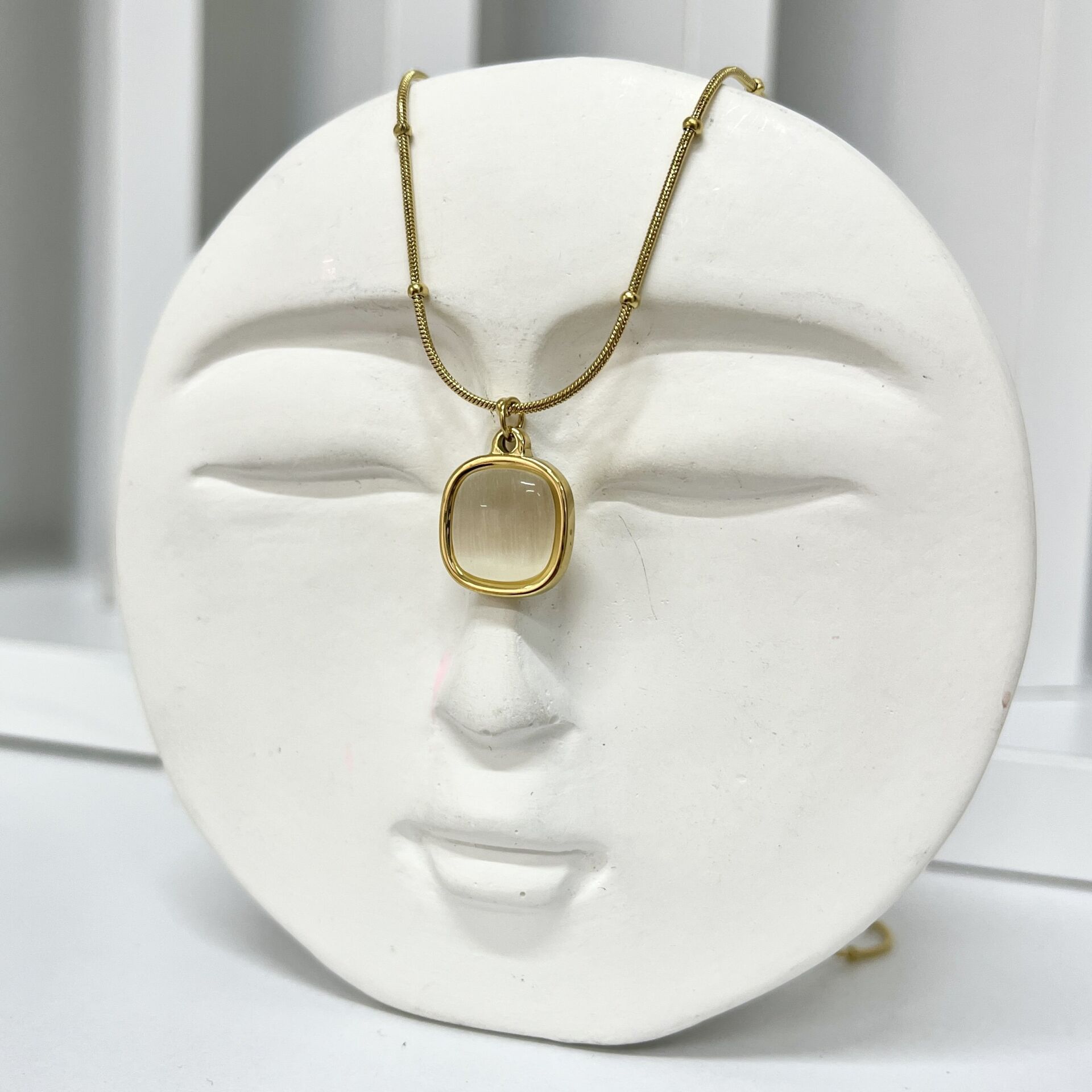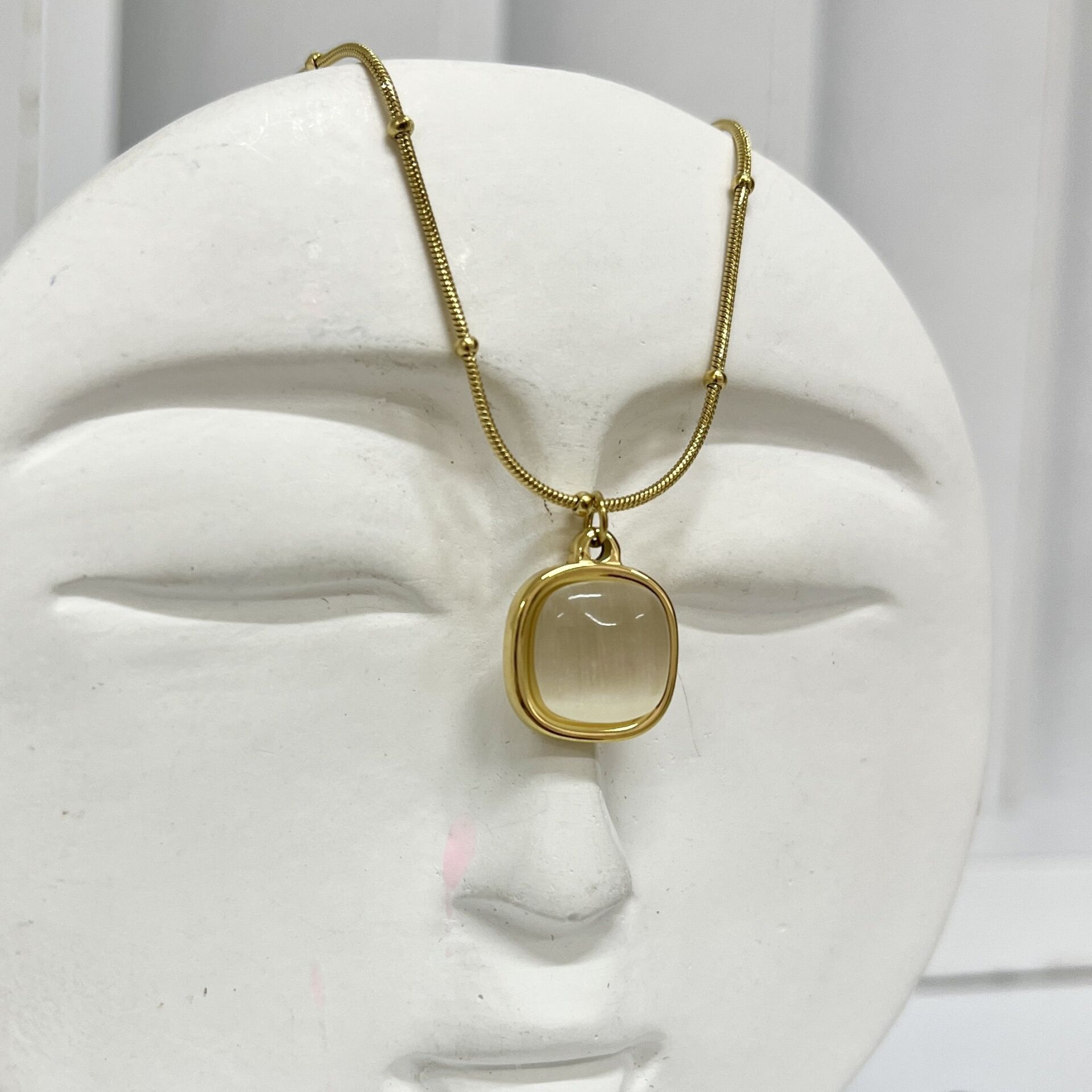 Çelik Kedi Gözü Taşı Kolye