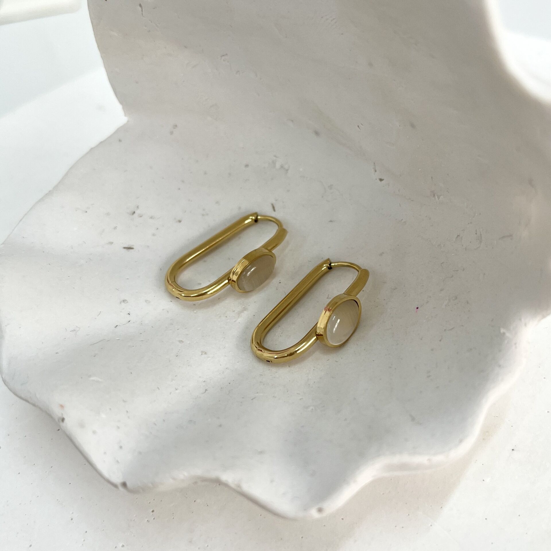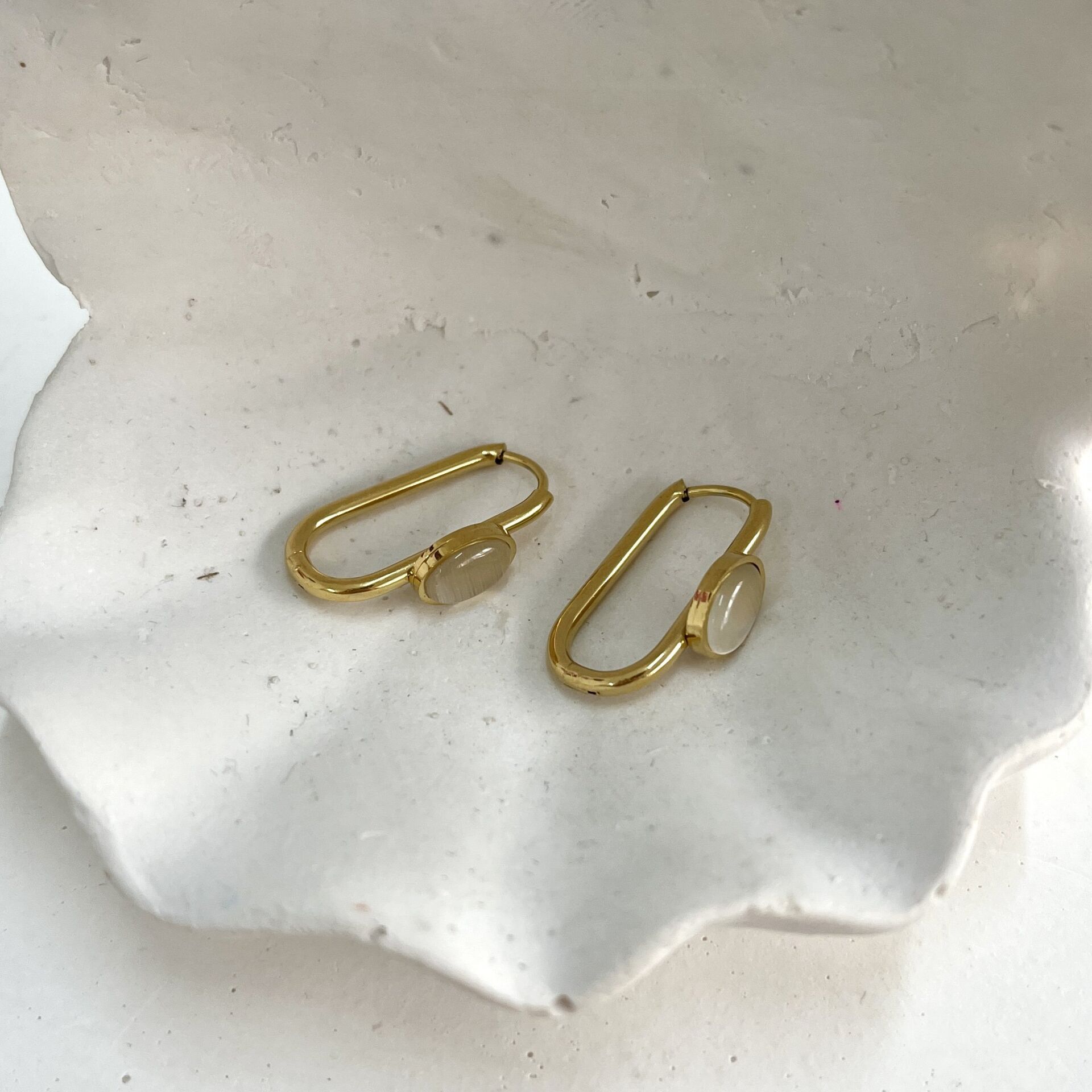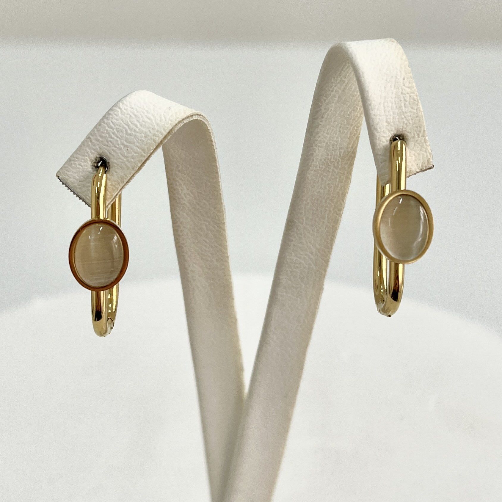 Çelik Kedi Gözü Taşı Küpe 3V3Z5R2RGX Çelik Kedi Gözü Taşı Küpe