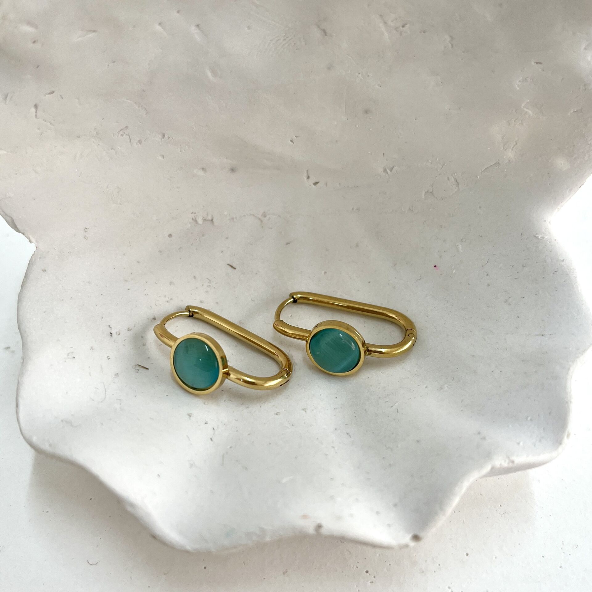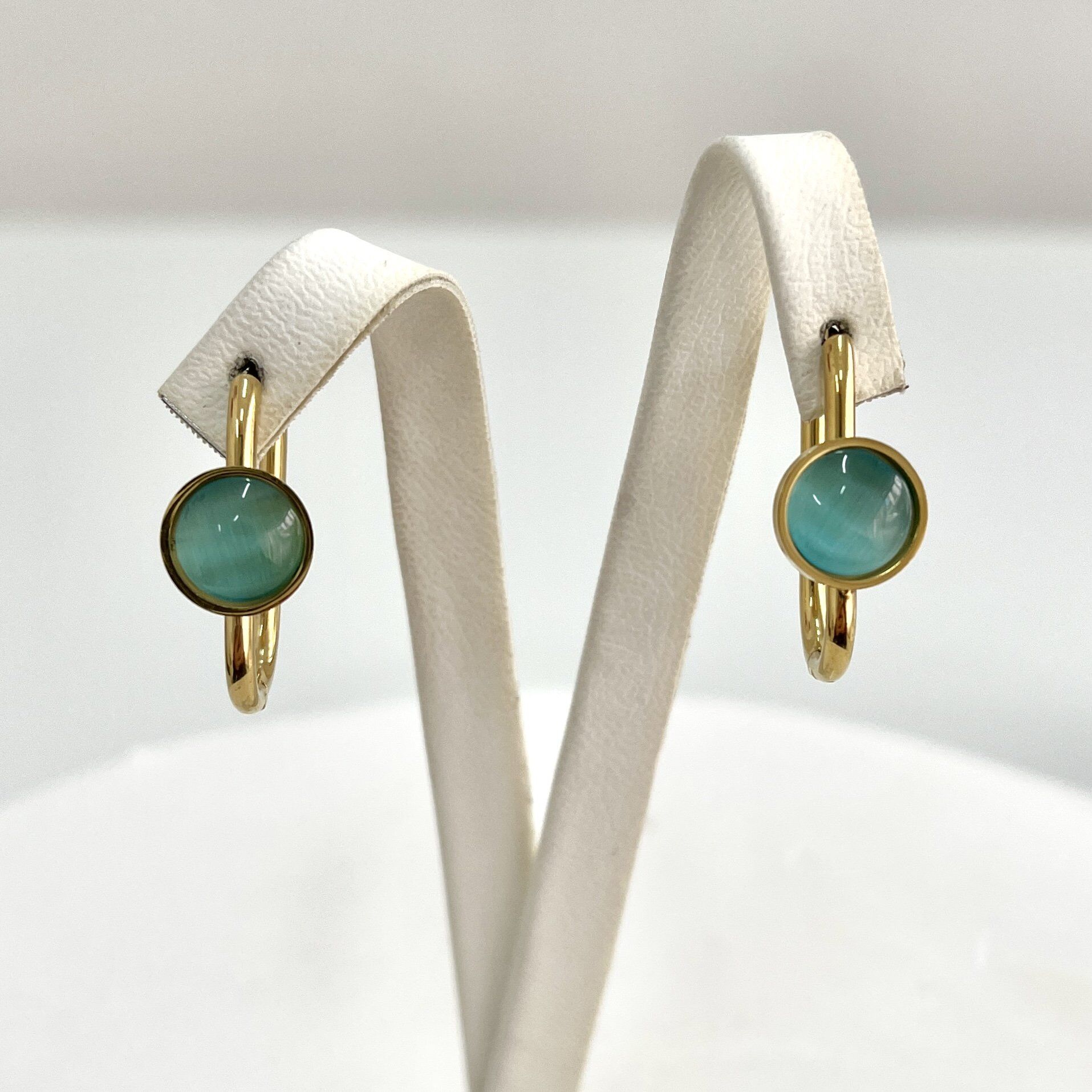 Çelik Kedi Gözü Taşı Mavi Küpe