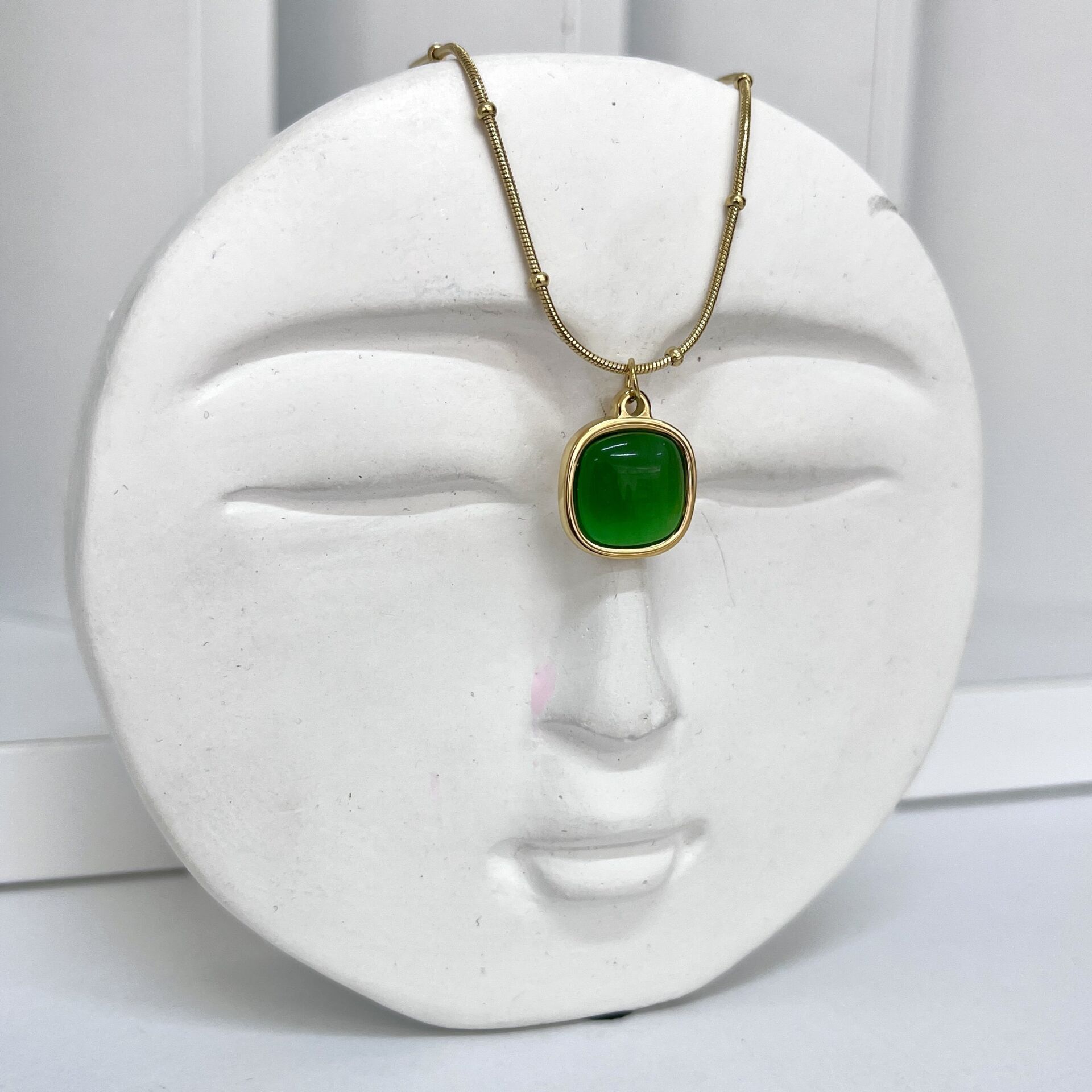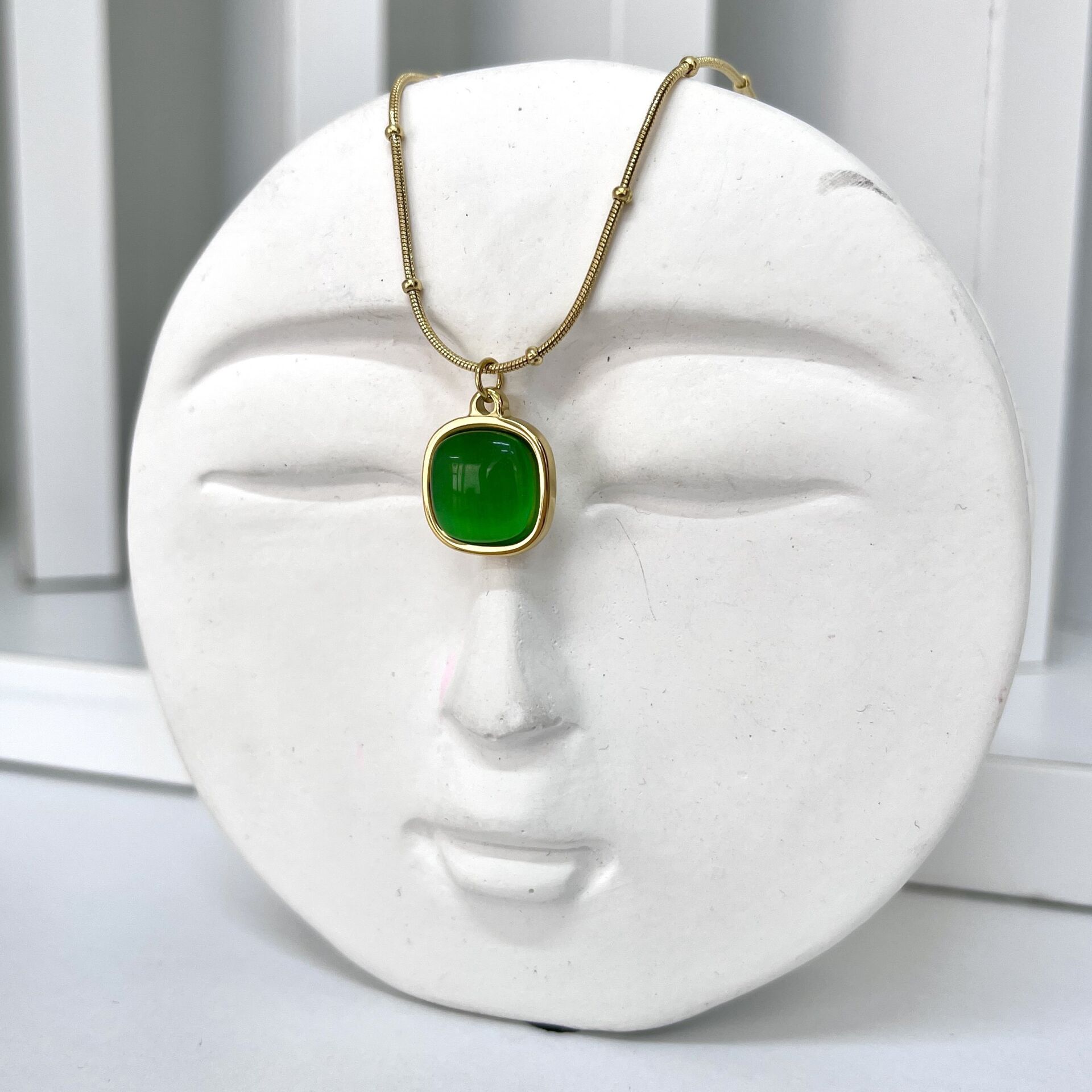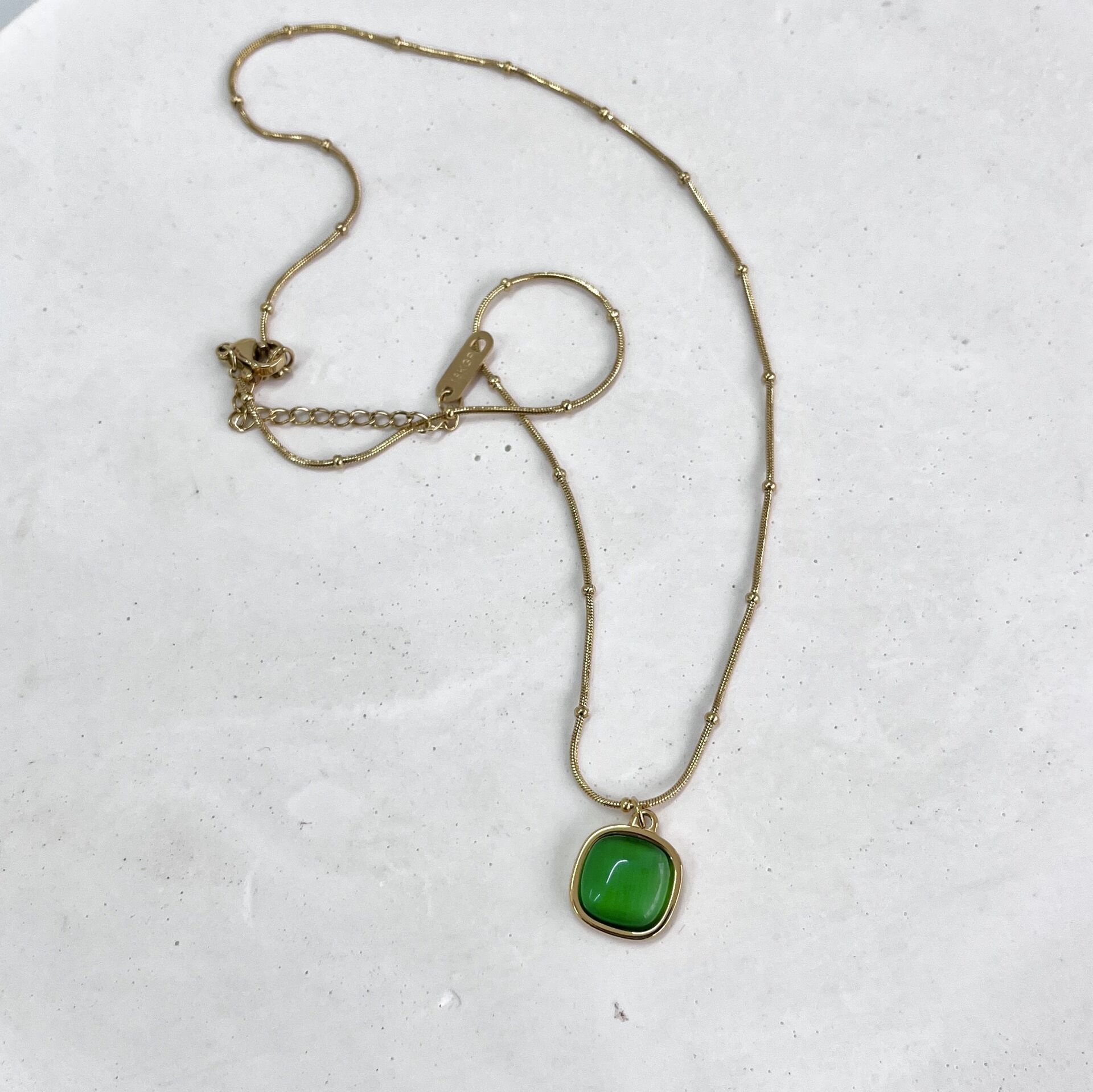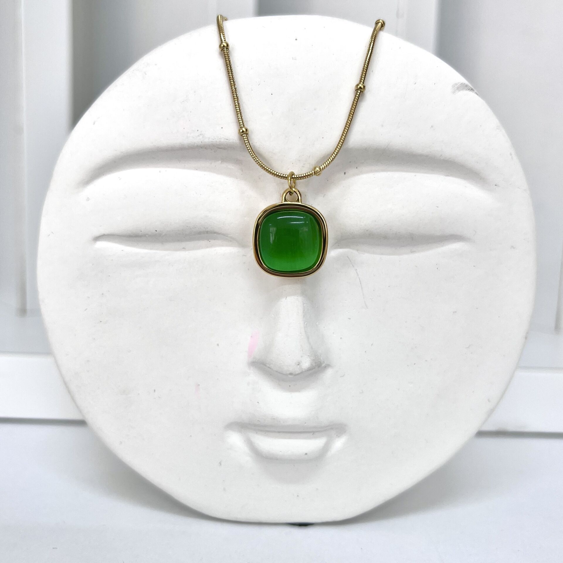 Çelik Kedi Gözü Taşı Yeşil Kolye