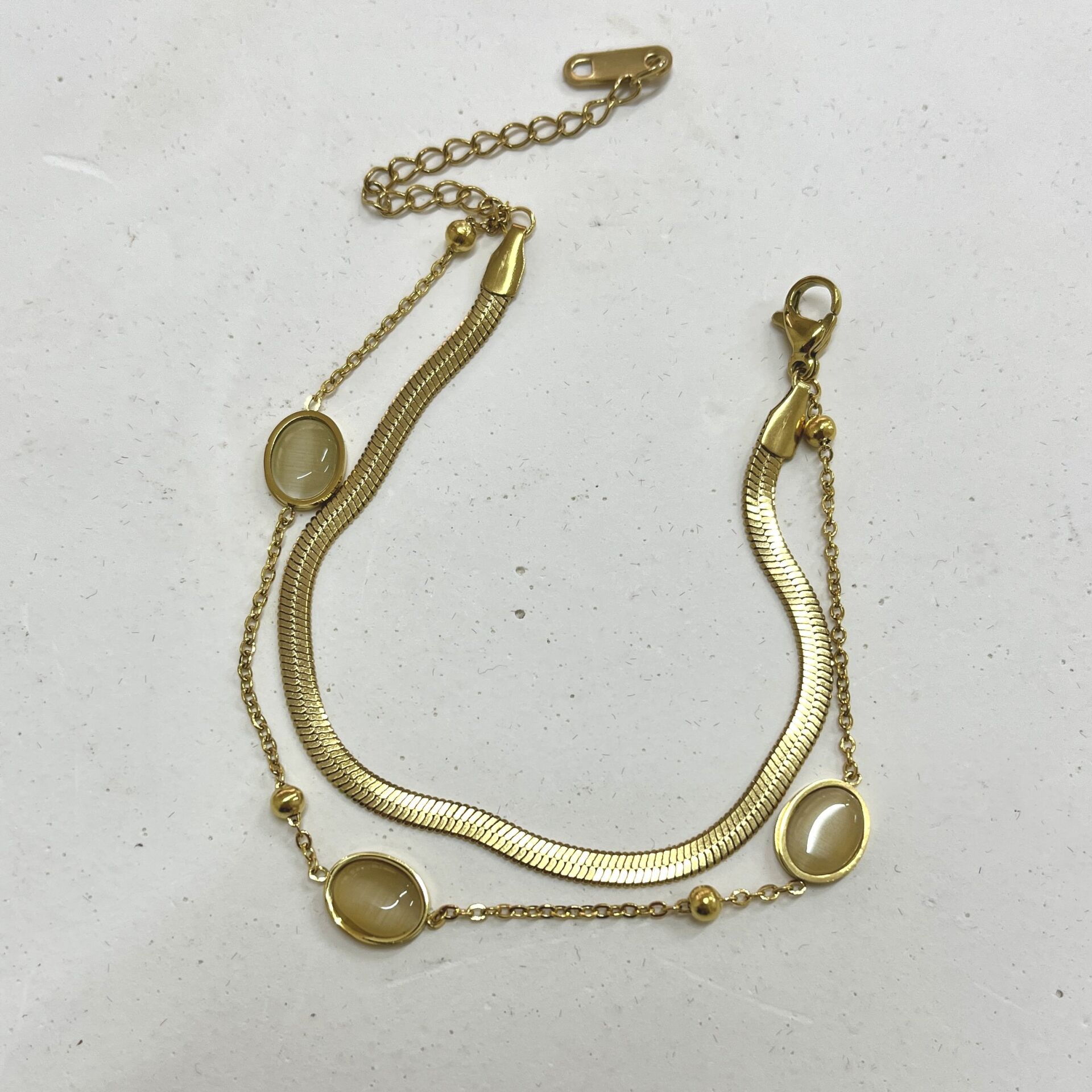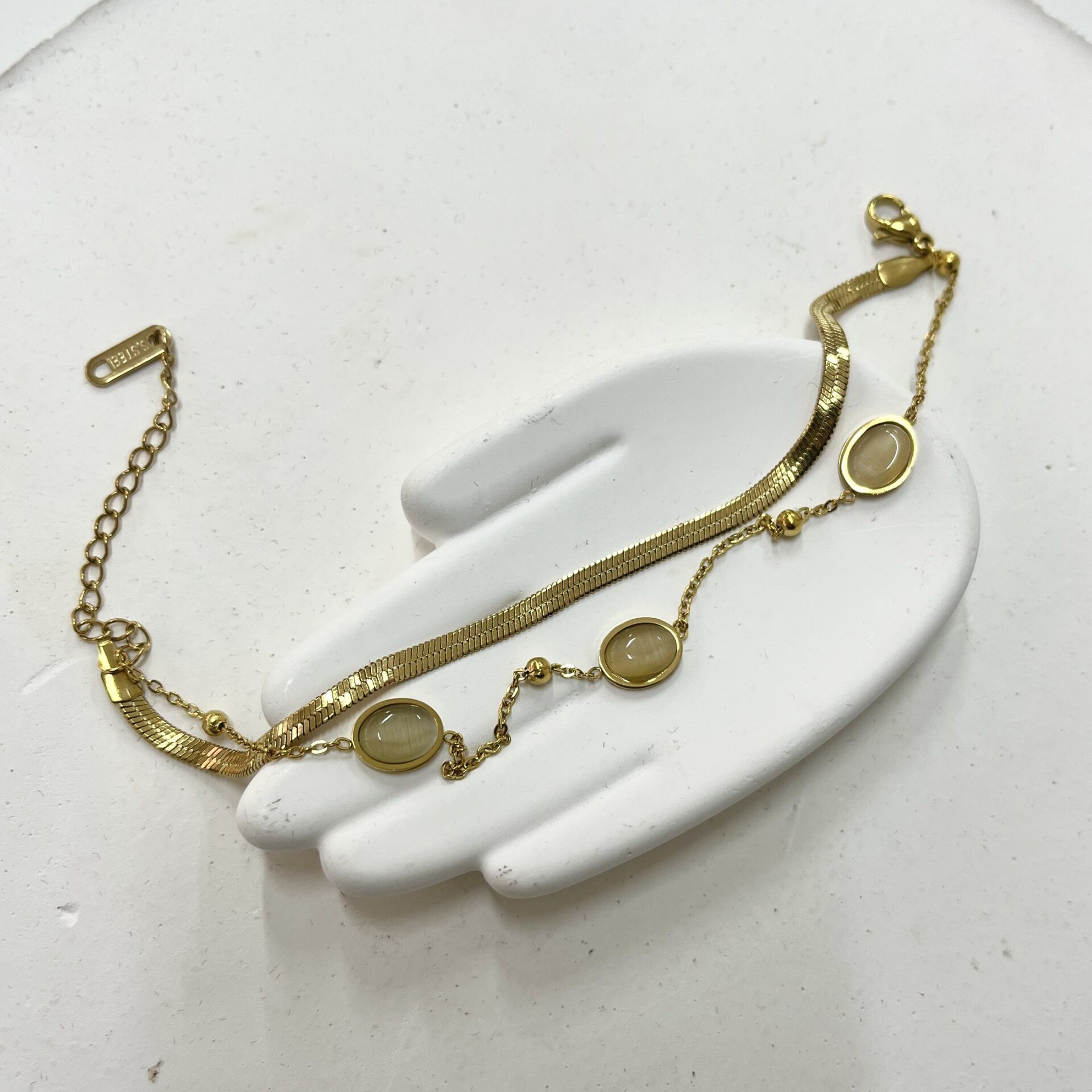 Çelik Kedi Gözü Taşlı Bileklik