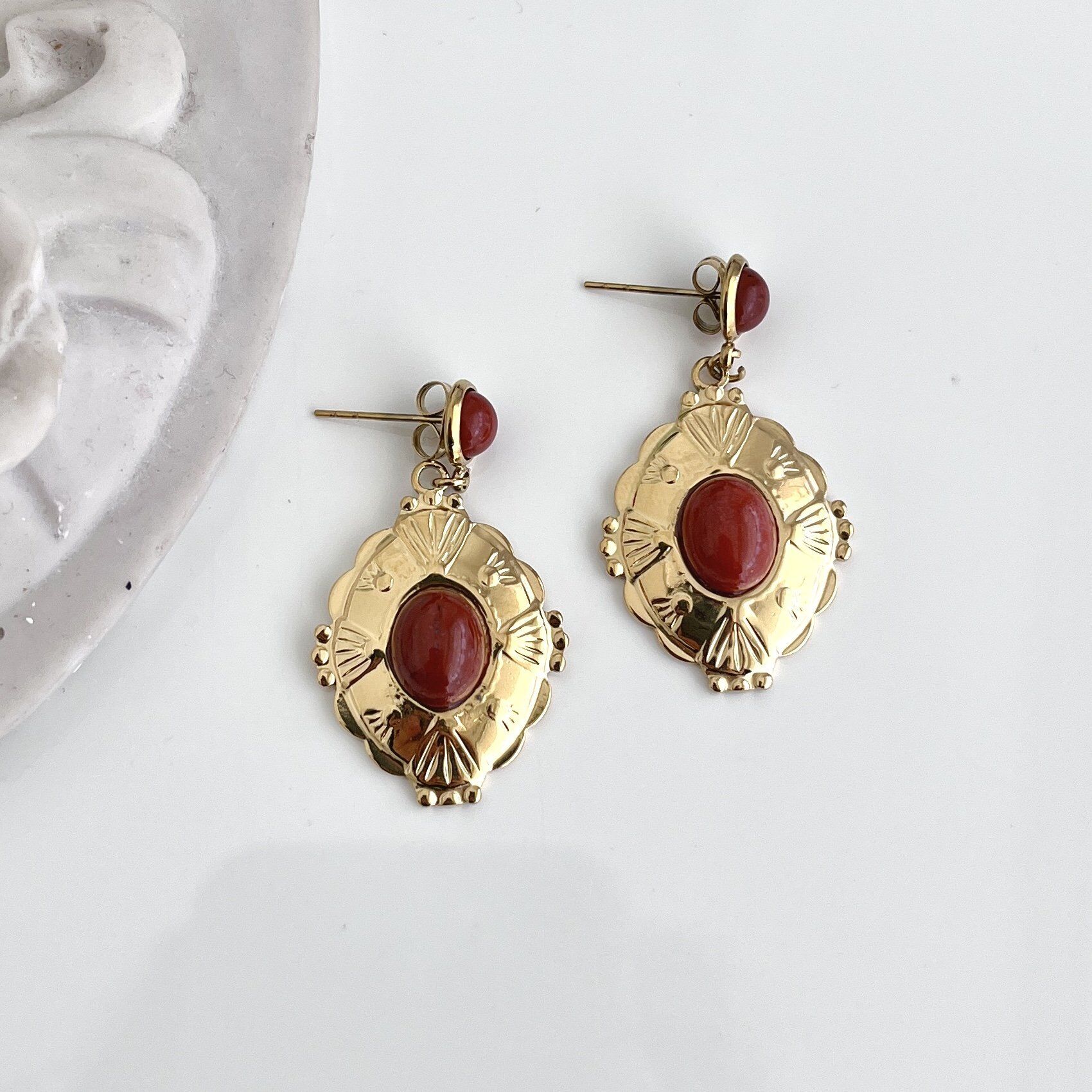 Çelik Kırmızı Taşlı Küpe