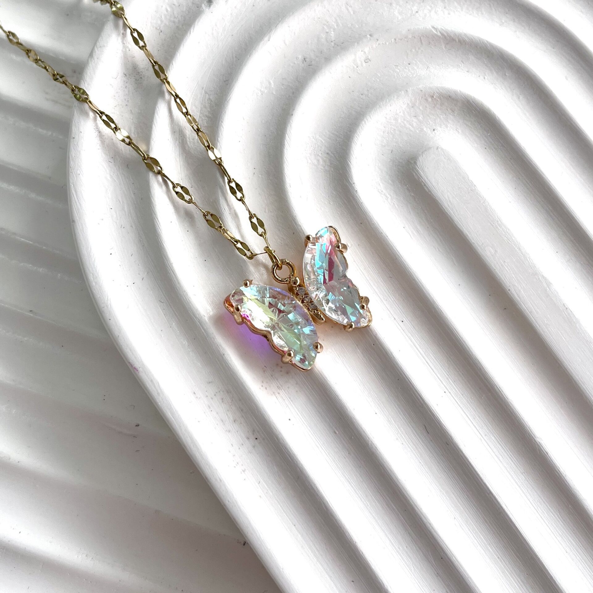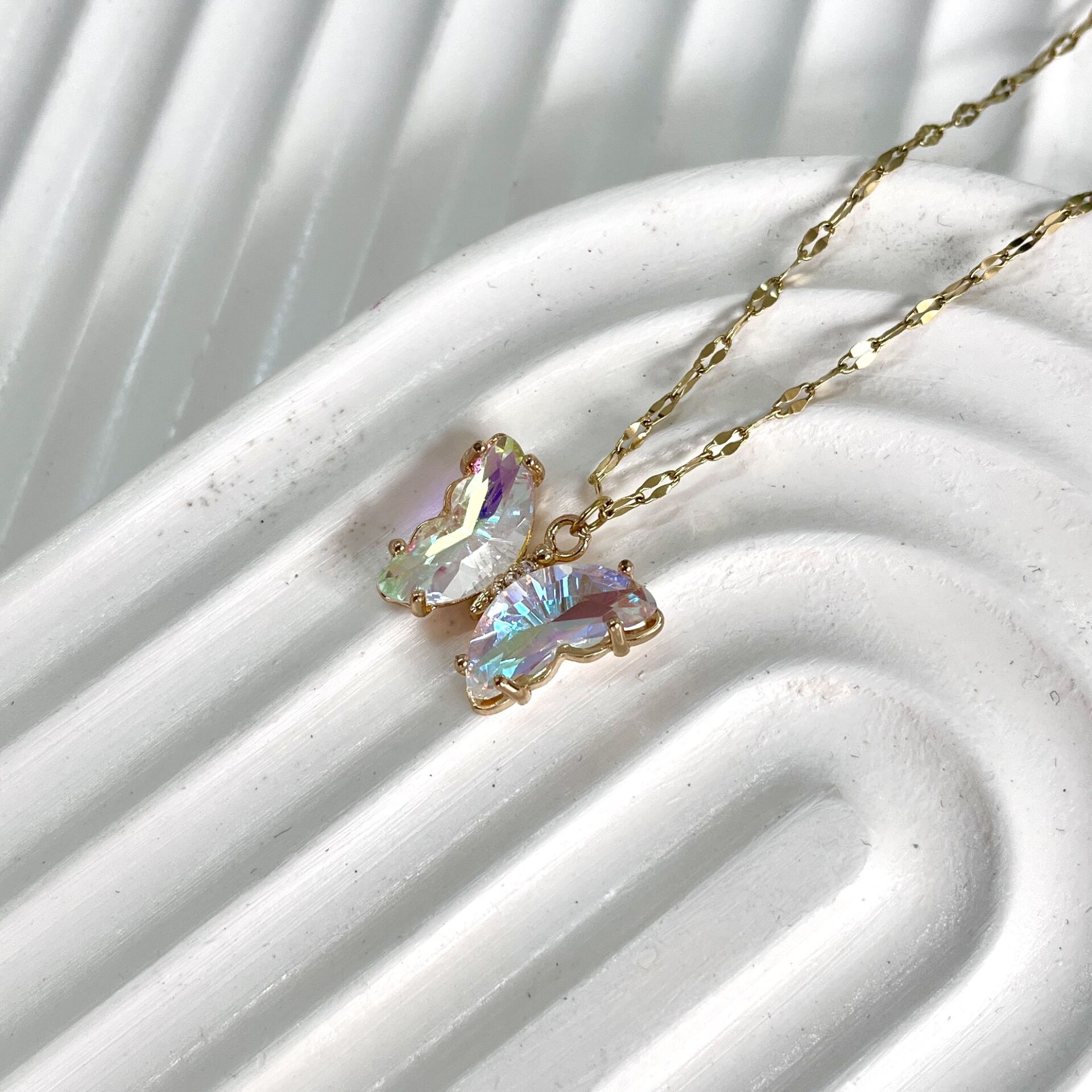 Çelik Kristal Kelebek Kolye