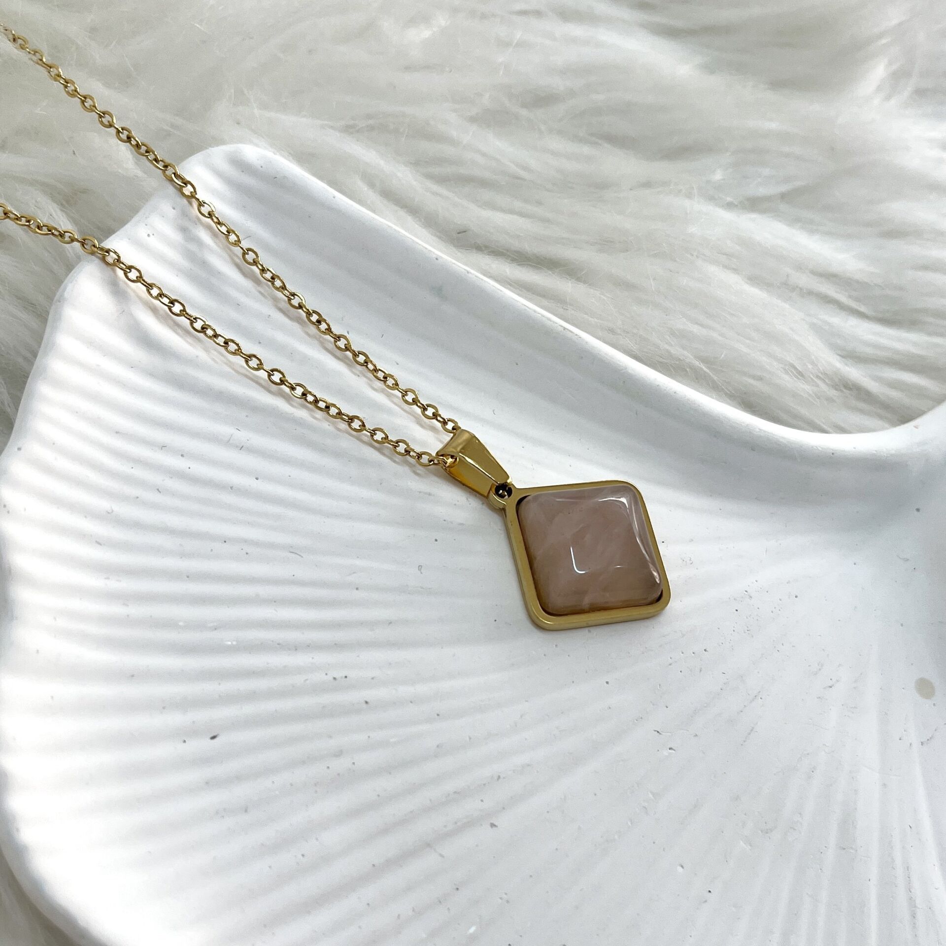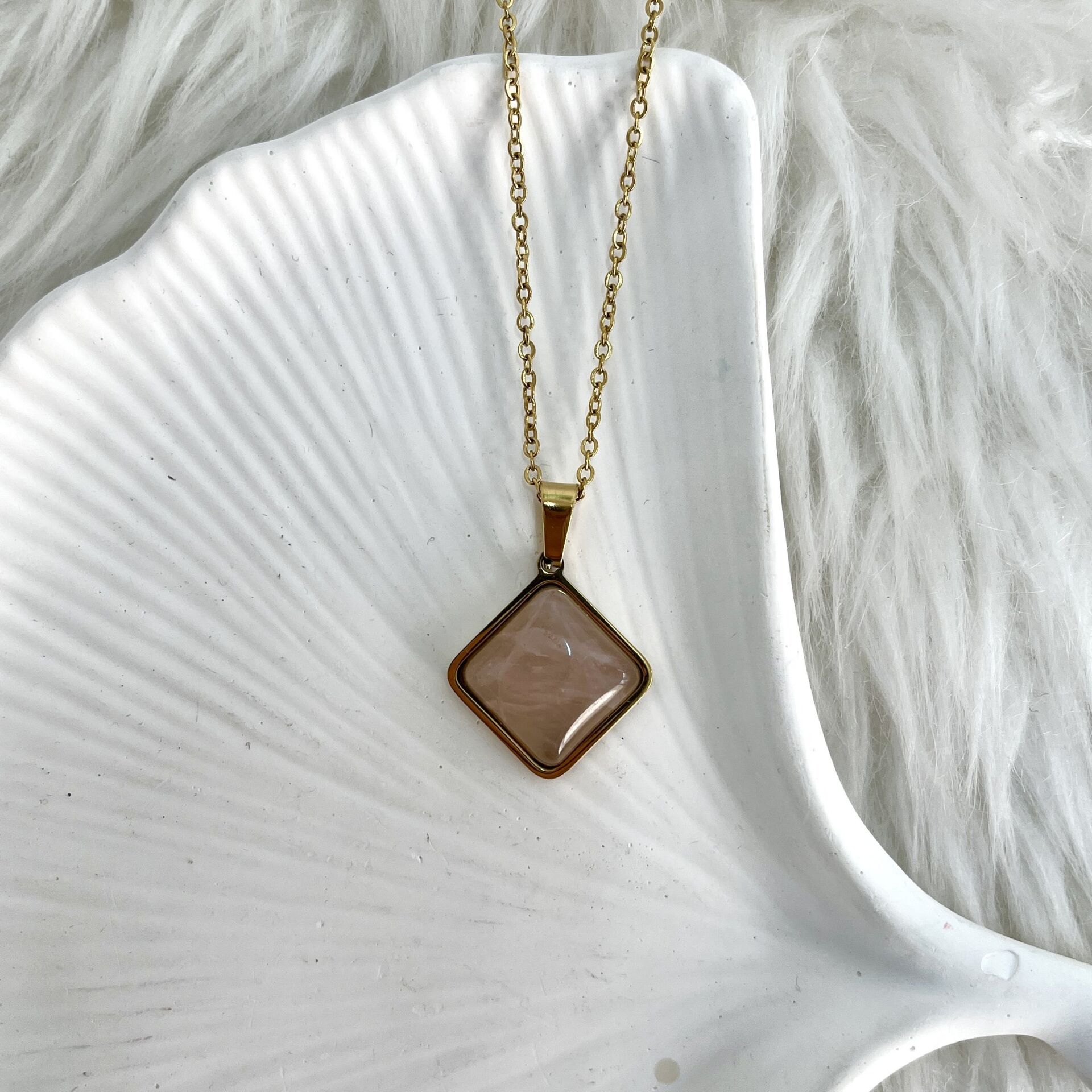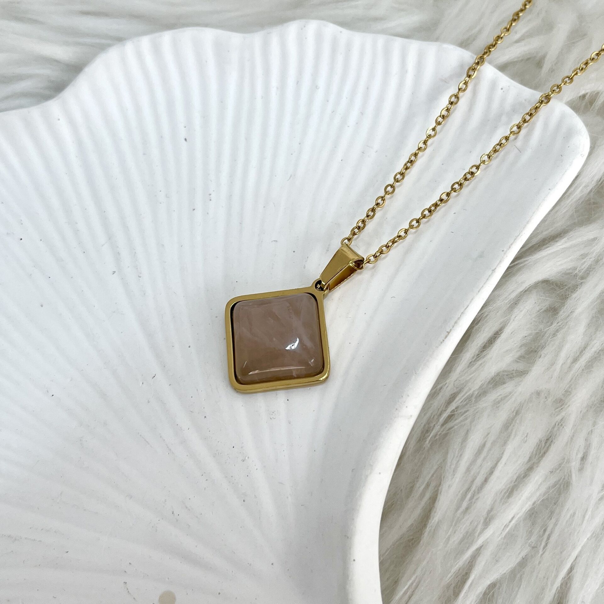 Çelik Kuvars Taşı Kolye