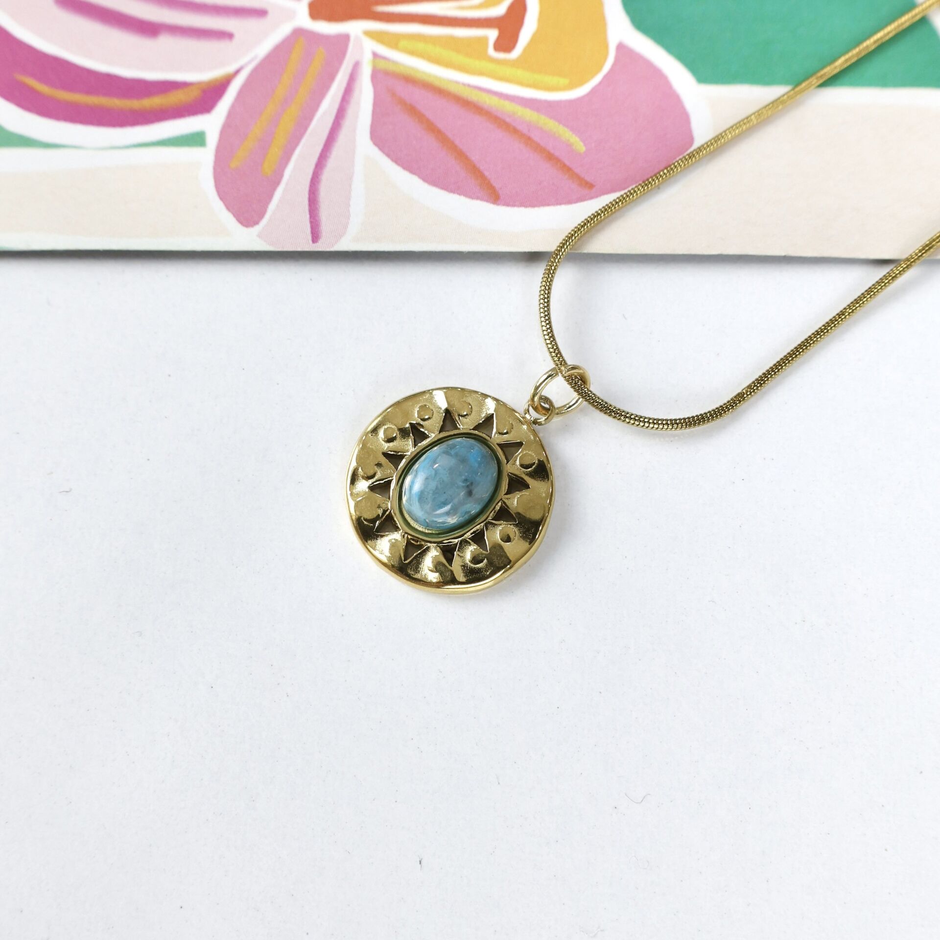 Çelik Larimar Taşı Kolye
