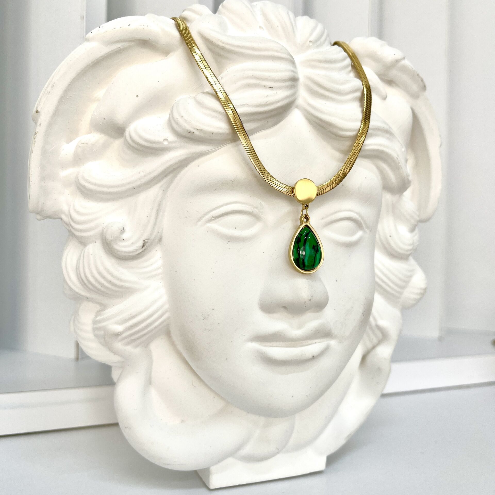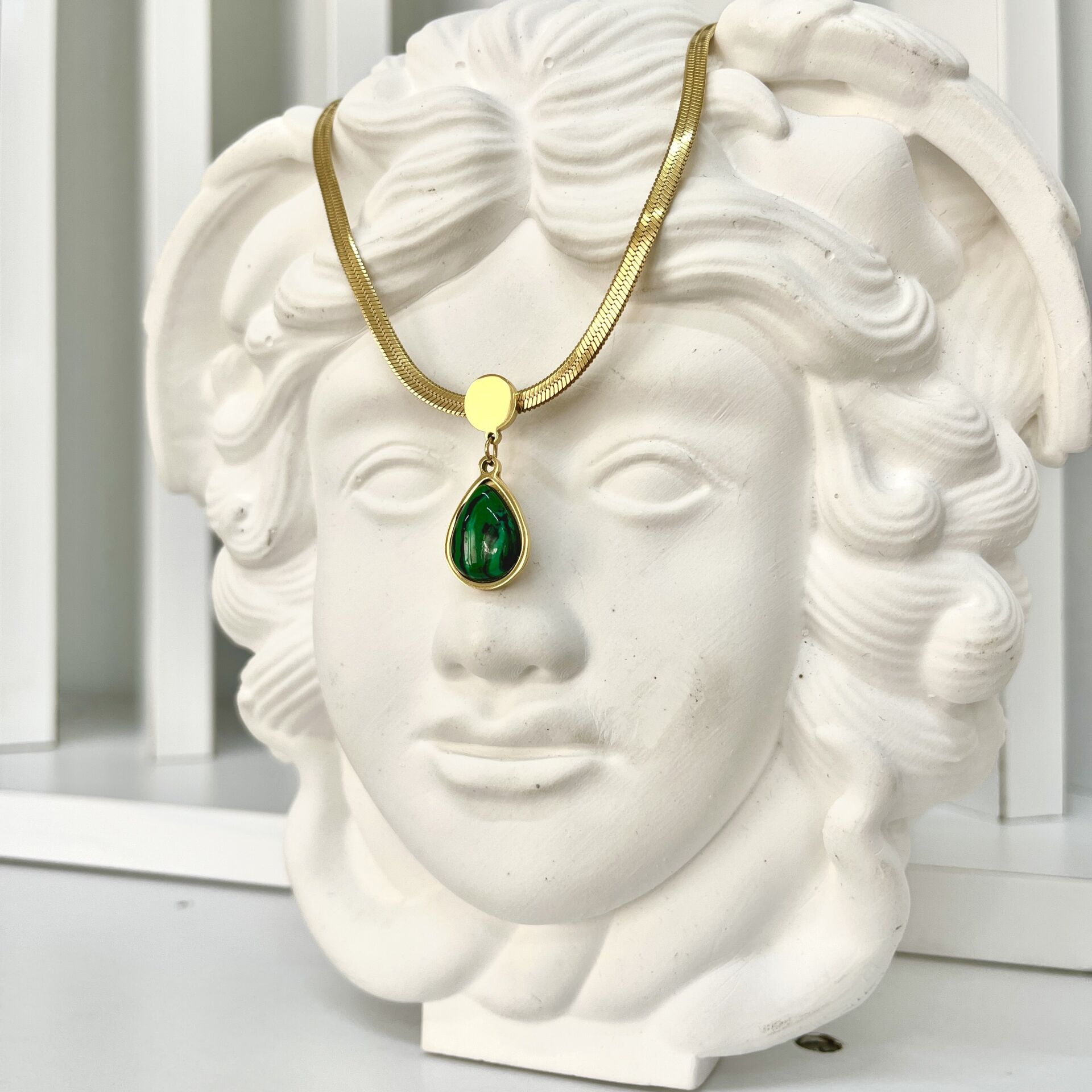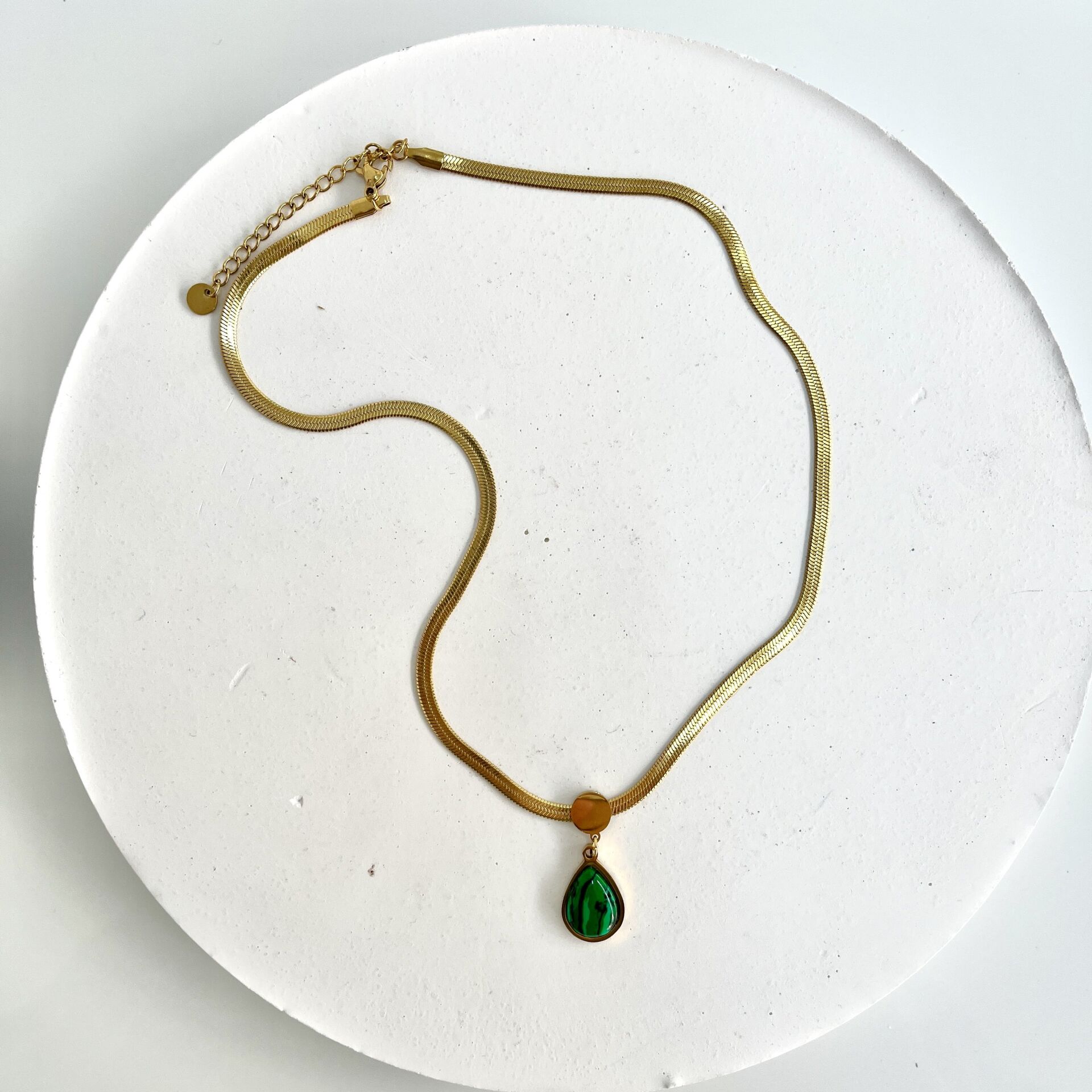 Çelik Malahit Taşı Damla Kolye