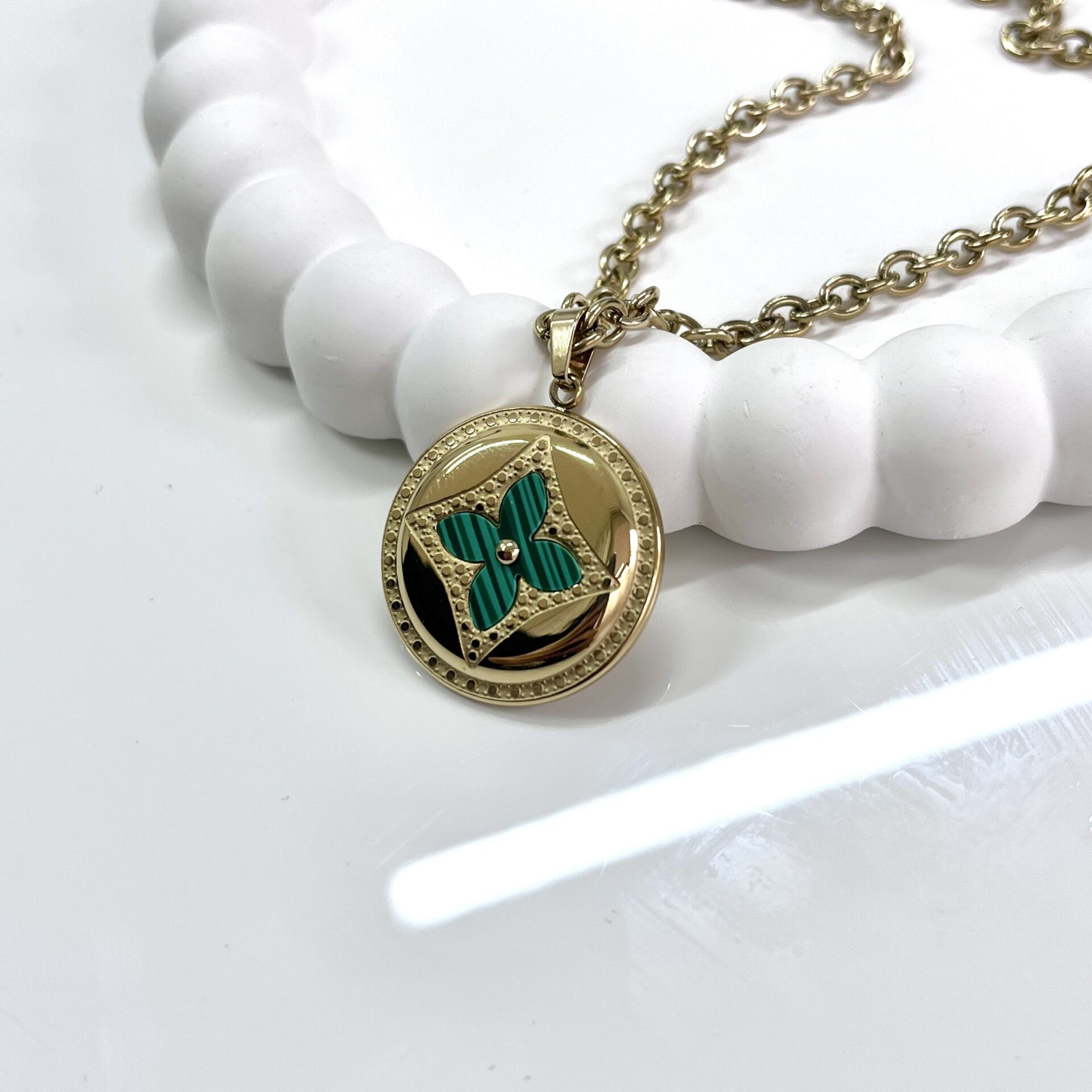 Çelik Malahit Taşı Kolye
