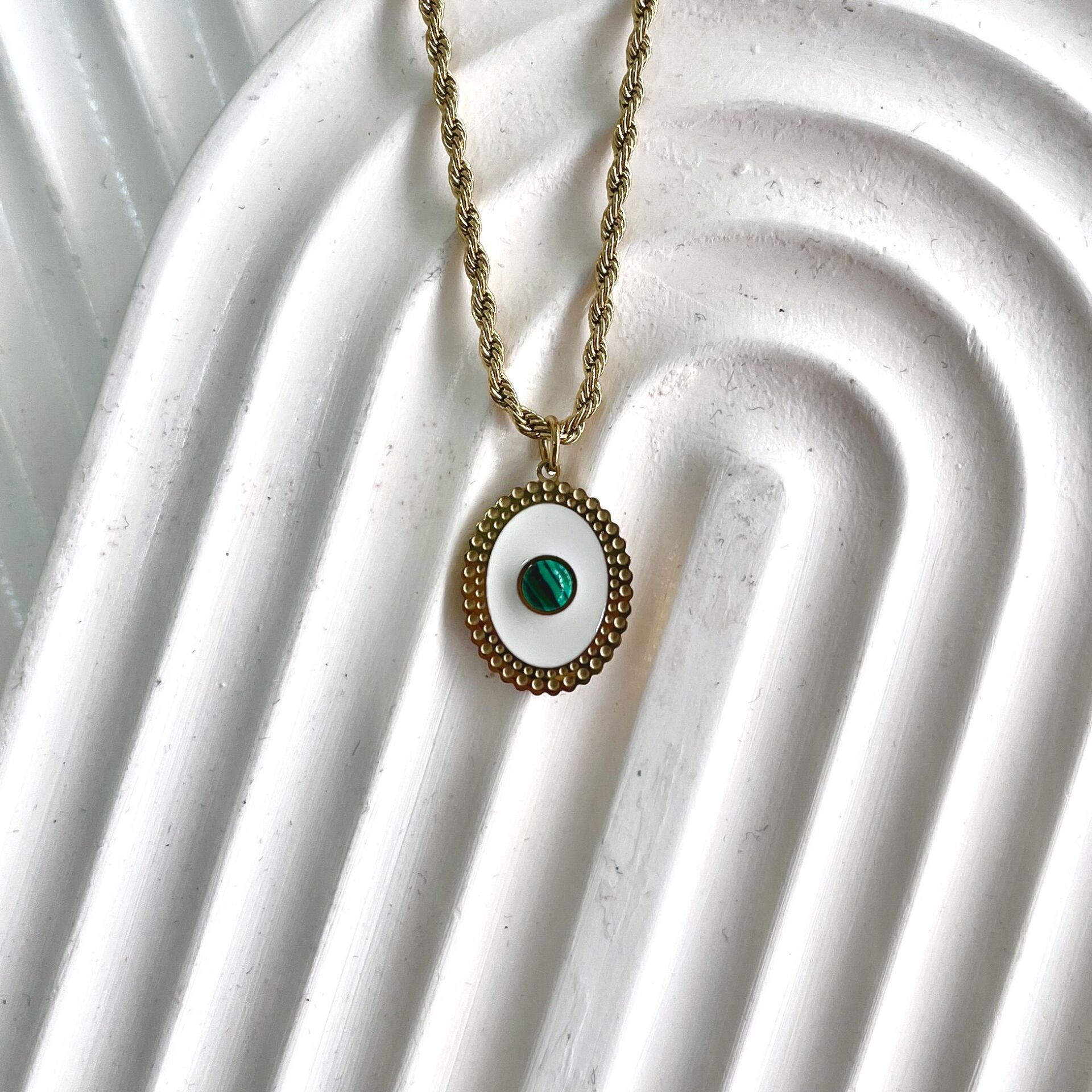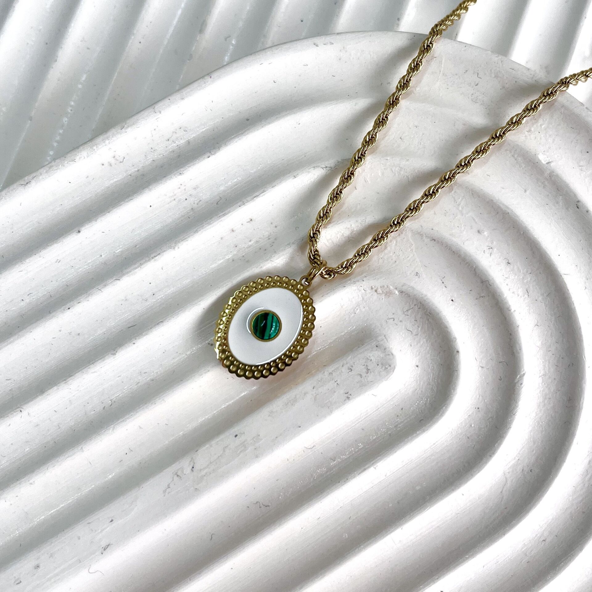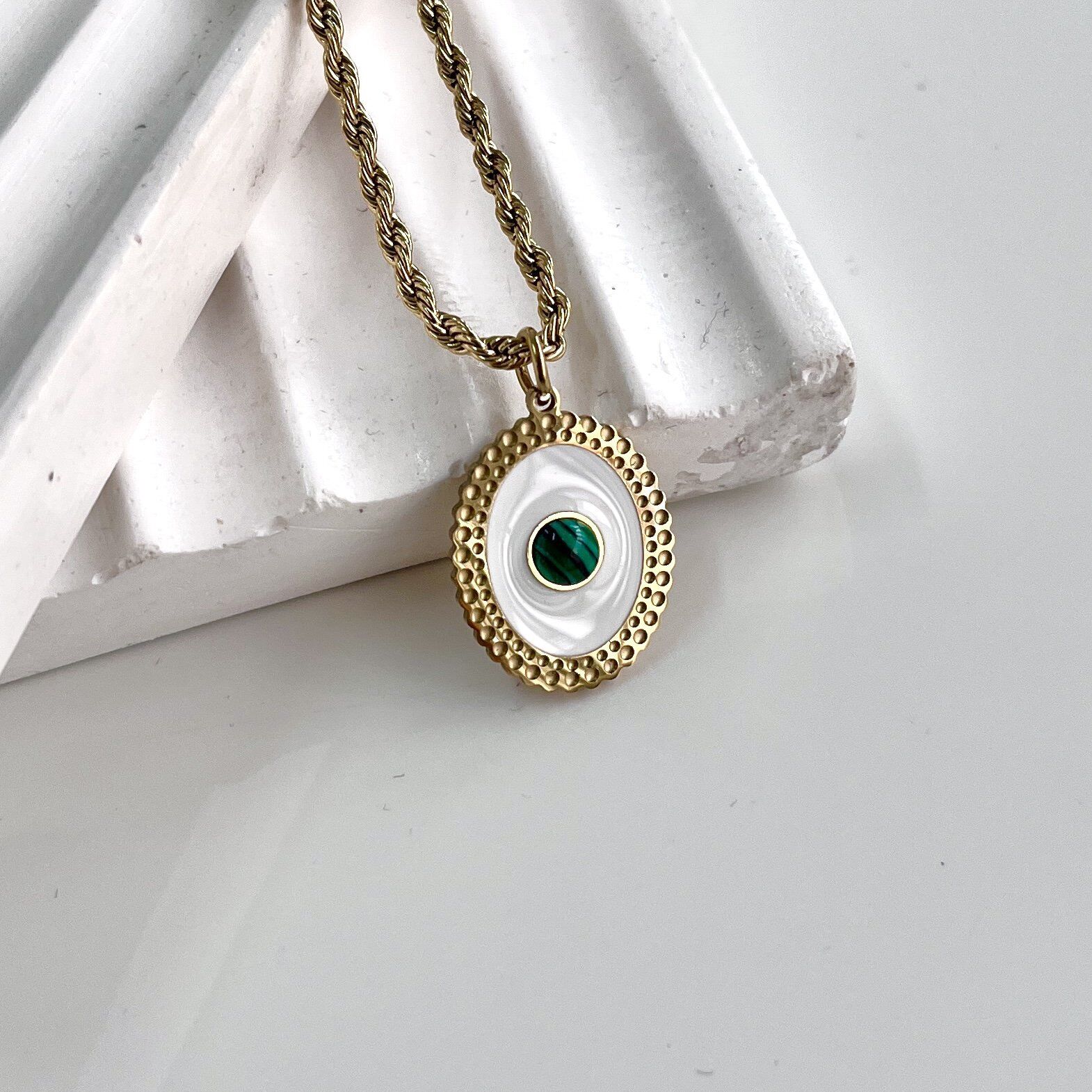 Çelik Malahit Taşı Kolye