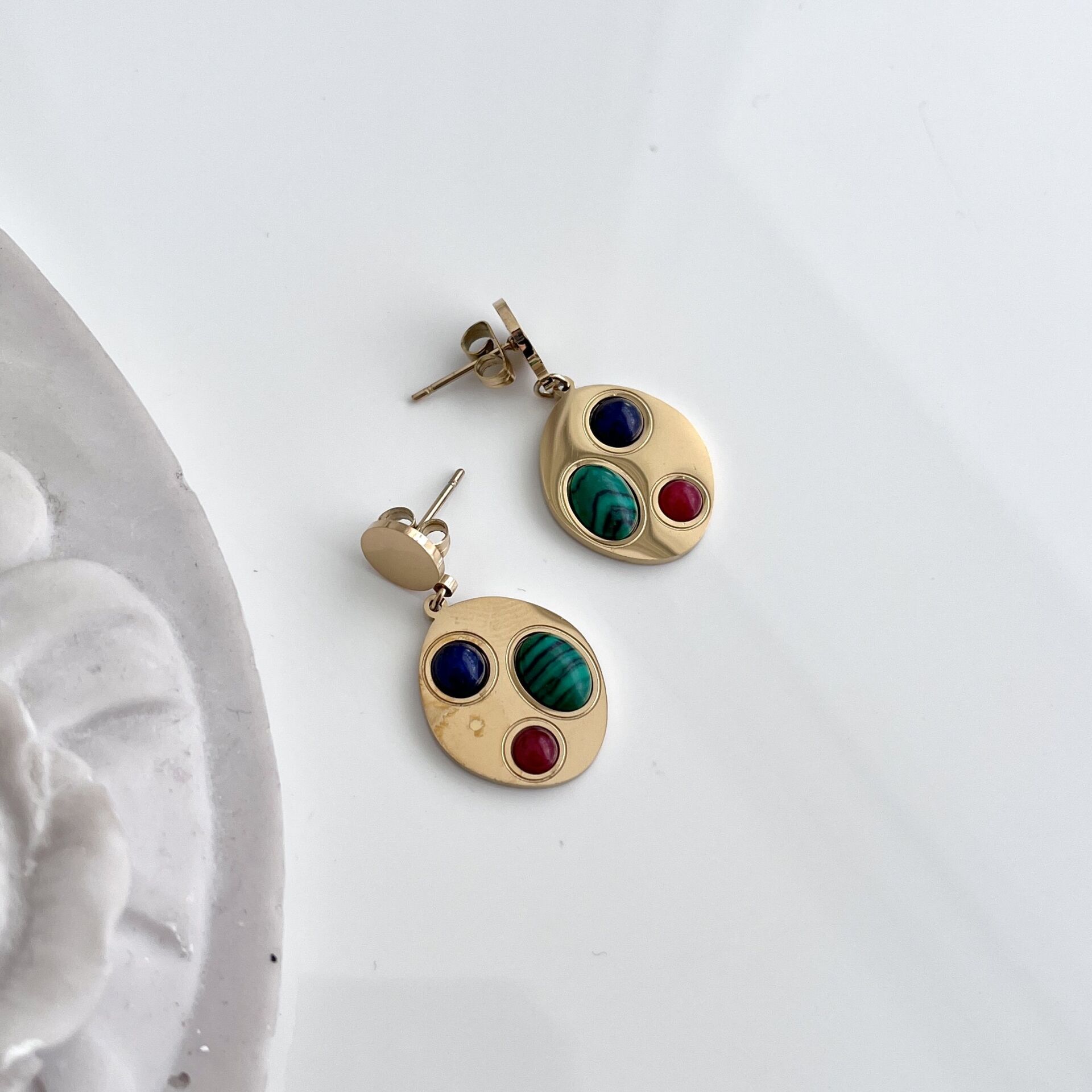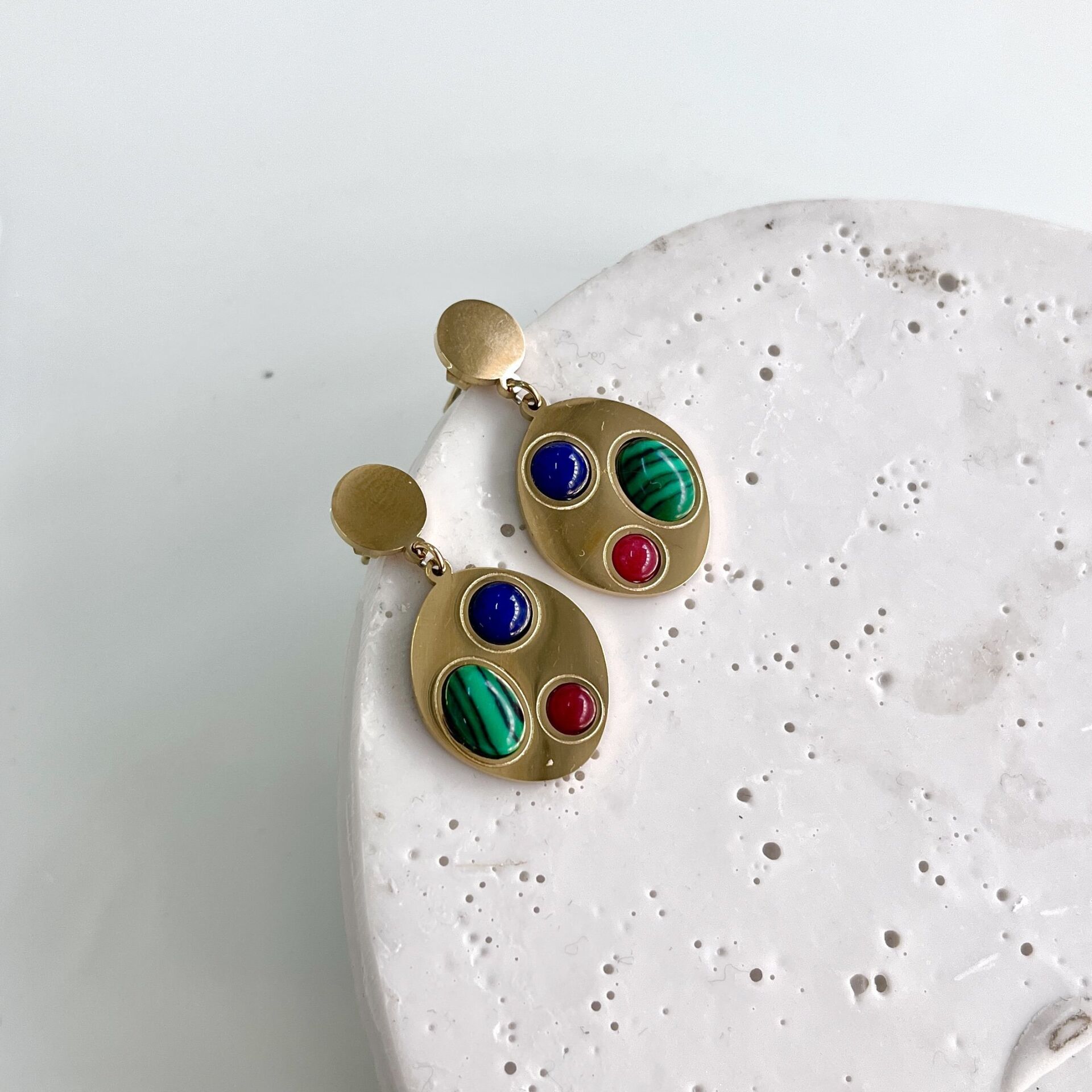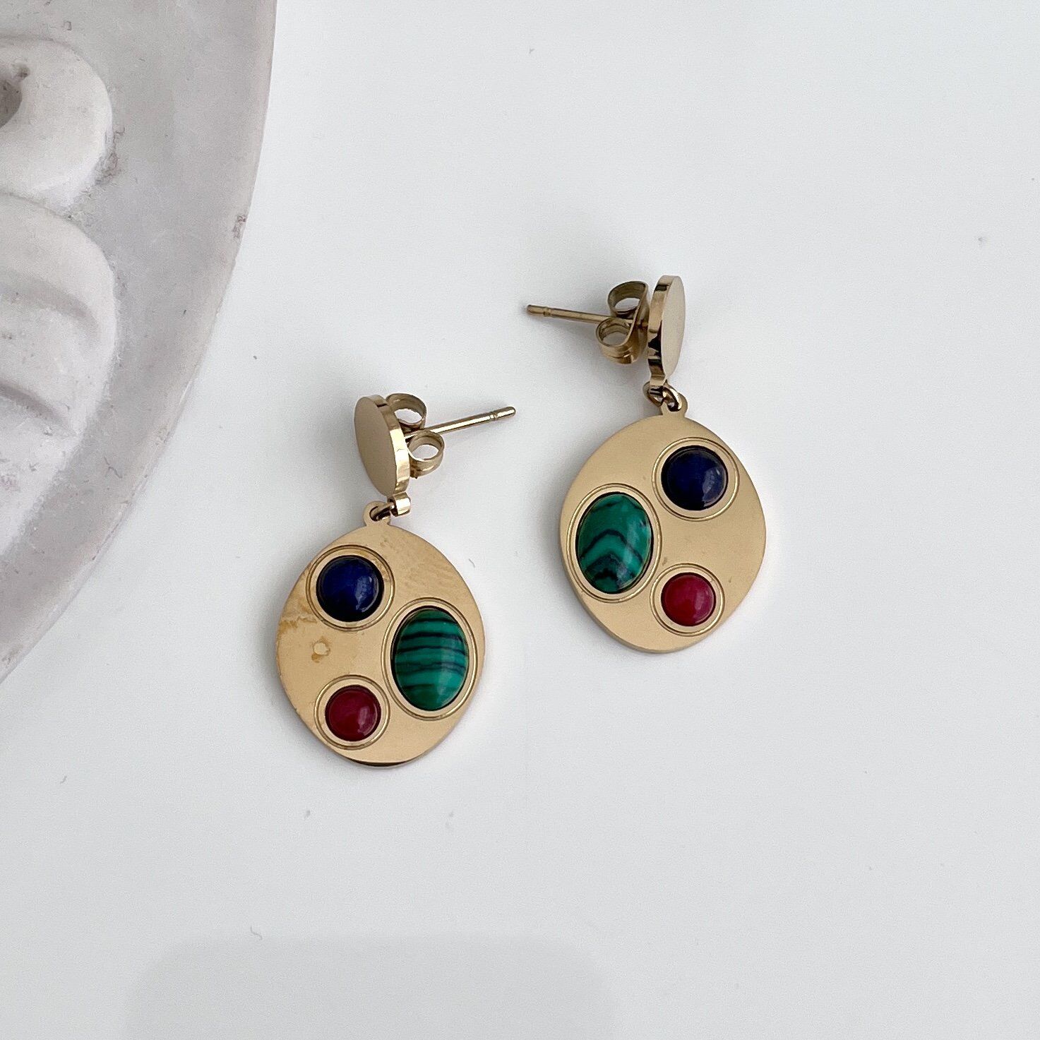 Çelik Malahit Taşı Küpe