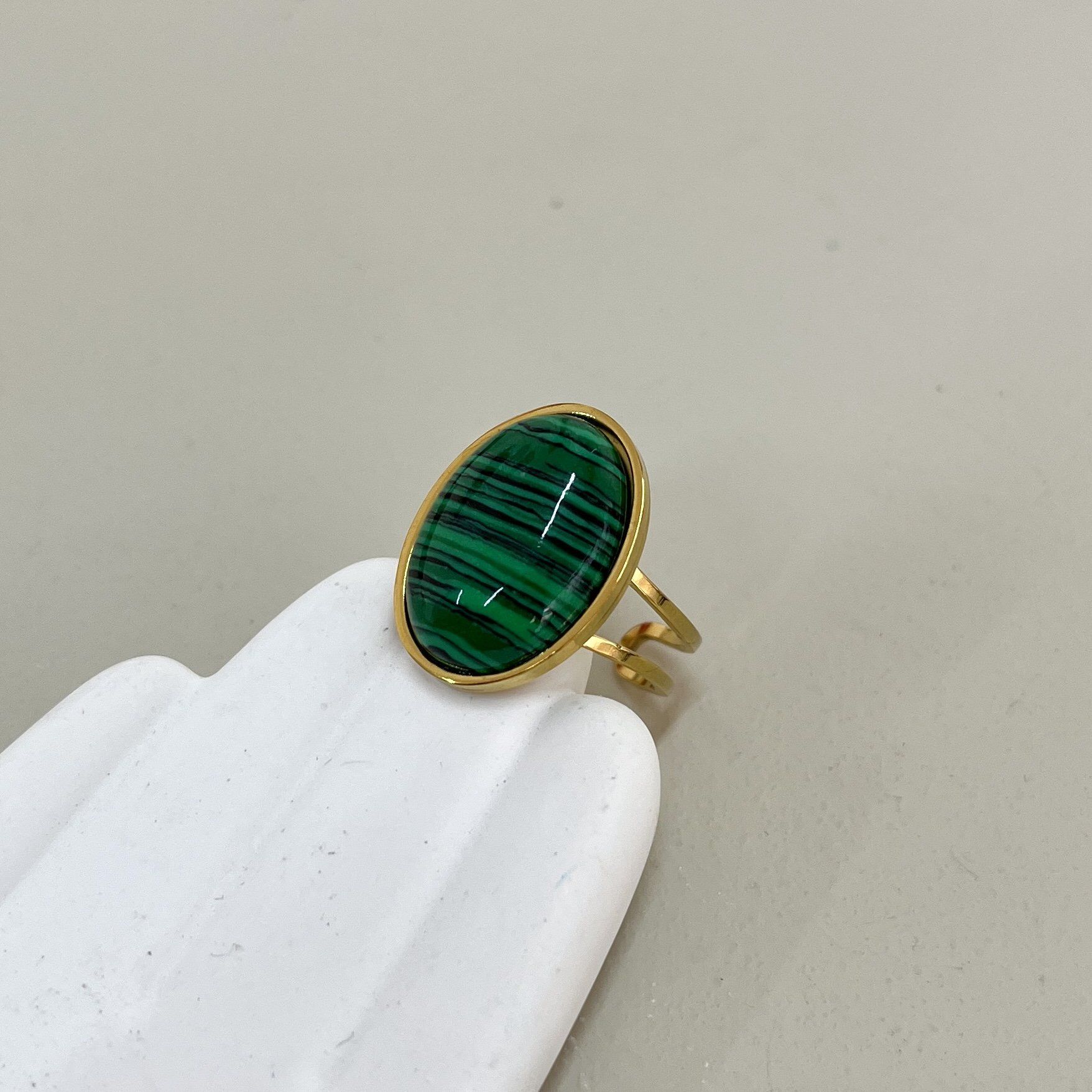 Çelik Malahit Taşı Yüzük HURD6LJW7Z Çelik Malahit Taşı Yüzük