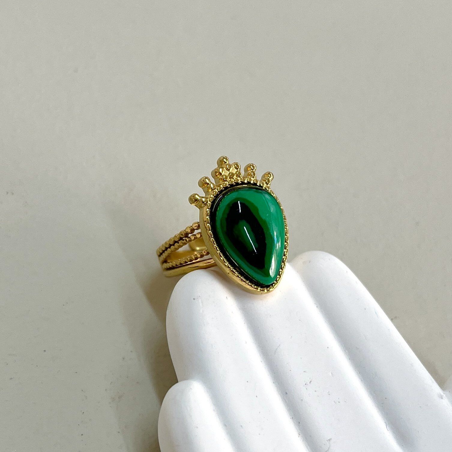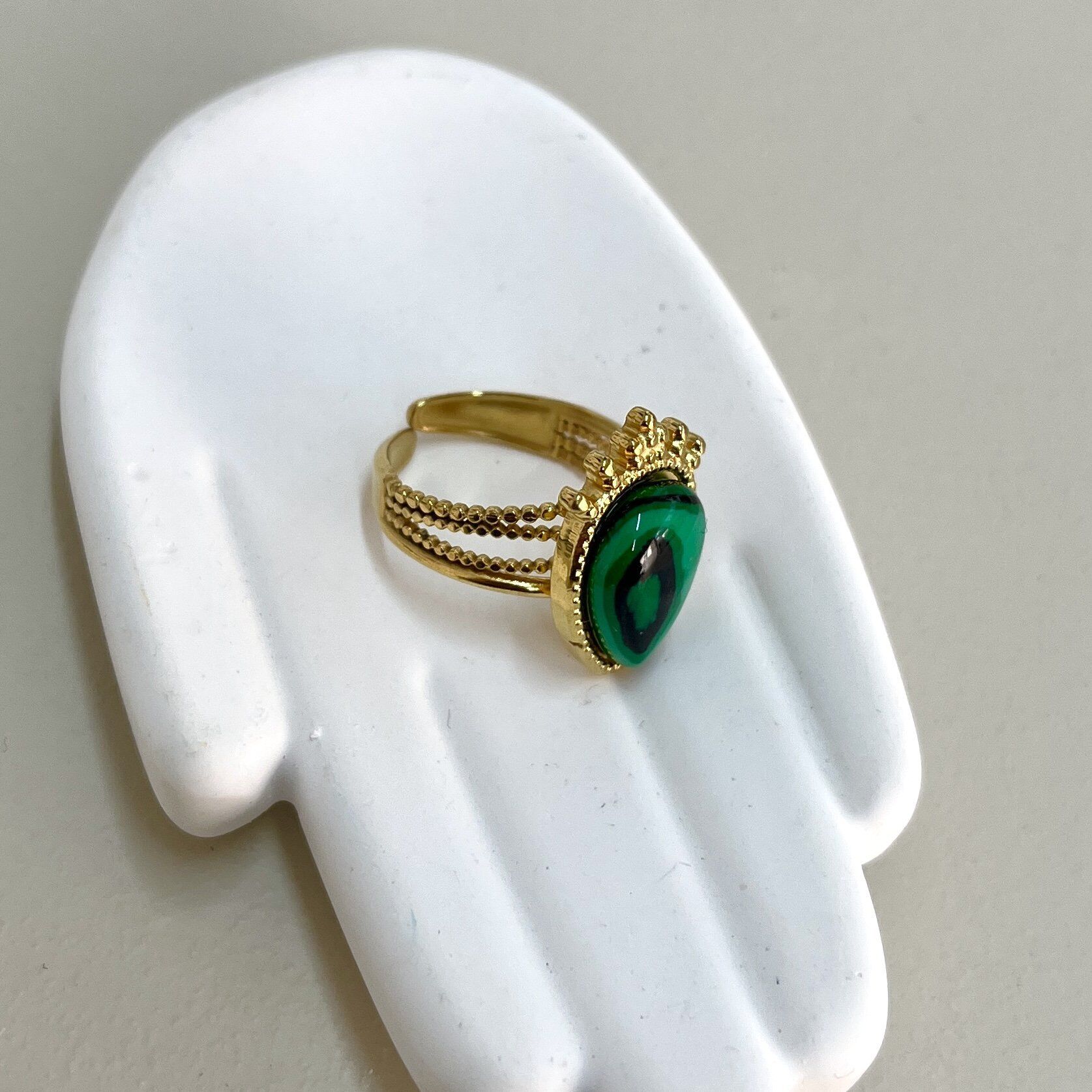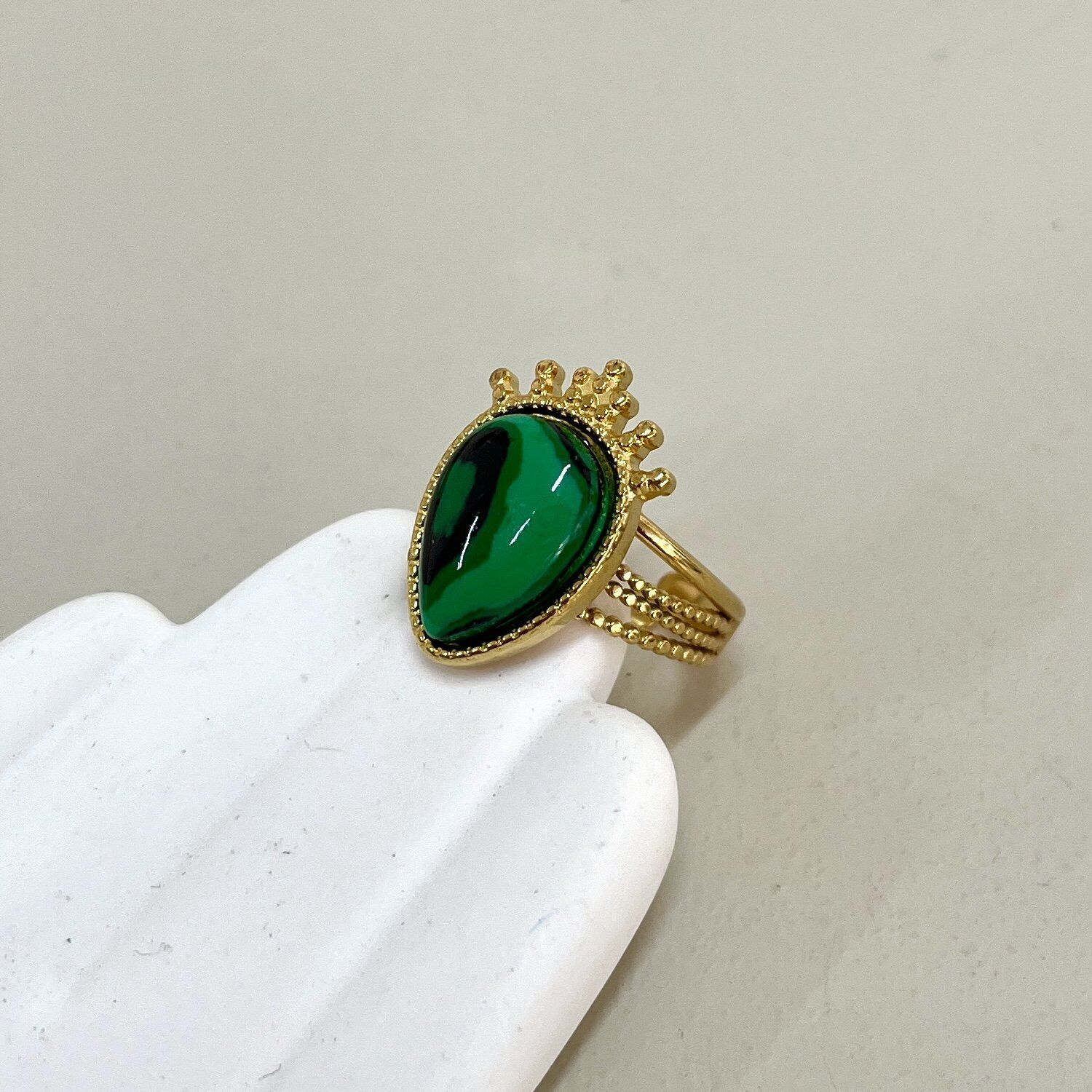 Çelik Malahit Taşı Yüzük