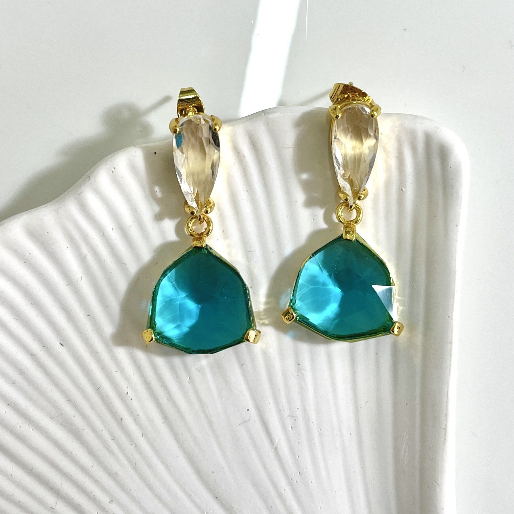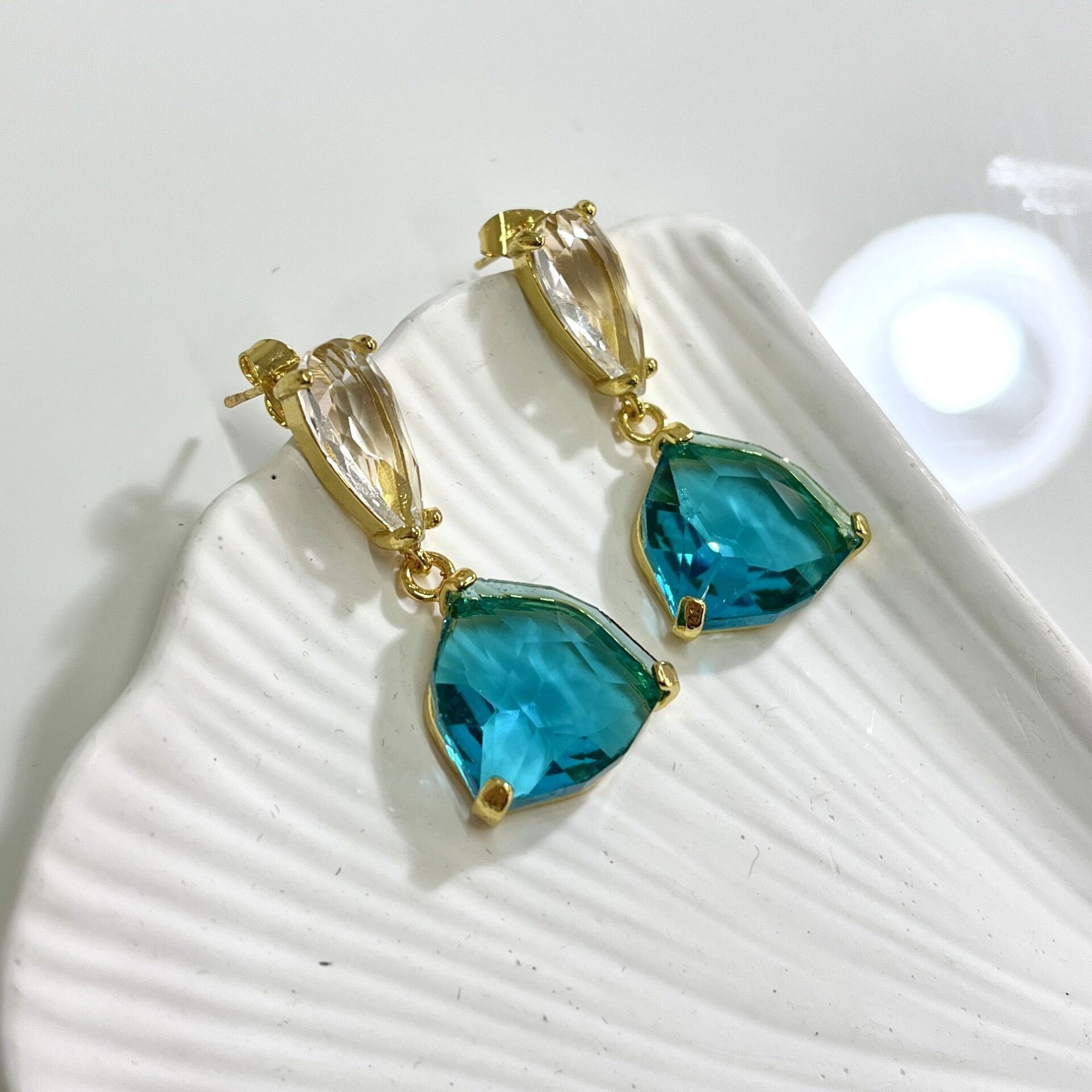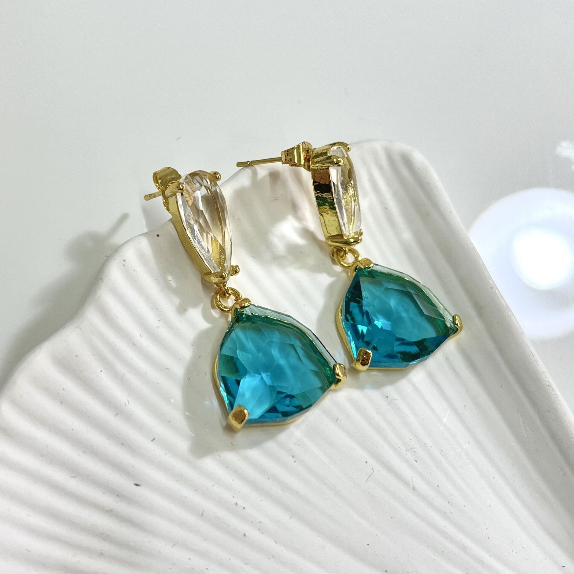 316L kalite kararmaya dayanıklı çelik kristal taşlı küpe.
