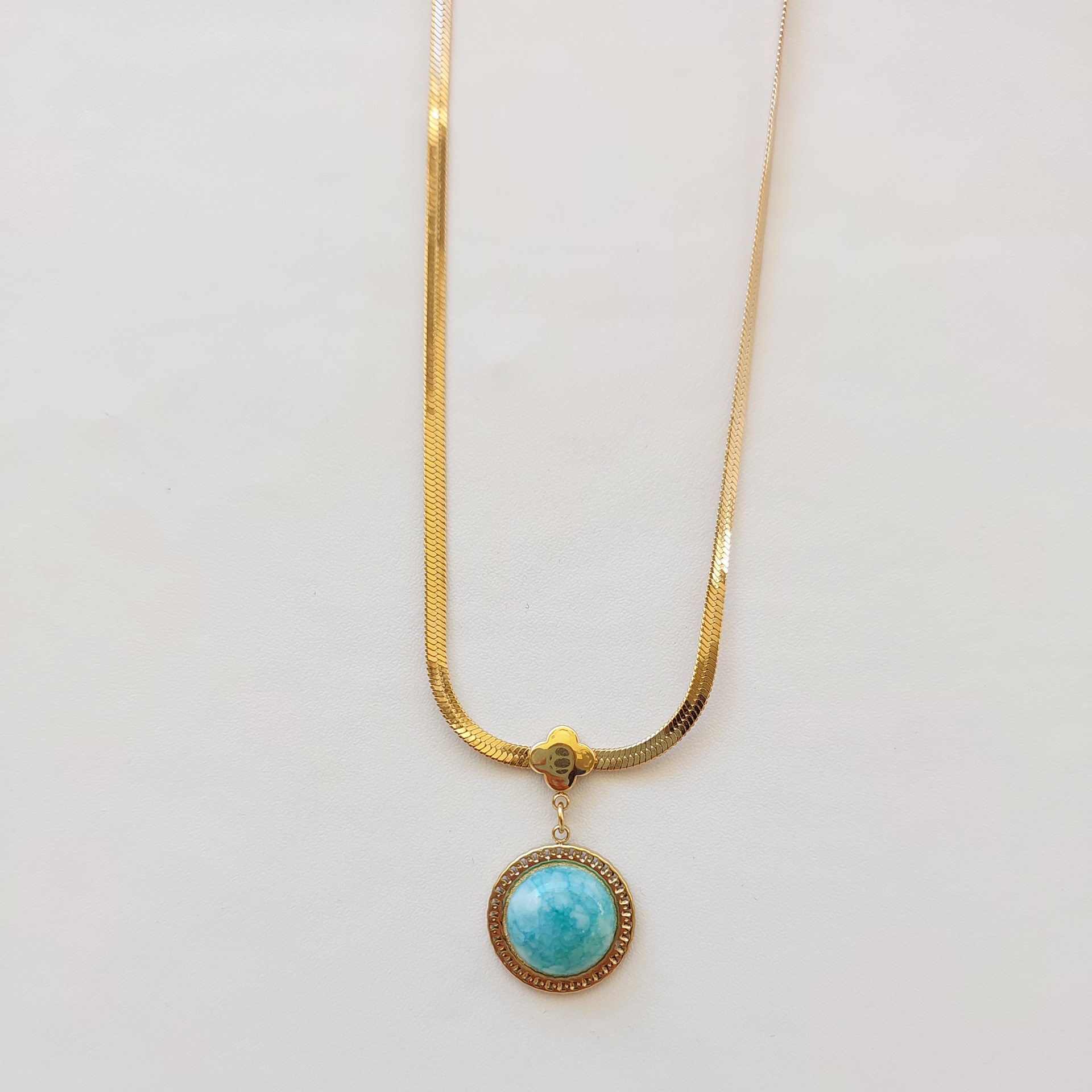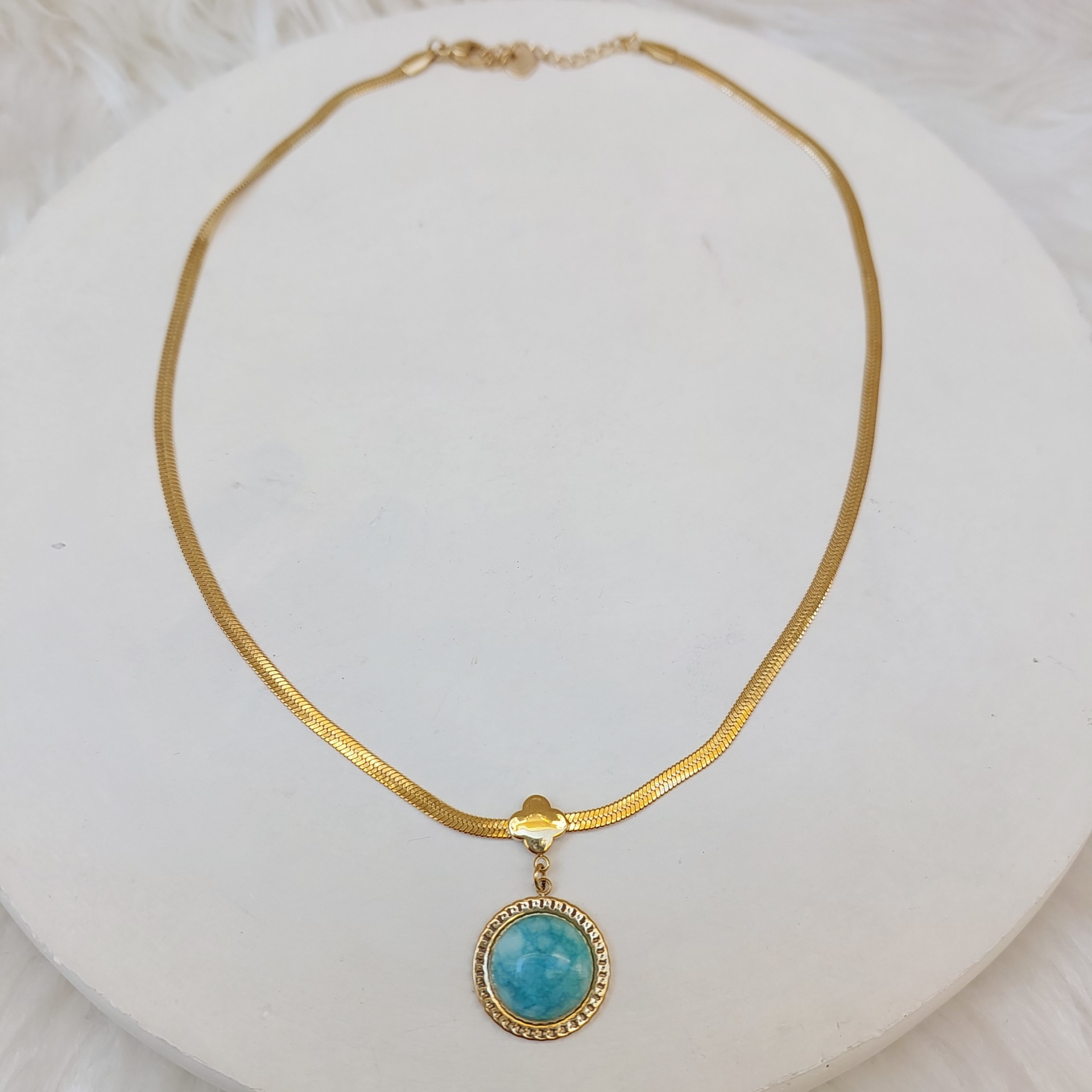 Çelik Mavi Taşlı Kolye
