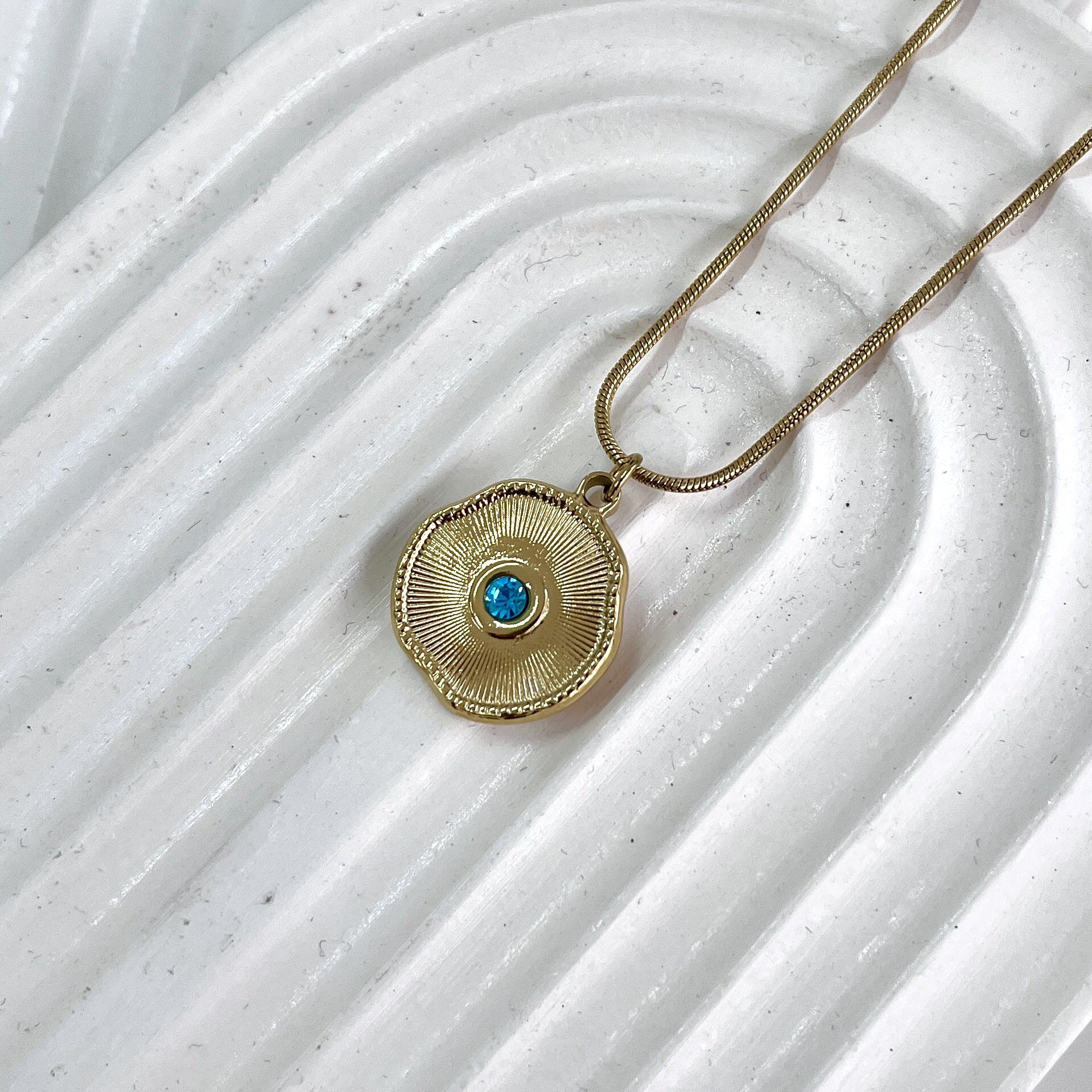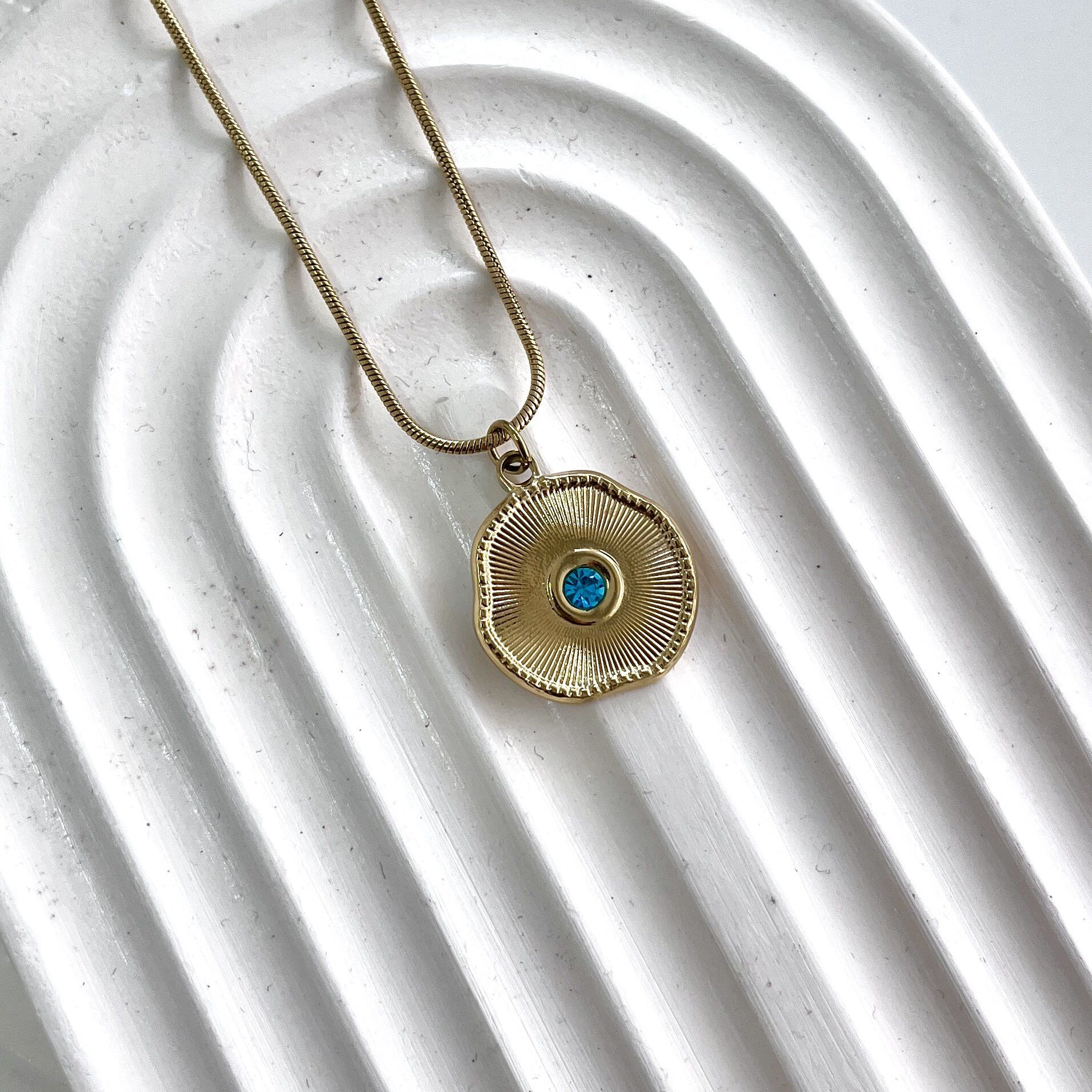Çelik Mavi Taşlı Kolye