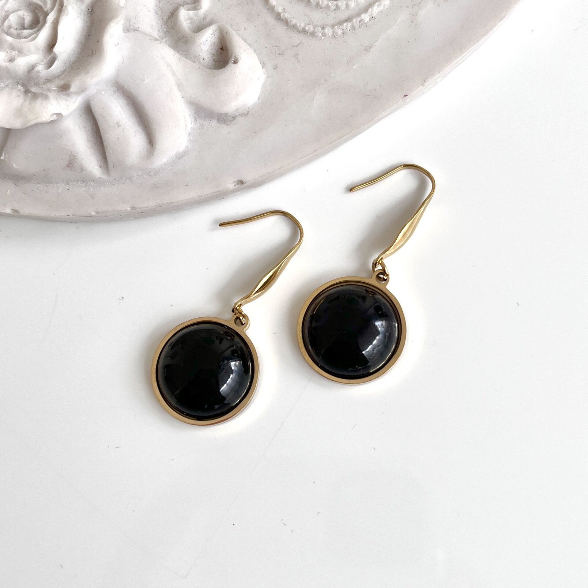 Doğal siyah Oniks taşı kullanılmıştır.