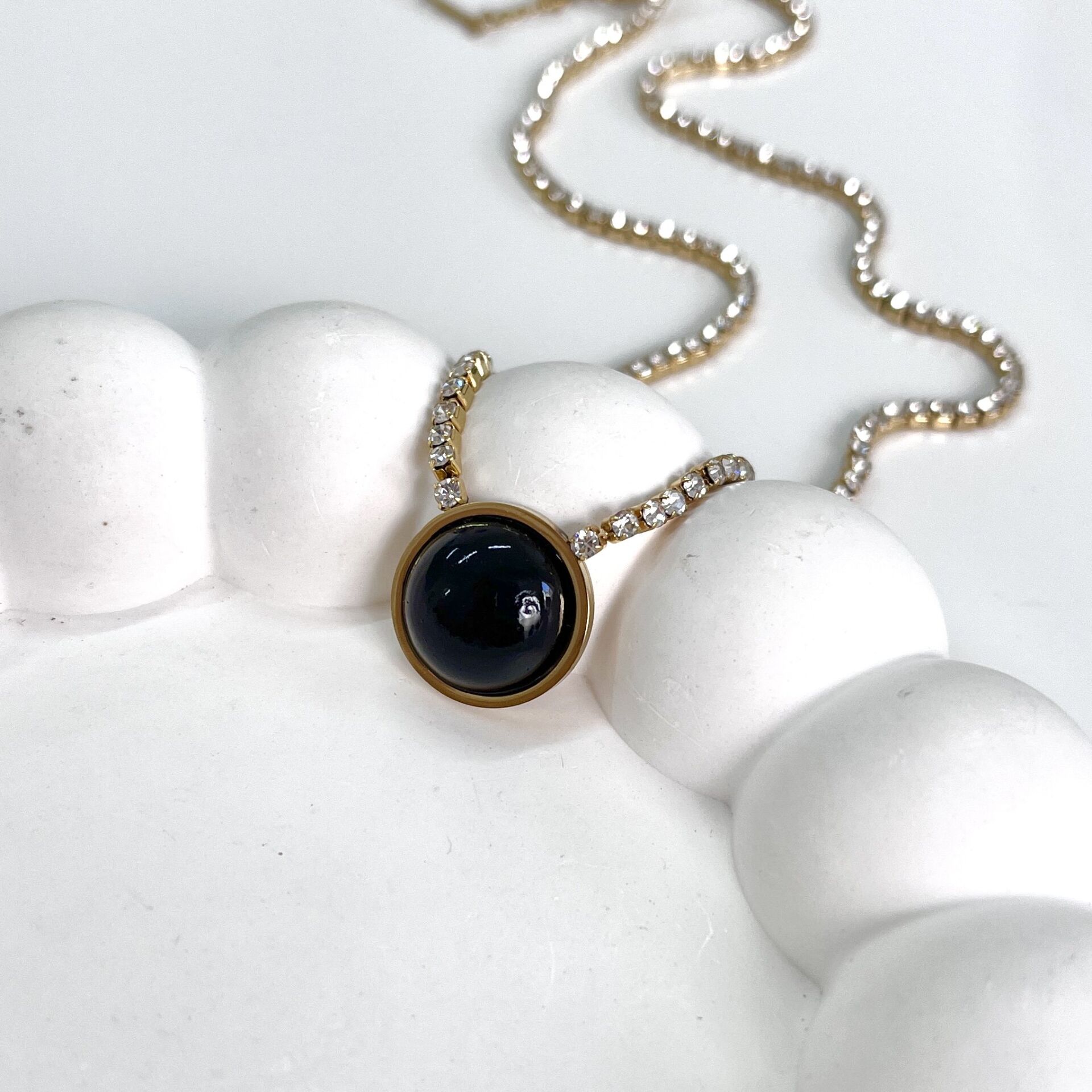 Çelik Oniks Taşı Su Yolu Kolye