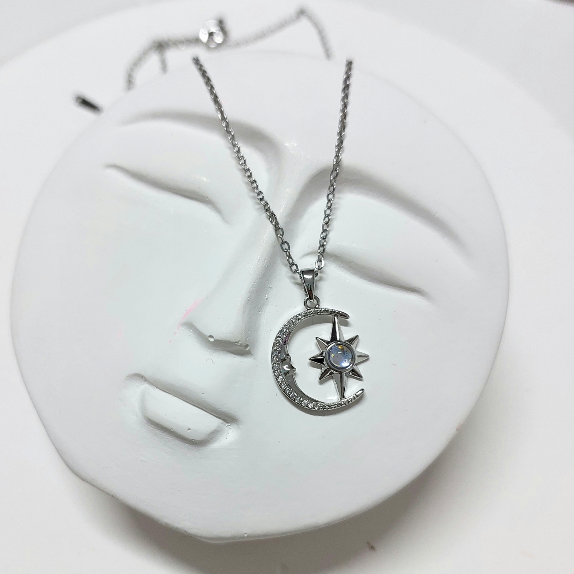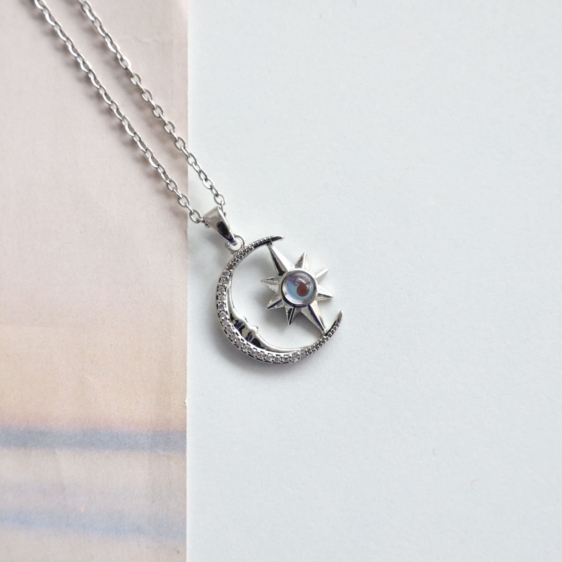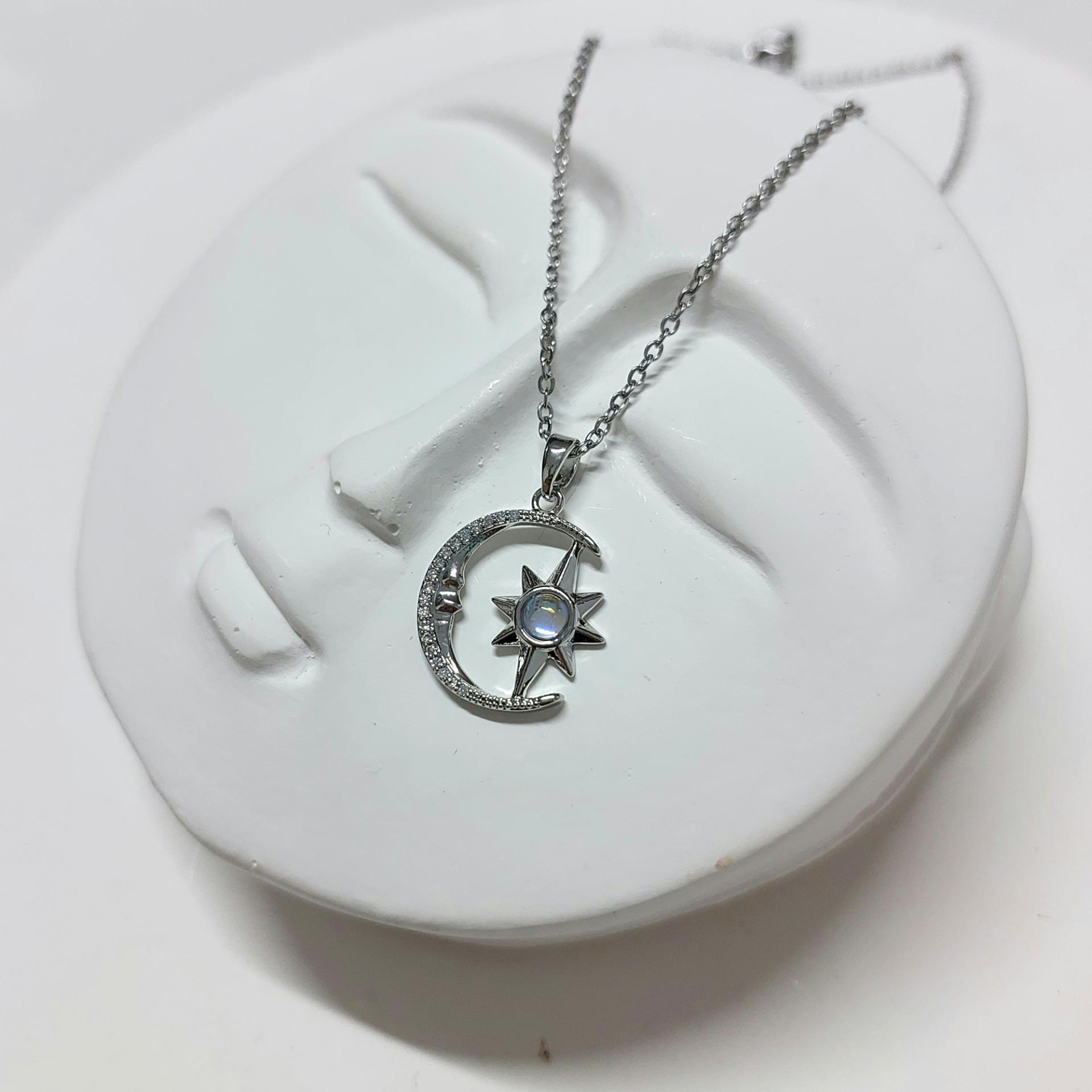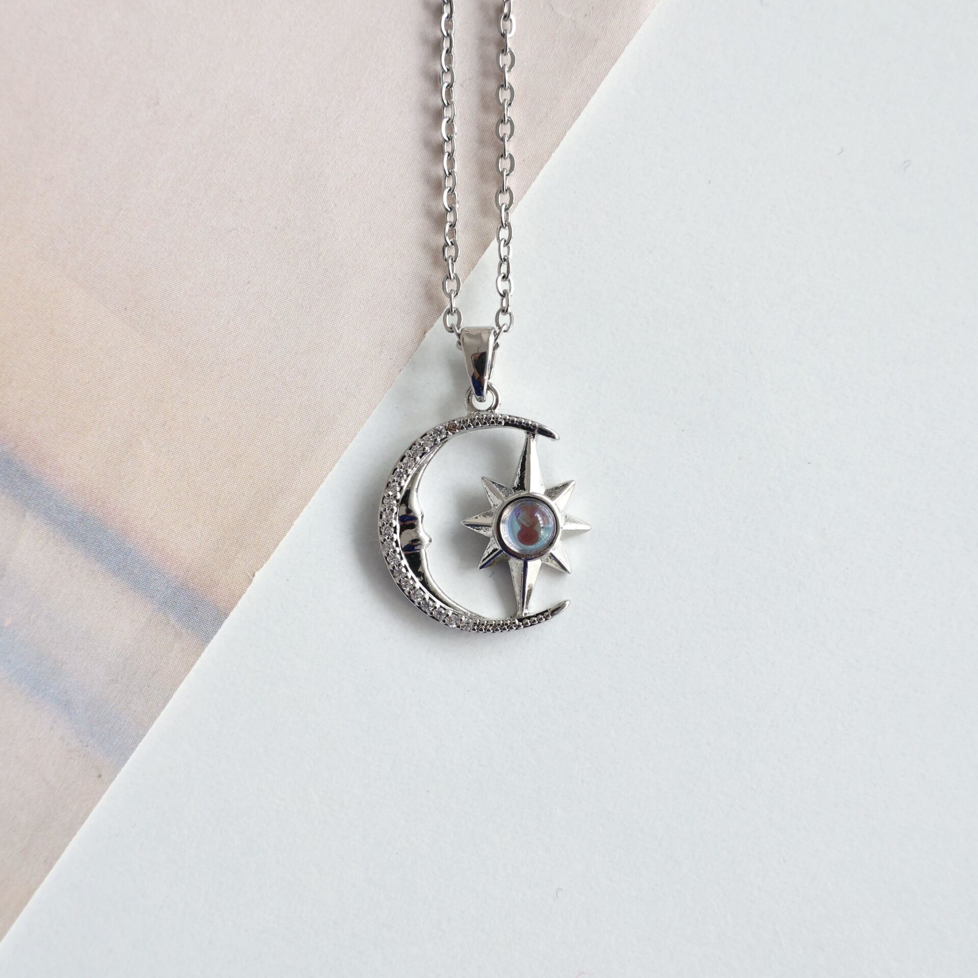 Çelik Opal Taşı Ay & Yıldız Kolye