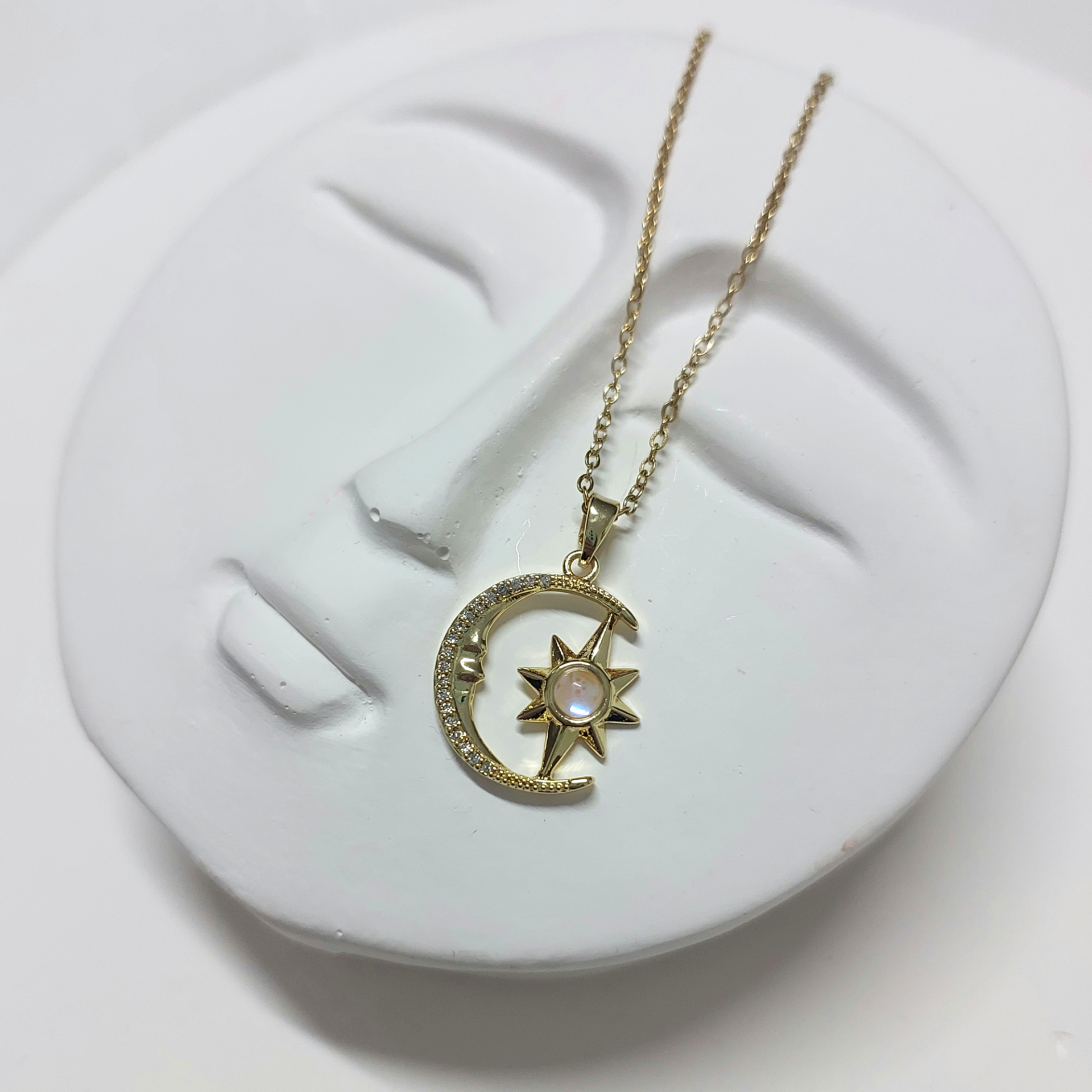 Çelik Opal Taşı Ay & Yıldız Kolye