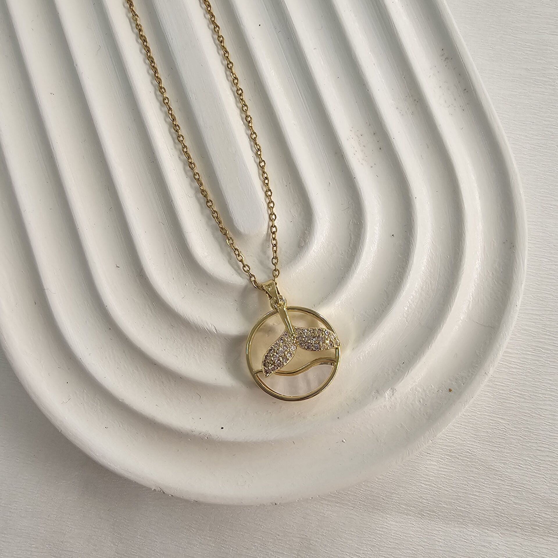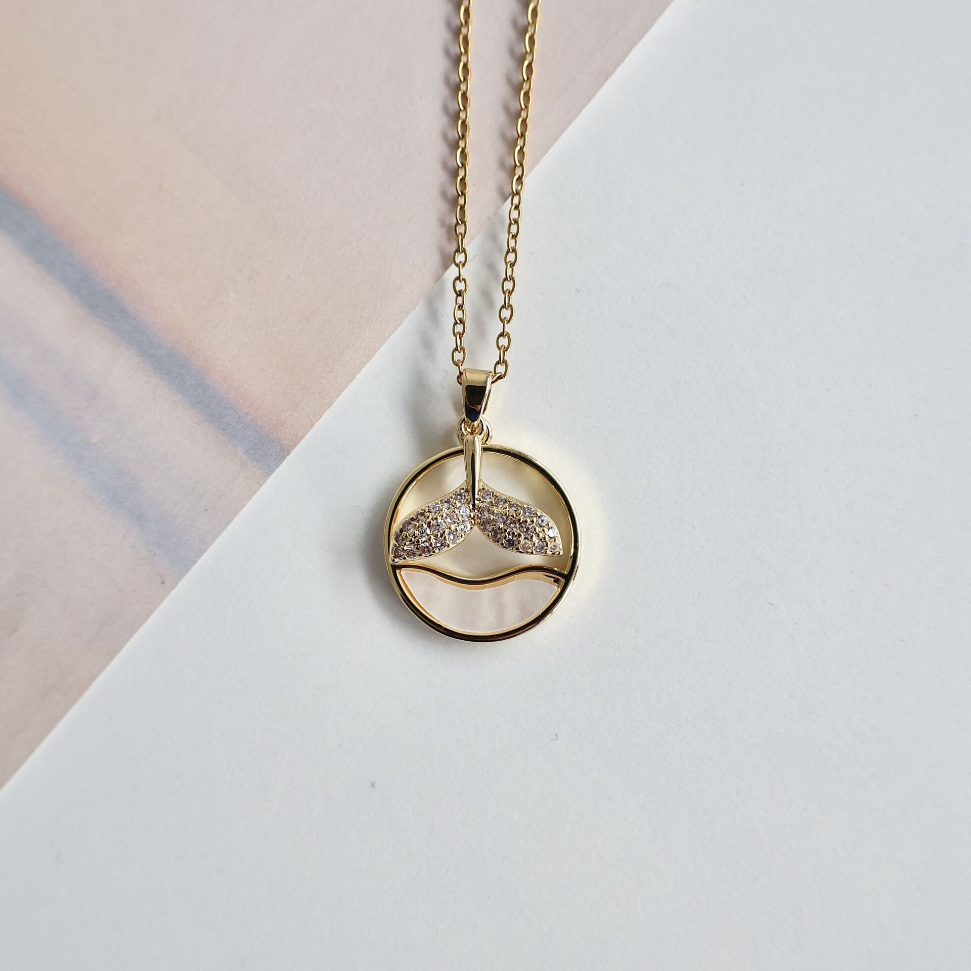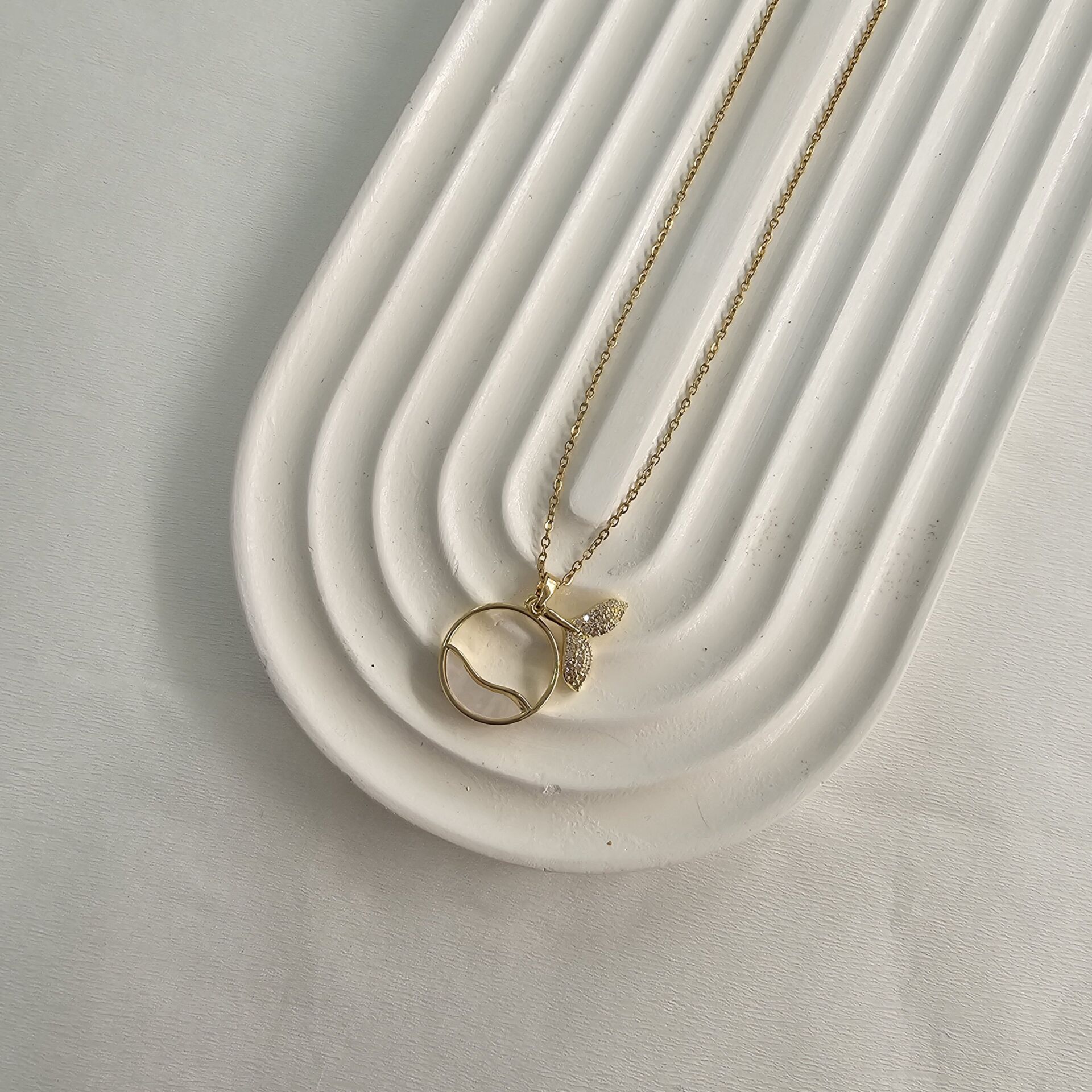 Çelik Orka Kolye Beyaz Sedefli Gold