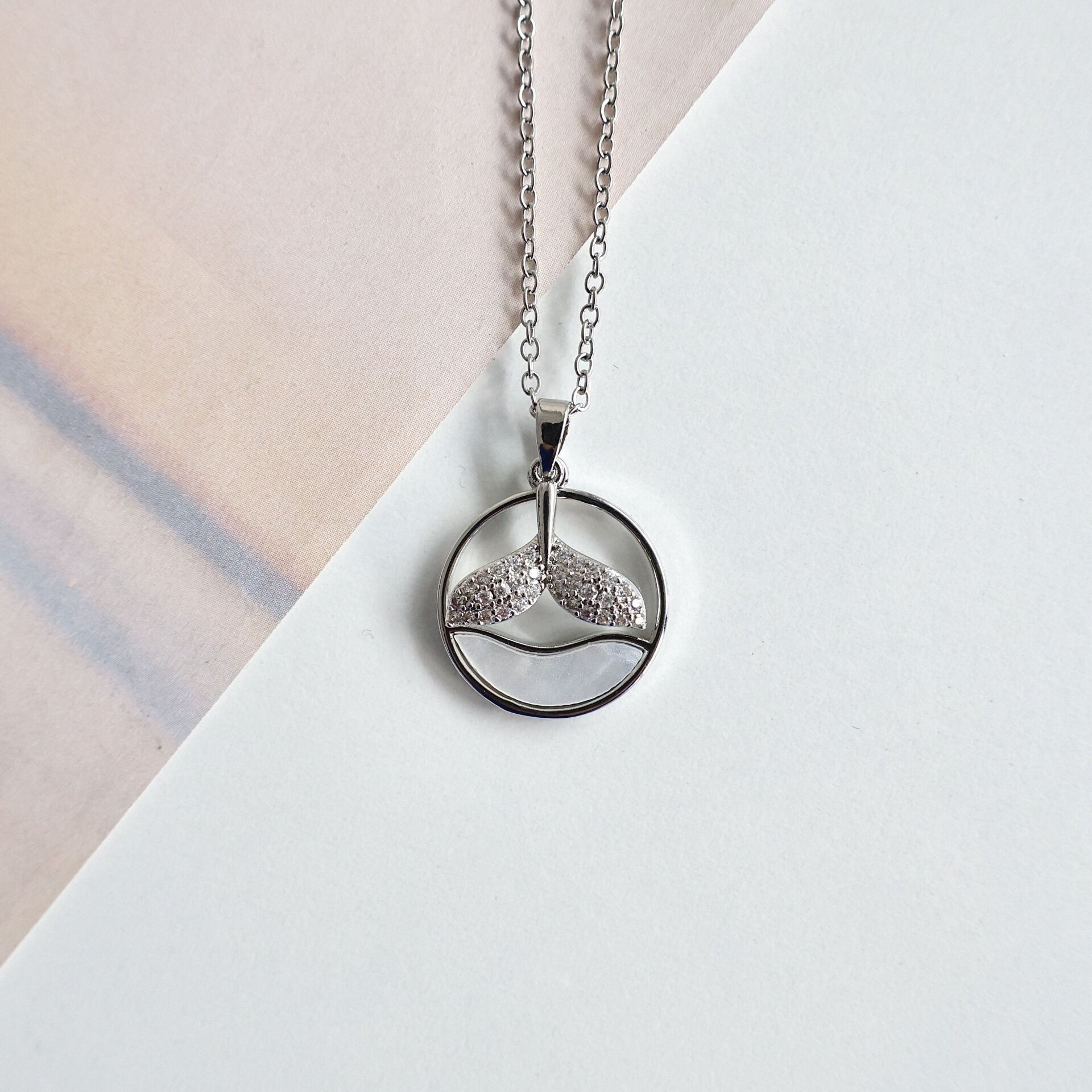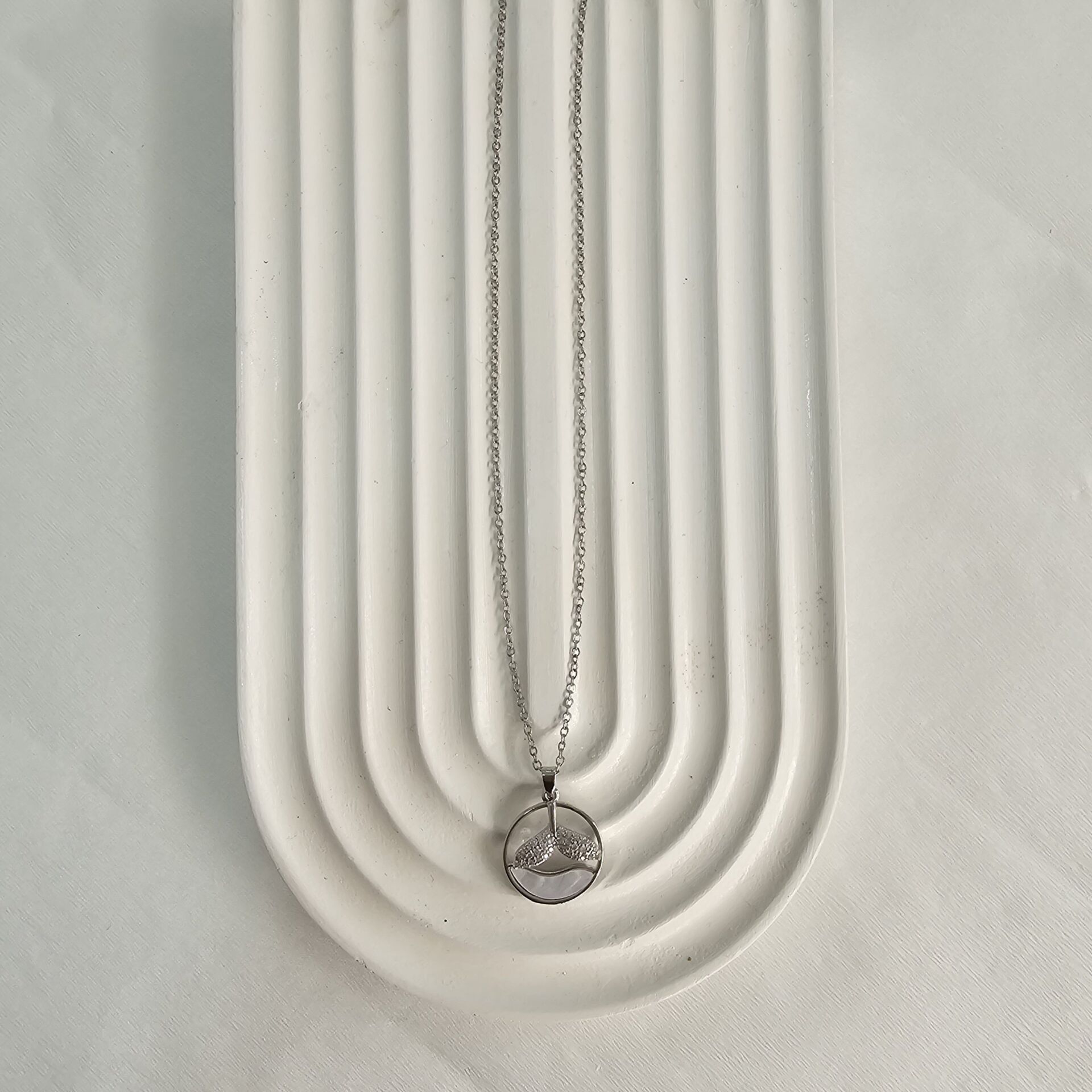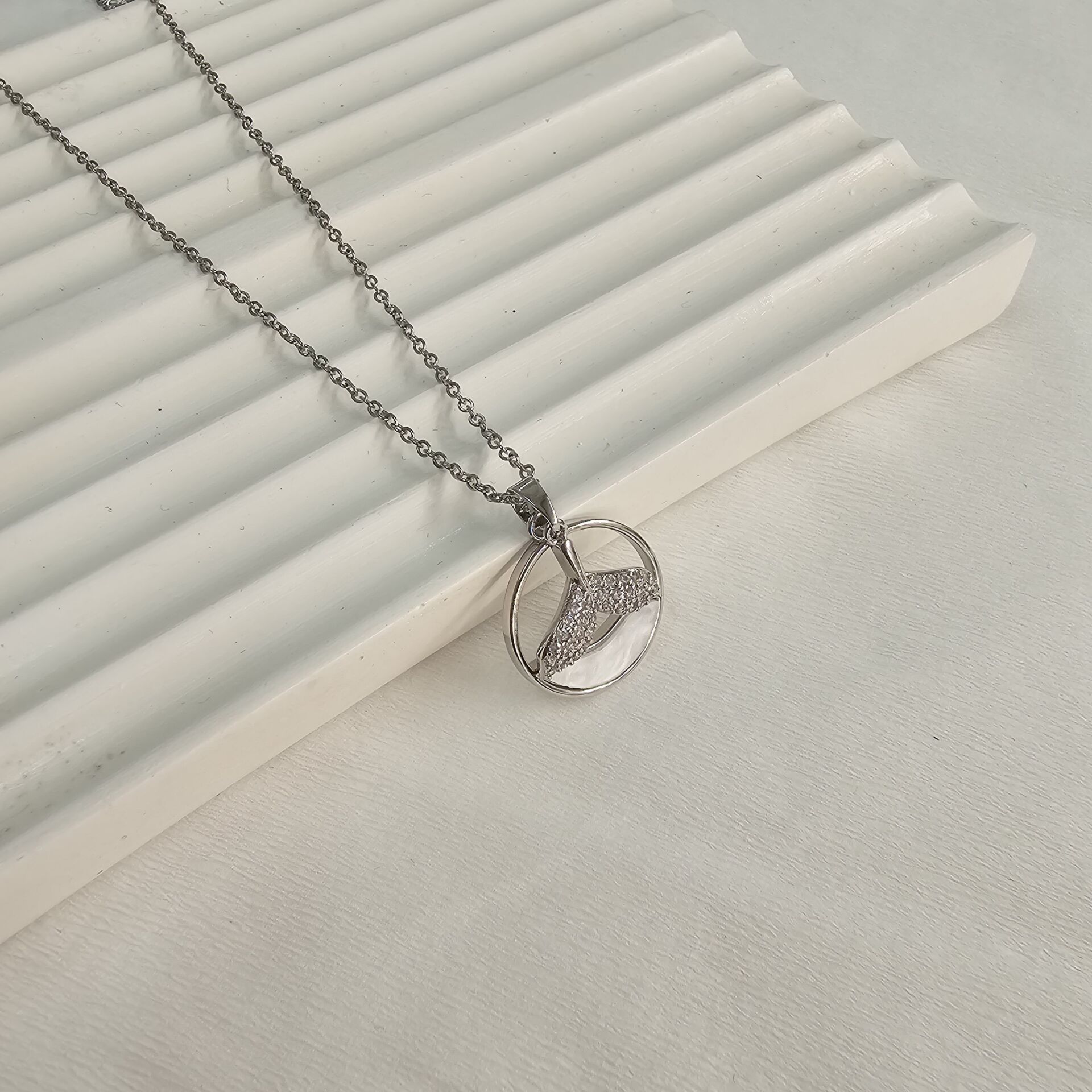 Çelik Orka Kolye Beyaz Sedefli Silver